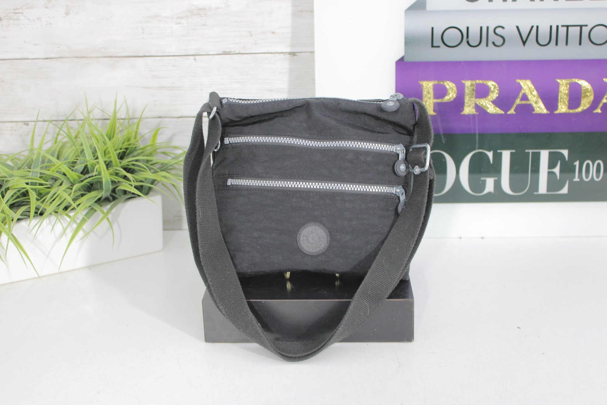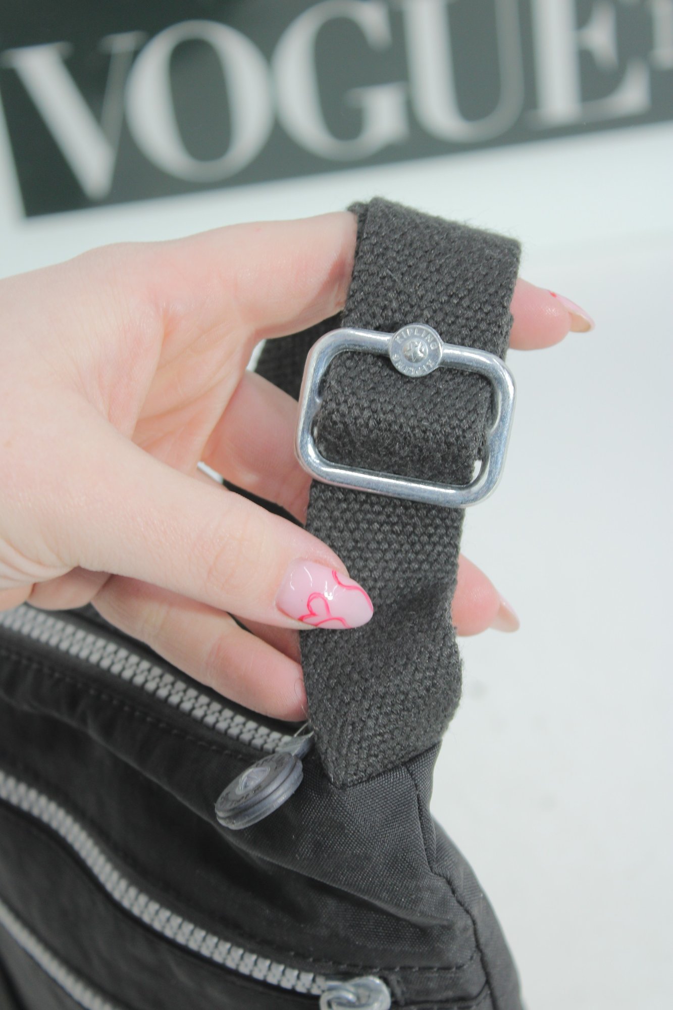 Kipling black nylon crossbody bag, perfect for everyday use. Known for their durable construction and lightweight design, Kipling bags are ideal for travel, errands, or casual daily wear.