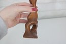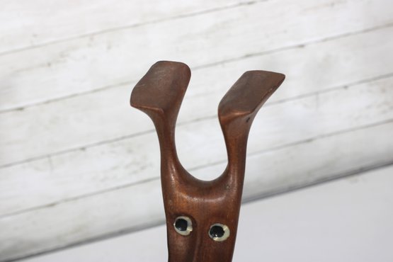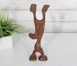 Authentic Danish modern abstract figural sculpture attributed to artist Knud Albert, beautifully carved from rich rosewood. This whimsical mid-century modern design features an elongated stylized figure with expressive form and inset eyes, showcasing the clean lines and organic craftsmanship associated with Scandinavian design.