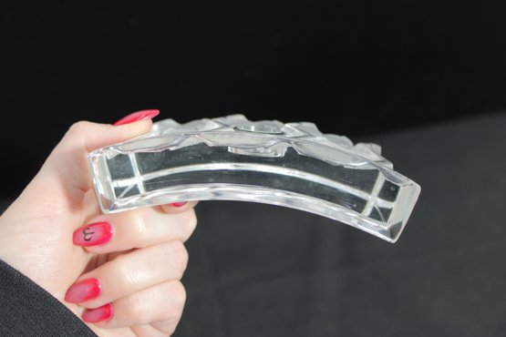 Measures approximately 5 inches wide by 3.5 inches high. The substantial crystal construction gives it a quality weight and presence, perfect for display on a desk, shelf, or vanity.