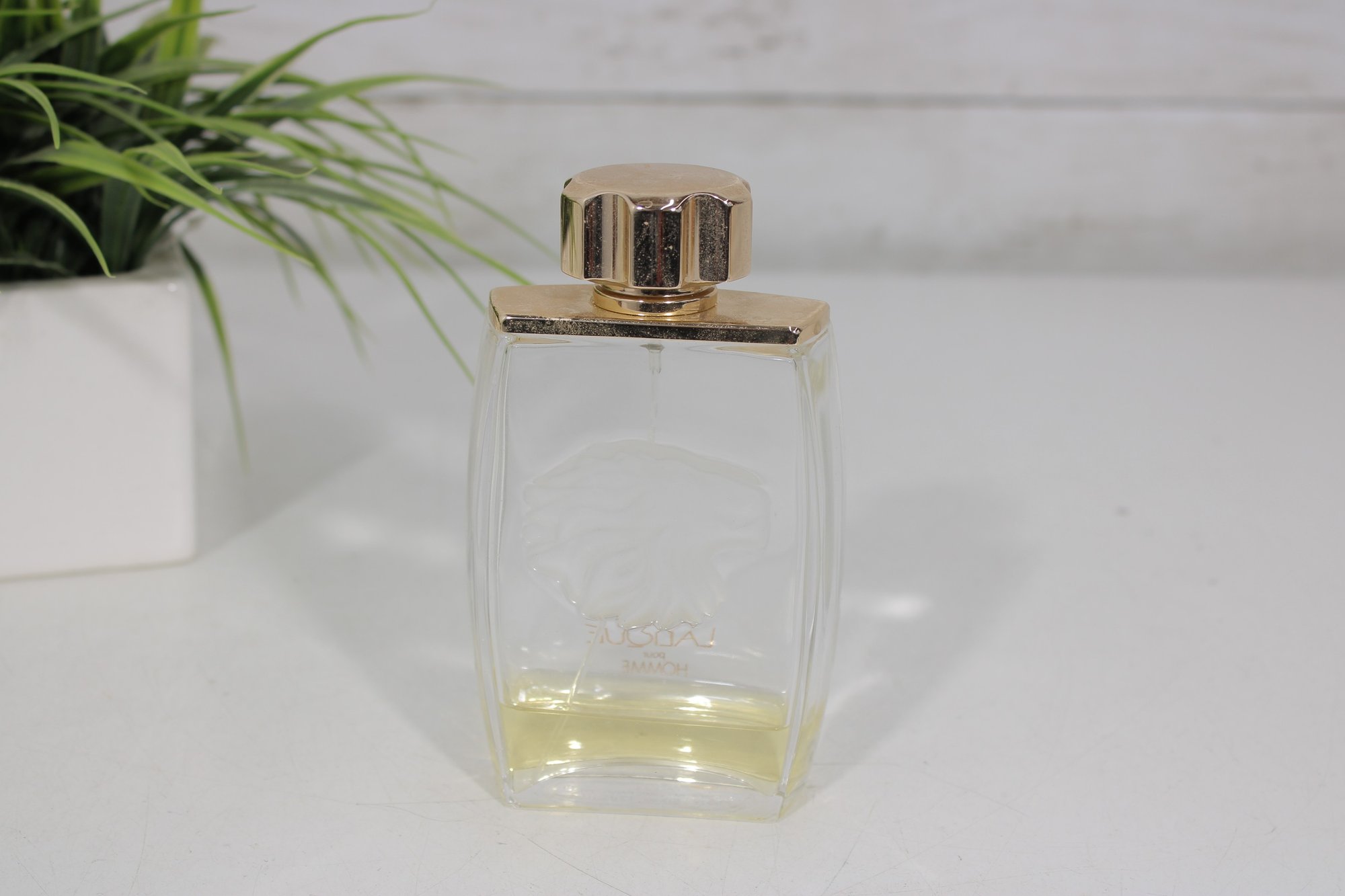 This distinguished bottle features the signature frosted lion head motif embossed in the glass and a gold-tone cap, reflecting Lalique’s heritage in fine glass artistry. The sleek, masculine presentation makes it a standout addition to any collection.