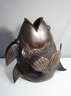 This impressive bronze sculpture stands 18 inches tall and is masterfully crafted in the shape of a koi fish. The detailed scales and fin designs reflect excellent craftsmanship. This striking piece can serve as a beautiful addition to your home décor or as a unique statement piece for your garden. There are some minor signs of wear consistent with its age, but overall, it remains in great condition. Perfect for collectors of bronze art or those looking for an eye-catching decorative item.