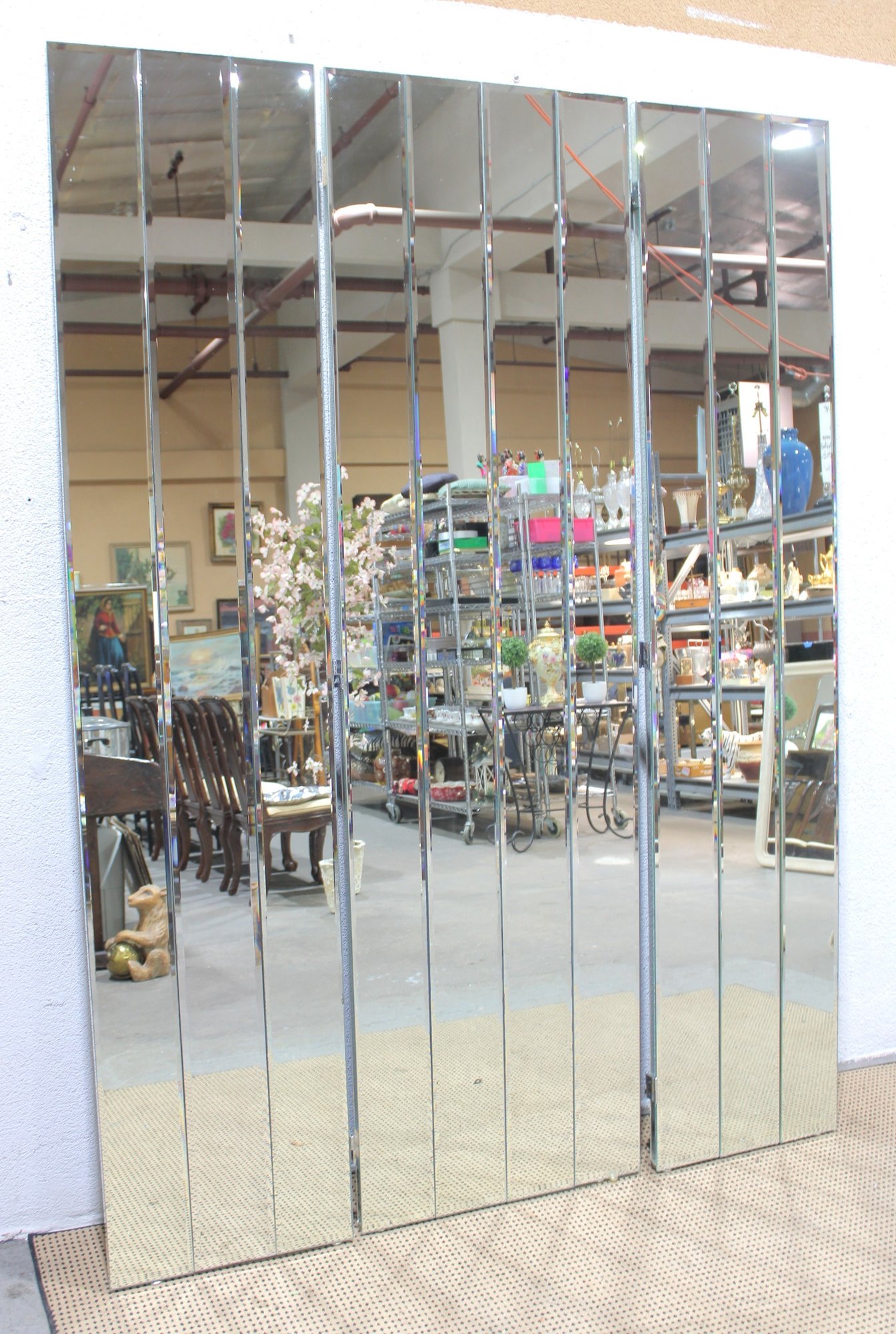 This set features 3 vertical mirror panels mounted to backing boards, designed to be installed side-by-side to create a dramatic full wall mirror effect. The slim vertical design gives a clean, modern look while visually expanding the room.