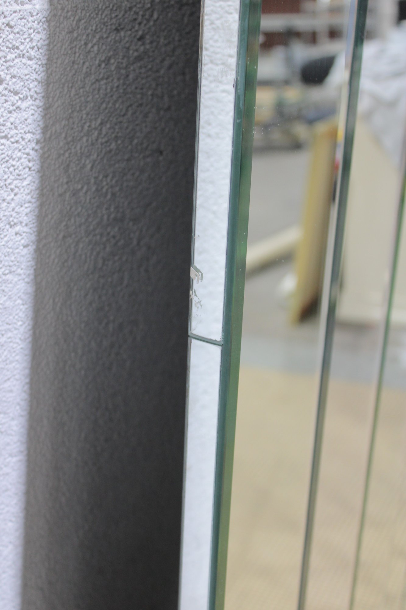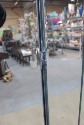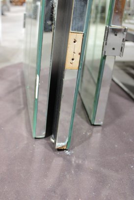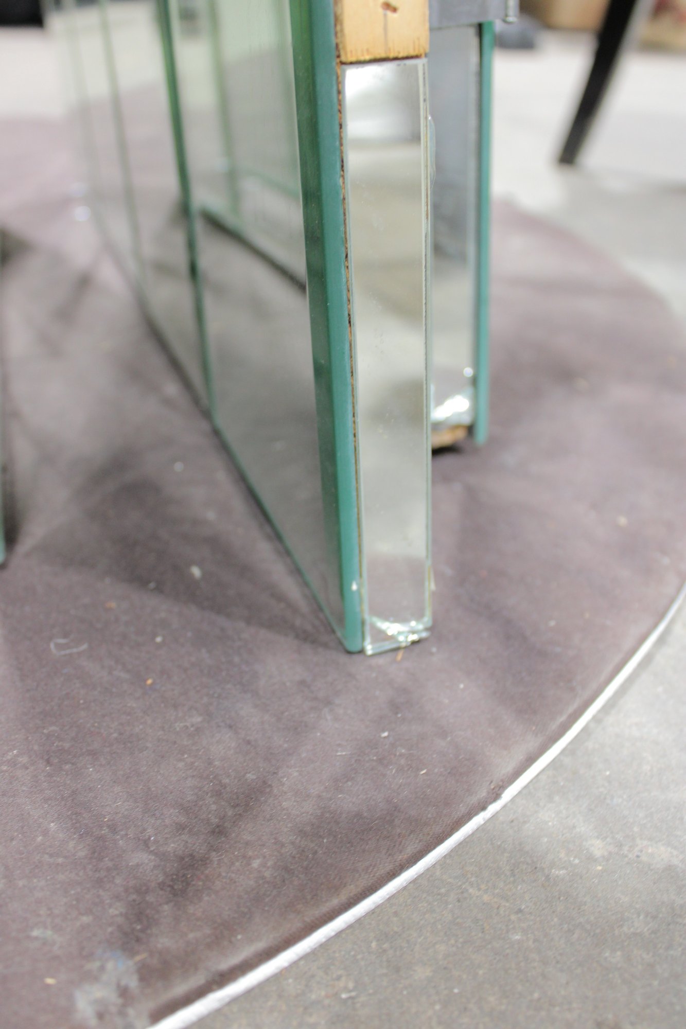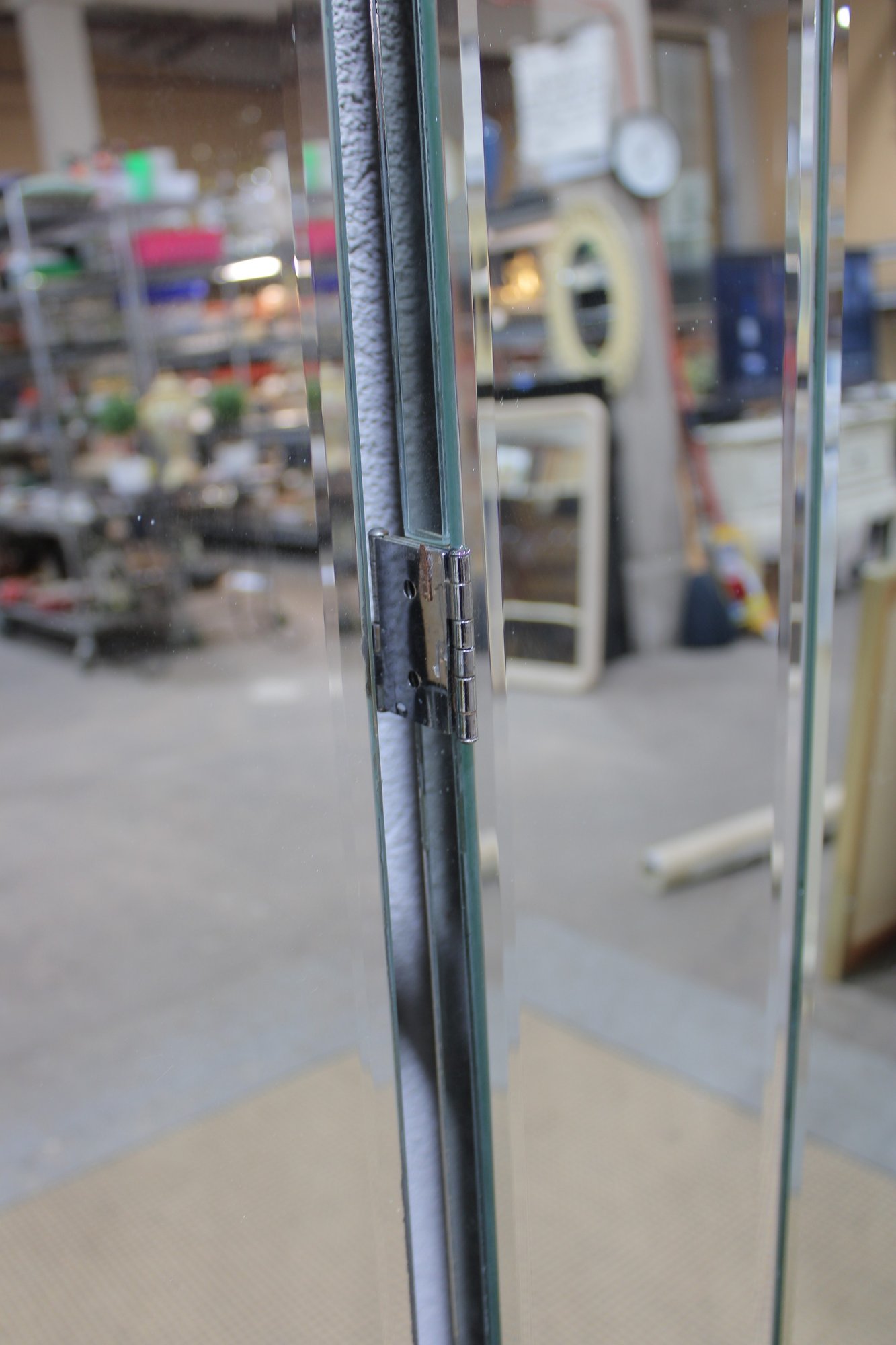 Pre-owned condition. Mirrors show some wear consistent with age, including minor surface marks and visible aging to the mirrored edges in areas (see close-up photos). Backing panels are intact.
