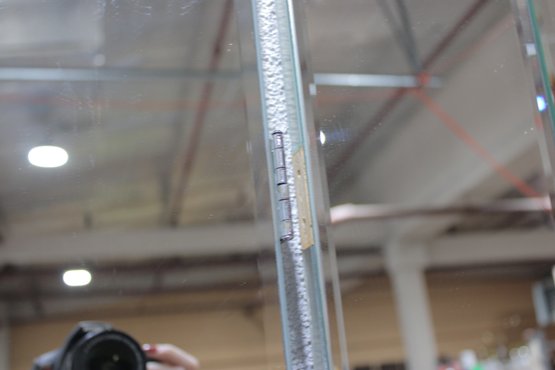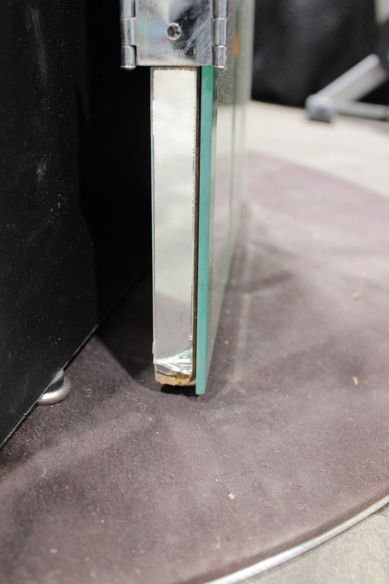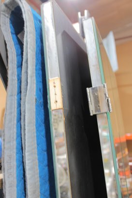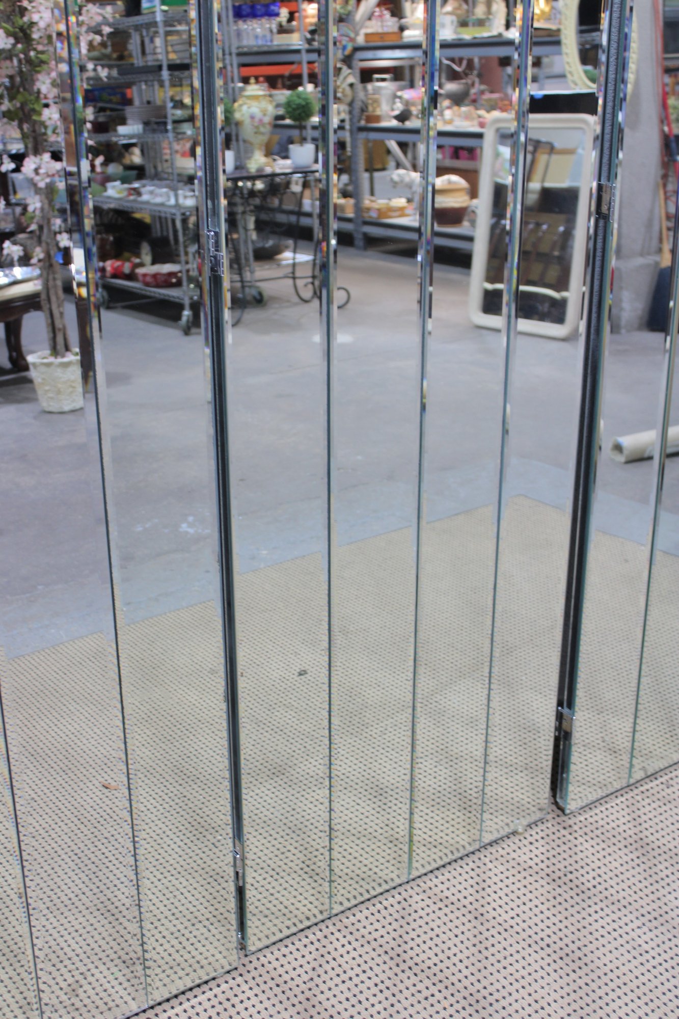 Pre-owned condition. Mirrors show some wear consistent with age, including minor surface marks and visible aging to the mirrored edges in areas (see close-up photos). Backing panels are intact.