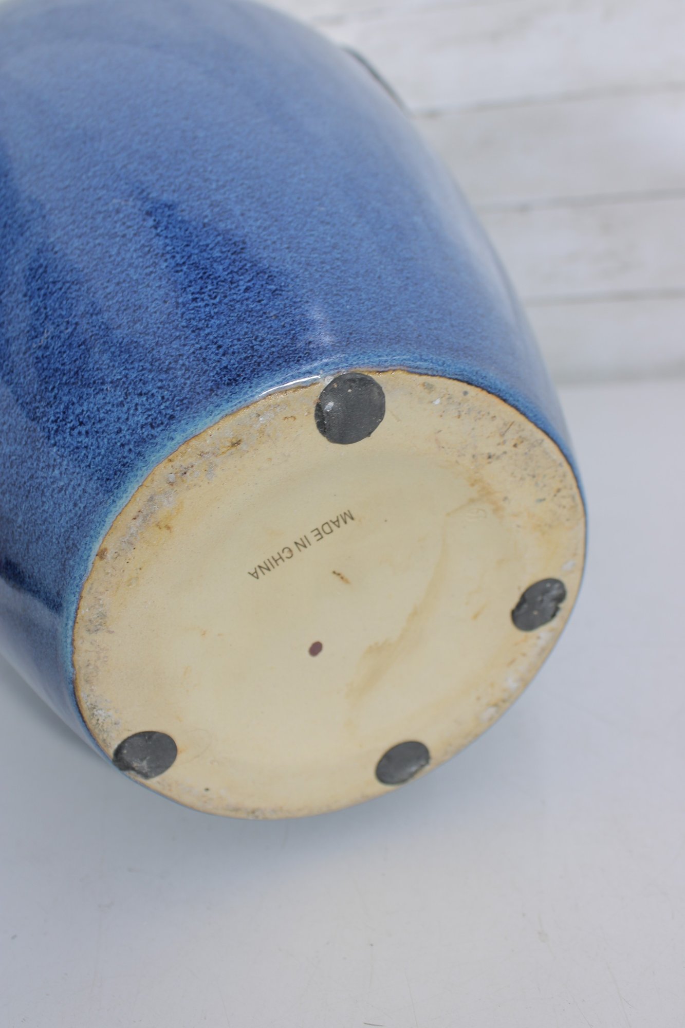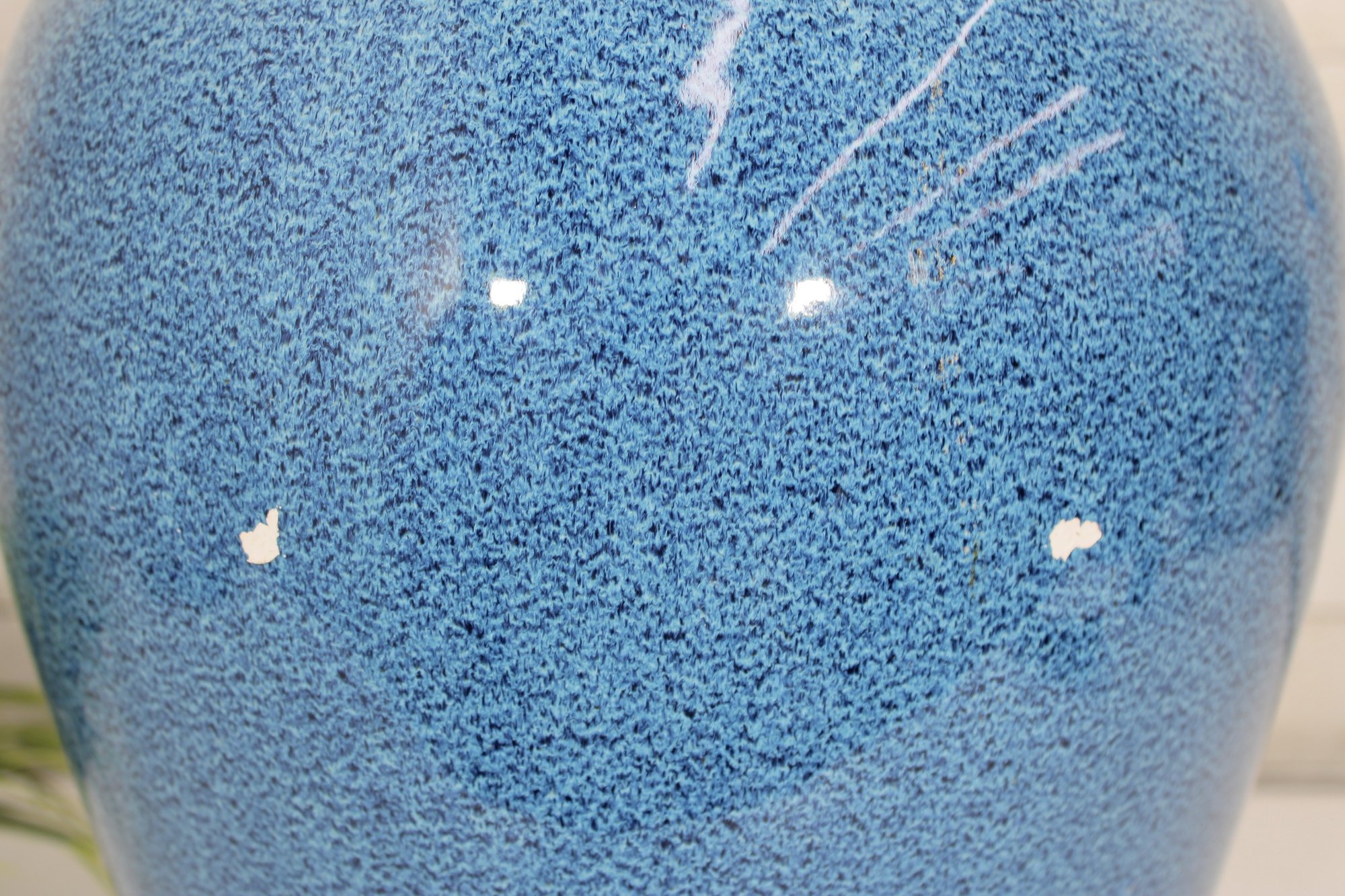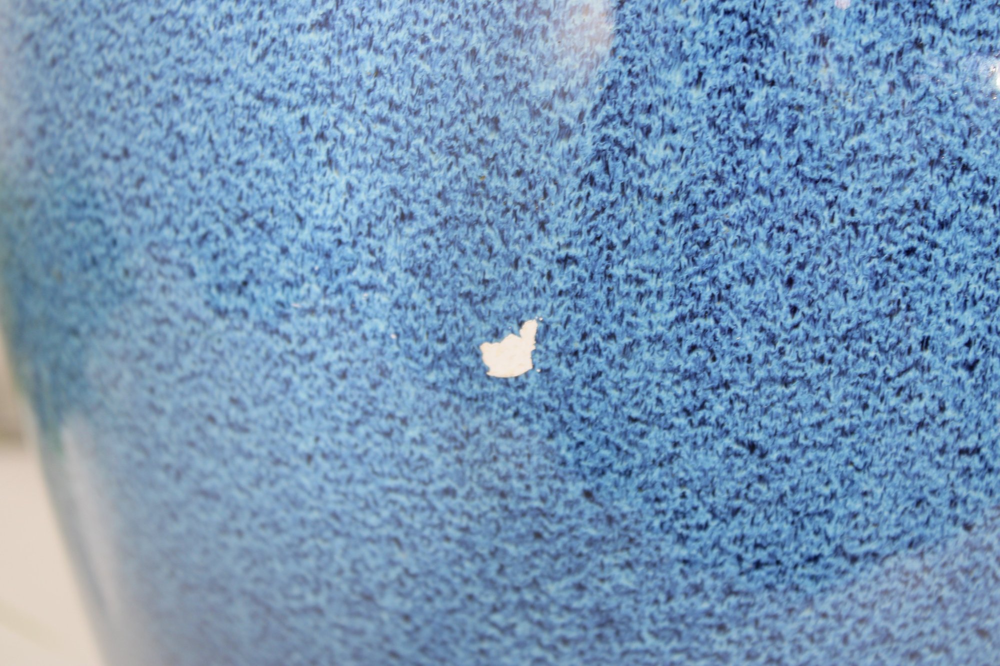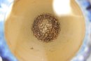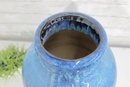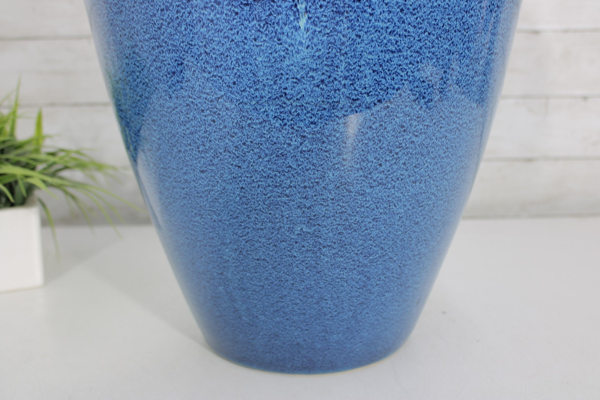 Striking large ceramic floor vase featuring a vibrant blue speckled glaze and elegant tapered form. The body is accented with a decorative medallion motif, giving the piece an Asian-inspired aesthetic that works beautifully in both modern and traditional interiors. Its substantial 21" height makes it a standout decorative accent for entryways, living rooms, or display settings.