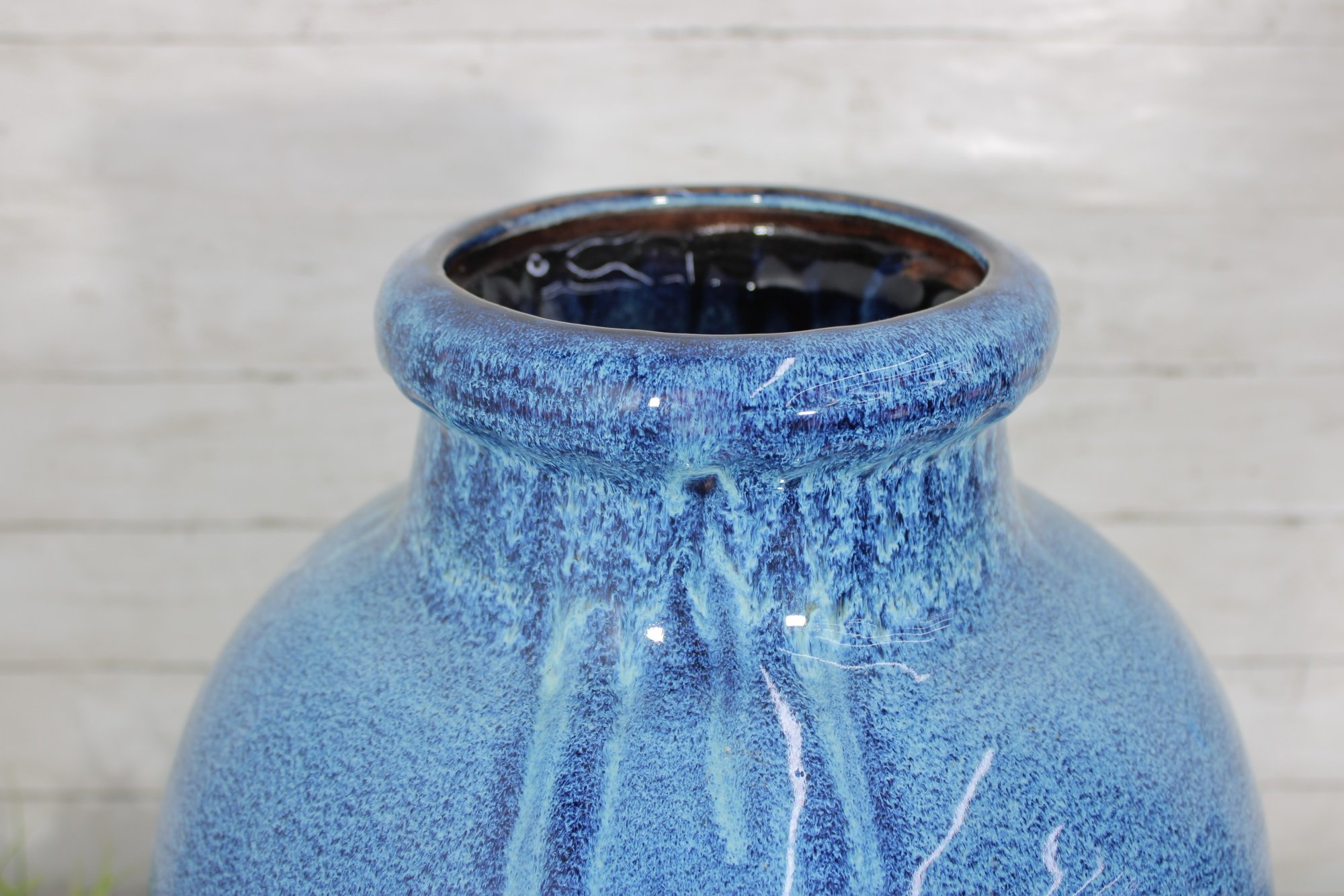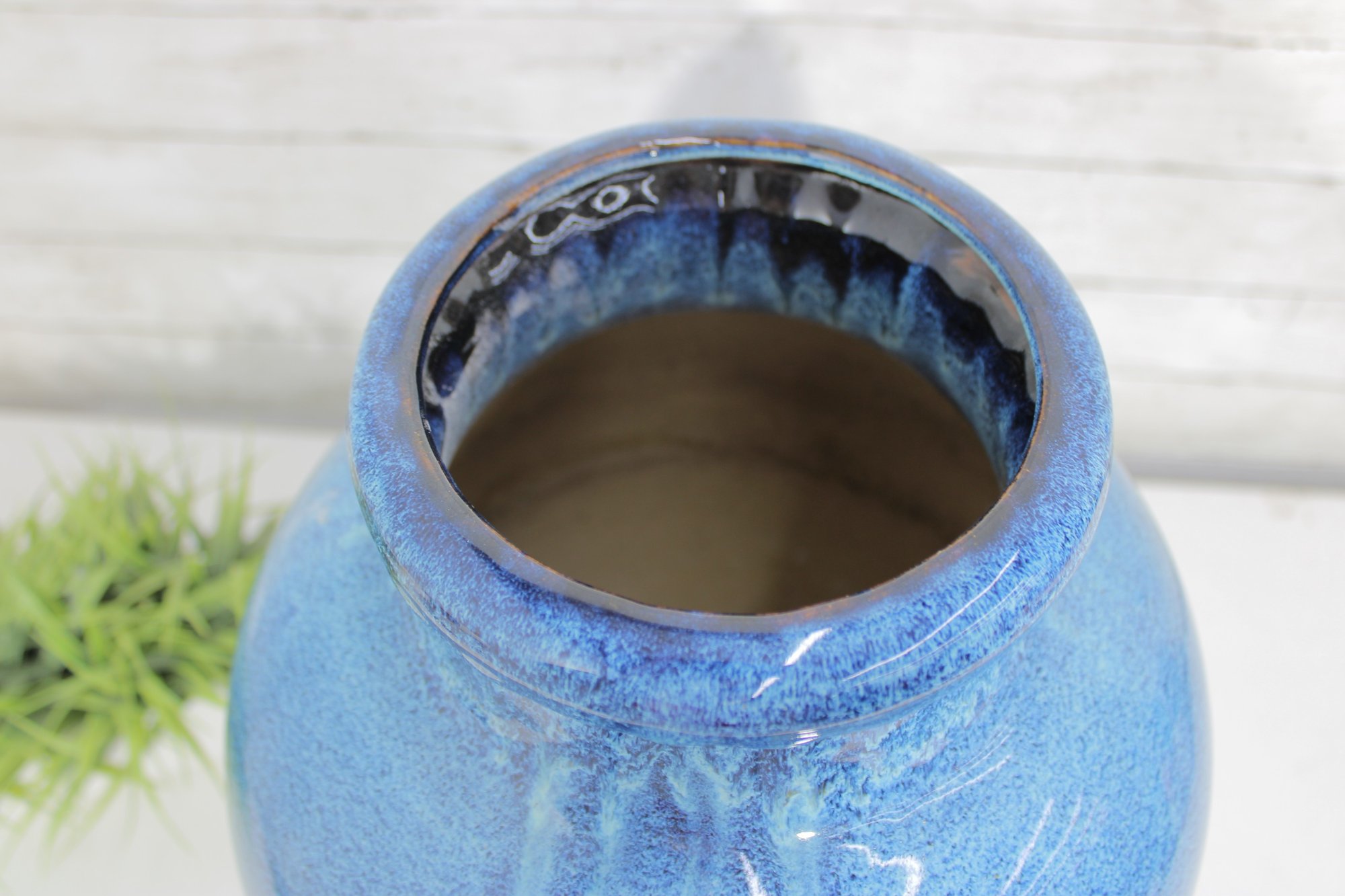 The glossy glaze has rich tonal variation that catches the light nicely, and the wide opening allows for use with tall dried botanicals or as a statement piece on its own.