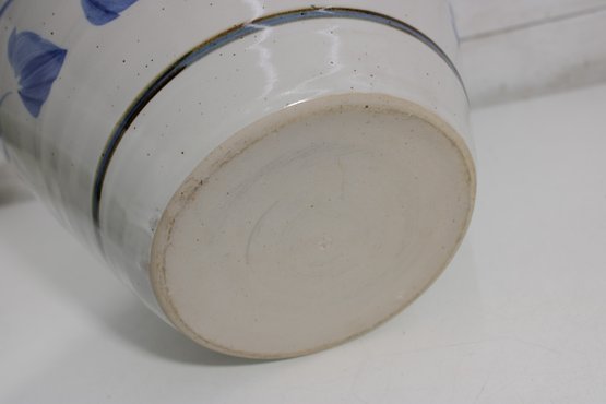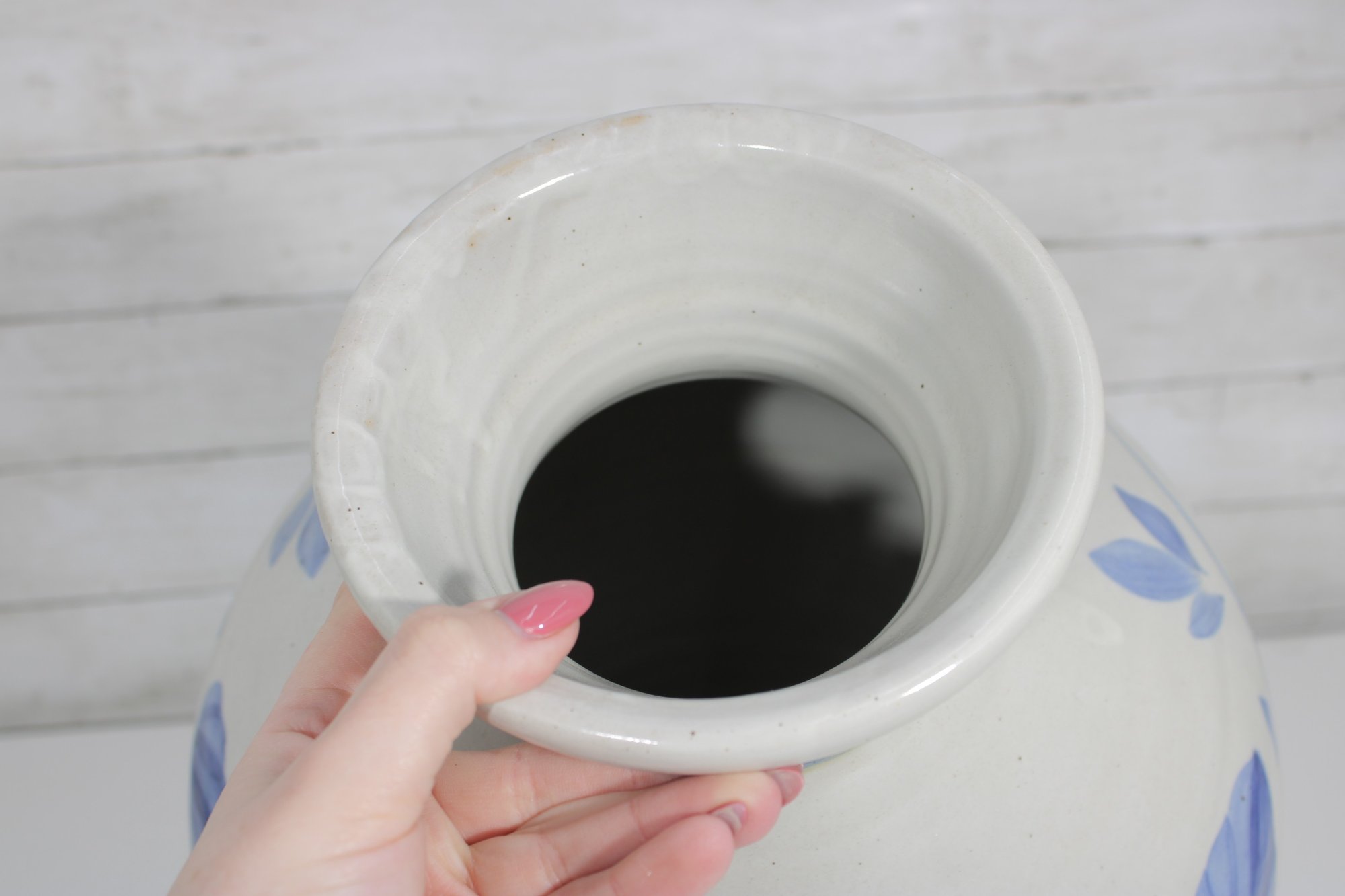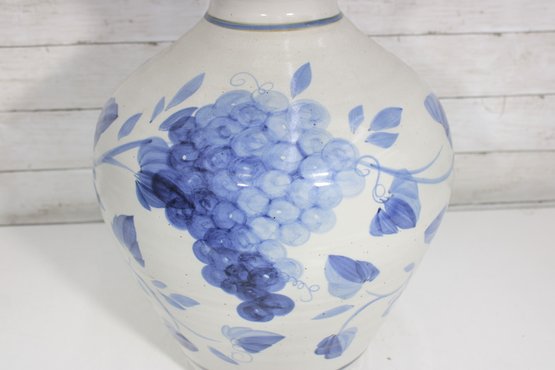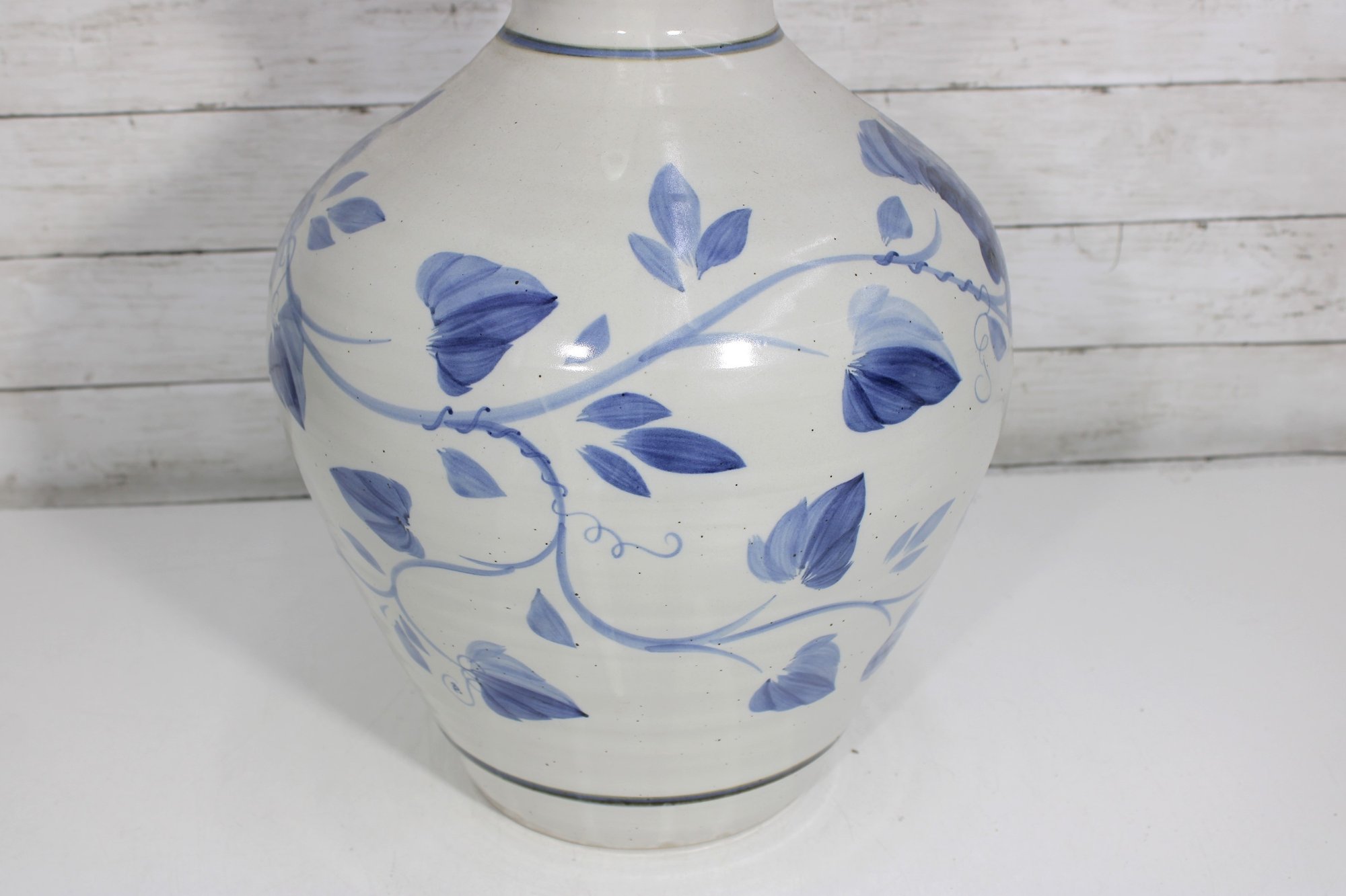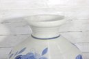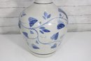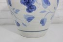 this beautiful blue and white ceramic vase. Standing approximately 17 inches tall, this piece features a timeless floral design in soft blue tones set against a creamy white background.