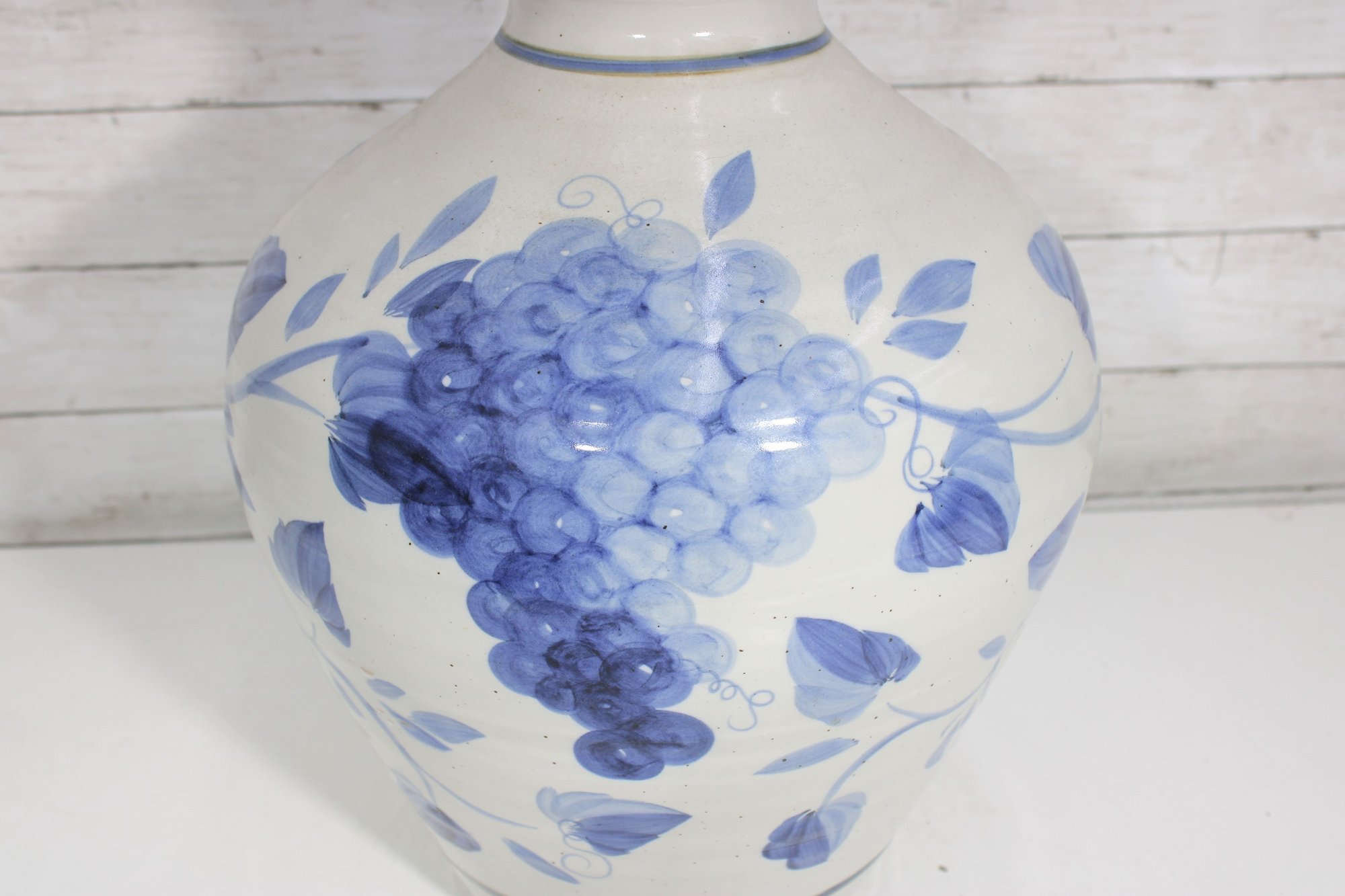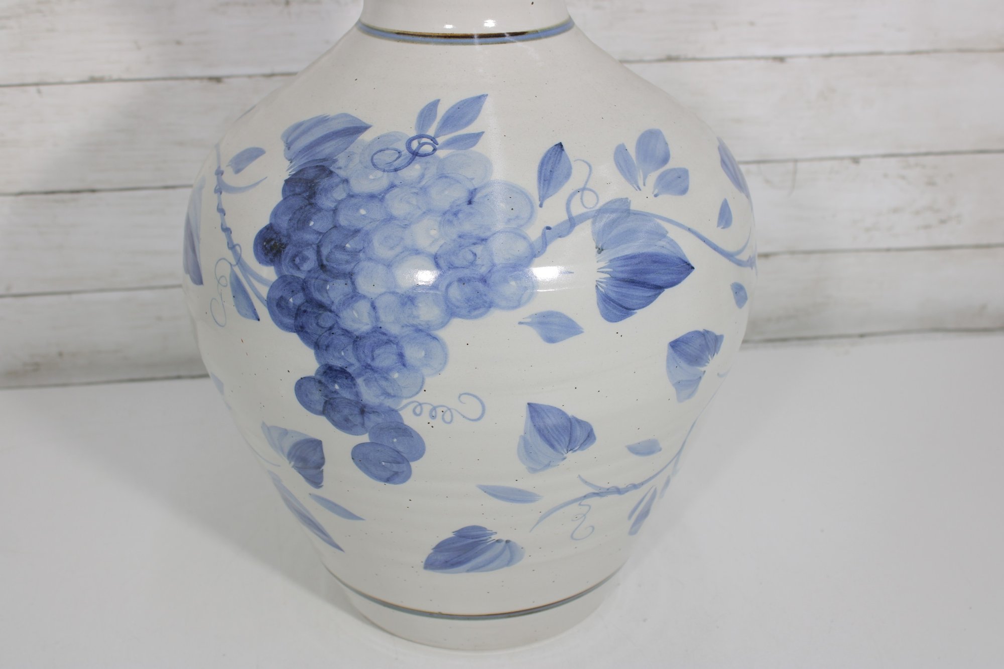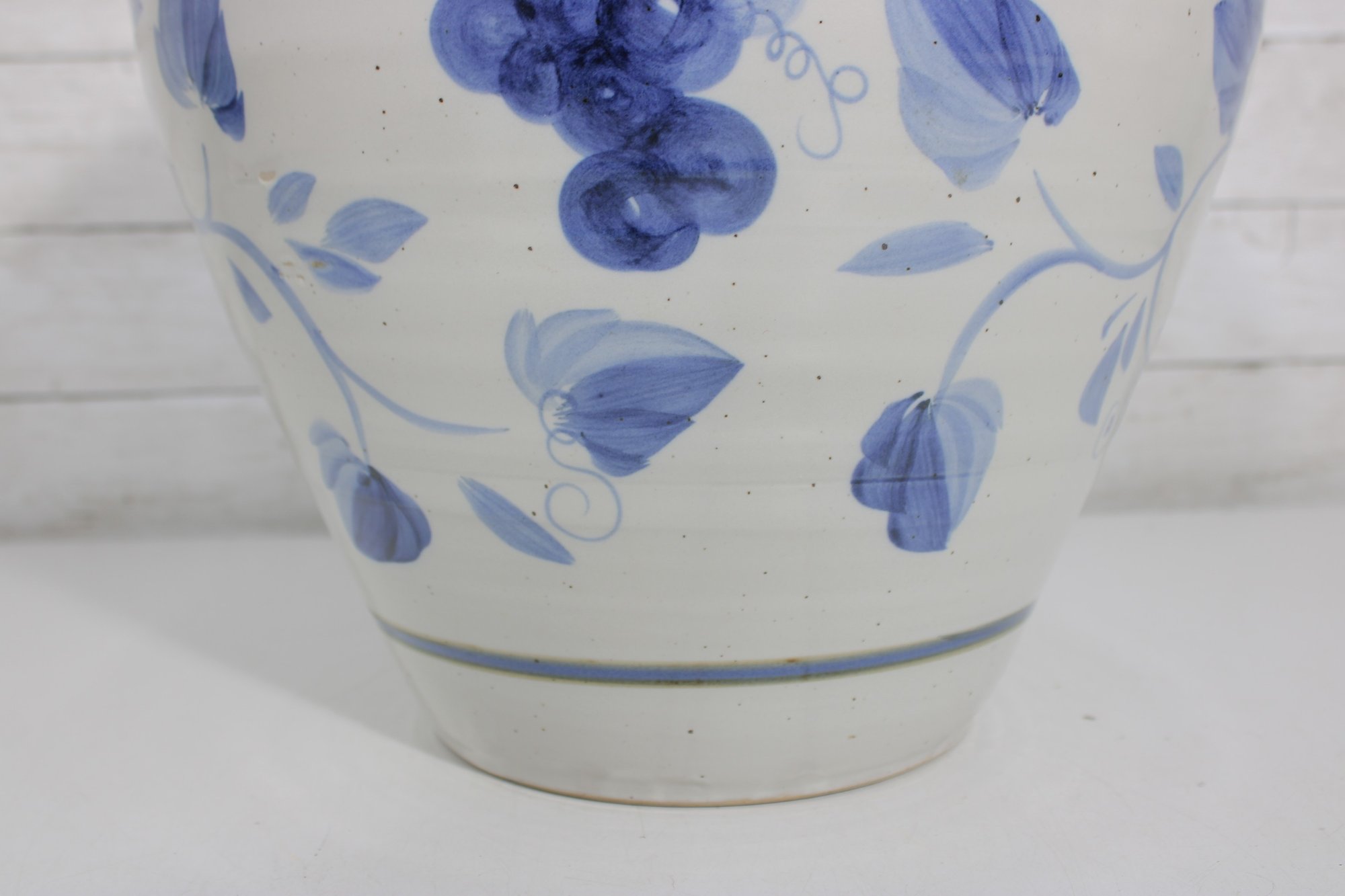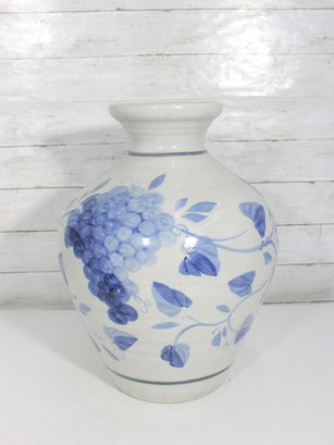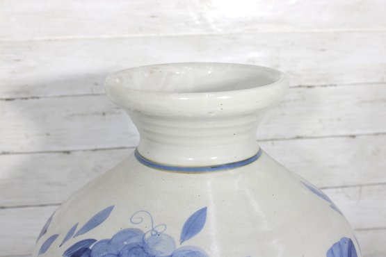 The rounded form and wide neck give the vase a traditional silhouette, while the hand-painted style floral and vine motifs add charm and visual interest. Its versatile look complements a variety of interiors, from farmhouse and coastal to traditional and contemporary spaces.