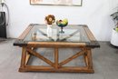 A square of beveled glass rests in a wood frame. Peer into its cool depths and you’ll see the open trapezoidal frame complete with diagonal “planks” connecting the slanted vertical supports.