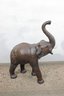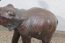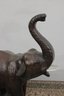 Wonderful large decorative elephant sculpture finished in rich brown color standing 23 inches tall. This is a substantial, eye-catching piece with timeless safari and classic study decor appeal.