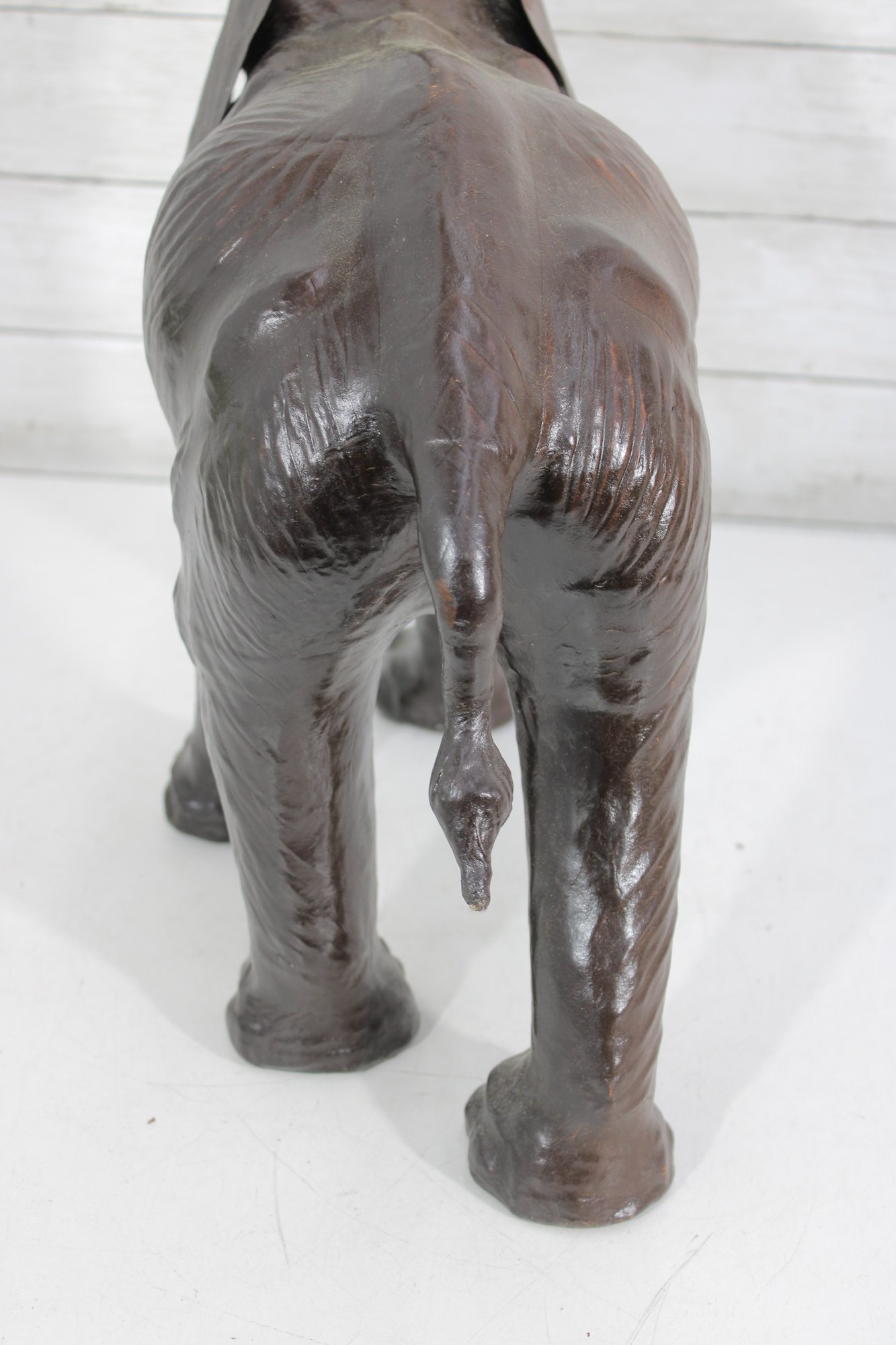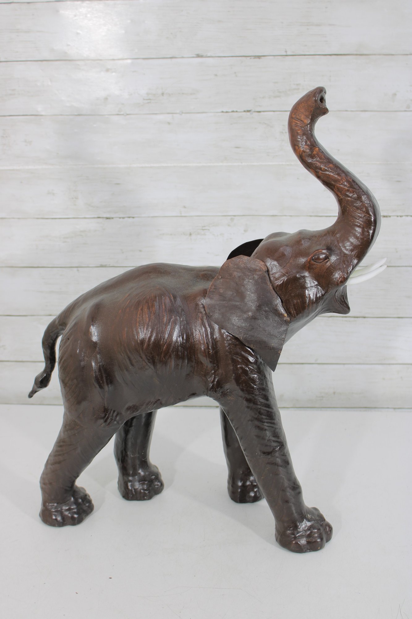 Impressive decorative elephant sculpture standing 22.5 inches tall, featuring a deep dark brown and black-toned finish with classic raised-trunk pose. This is a substantial accent piece with timeless safari and global-inspired appeal.