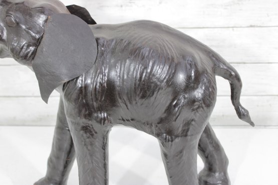 The surface has the look of leather or leather-wrapped styling (exact material unknown), with visible texture and sculpted contours that give it a handcrafted, artisan character. The darker finish, with subtle tonal variation, gives the piece warmth and dimension while maintaining a bold presence.