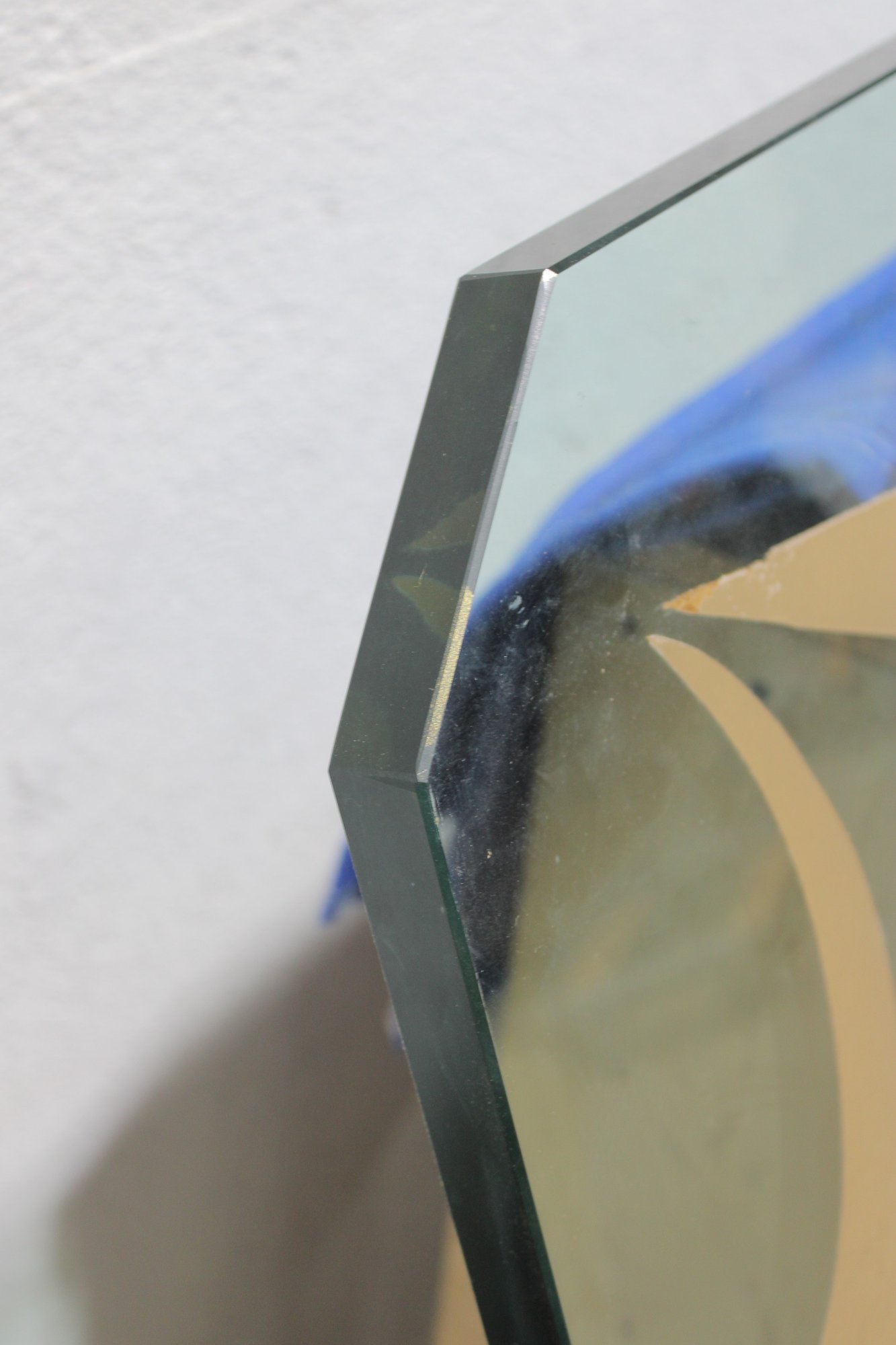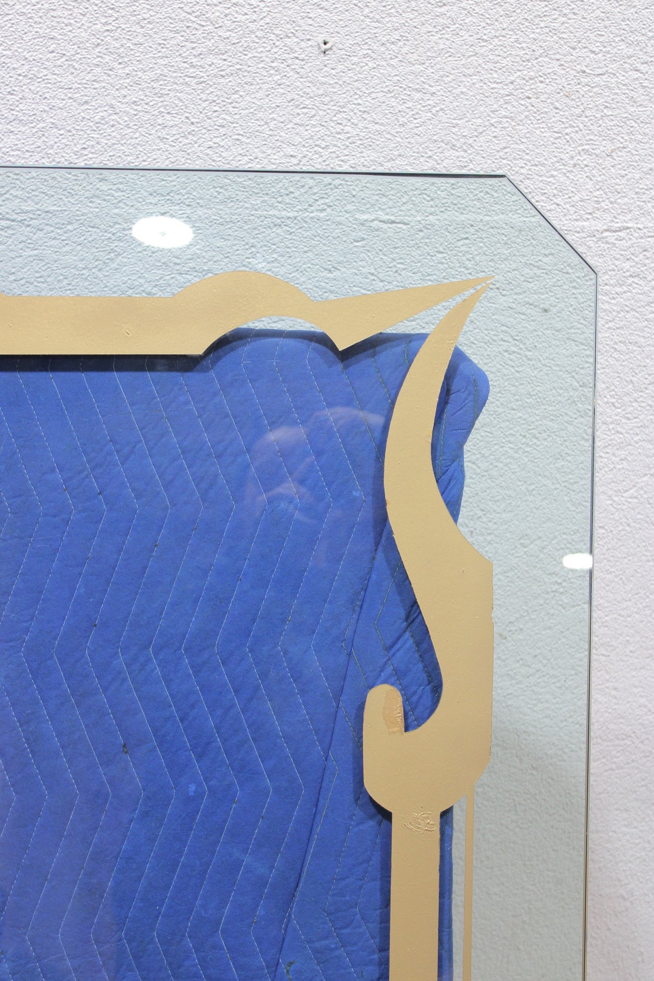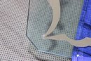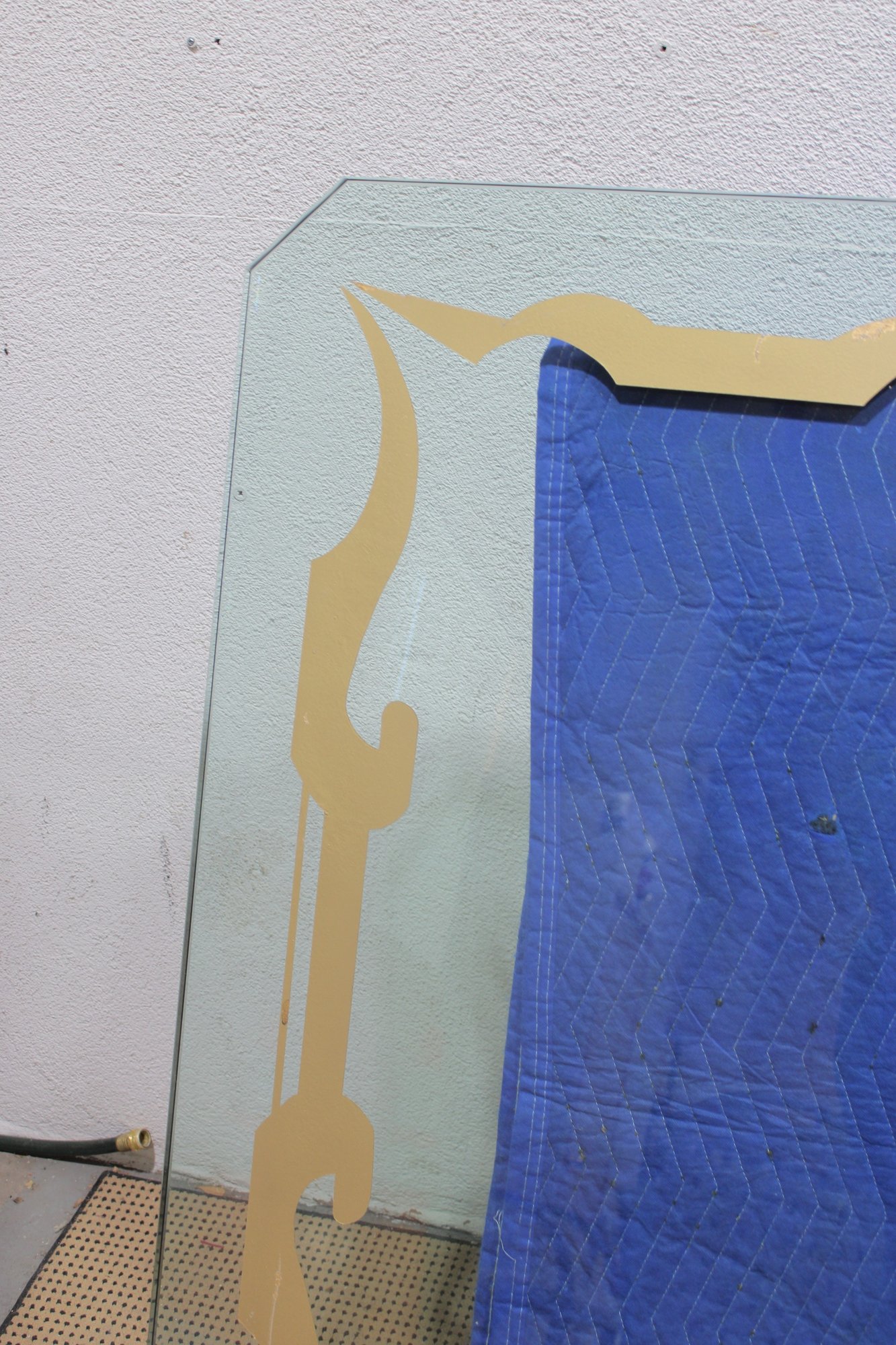 This impressive oversized glass top is both functional and decorative, featuring a bold etched border design that adds elegance and visual interest. Crafted from substantial 1-inch-thick glass, this piece has excellent weight and presence, making it ideal for a custom table base, console, or architectural display.