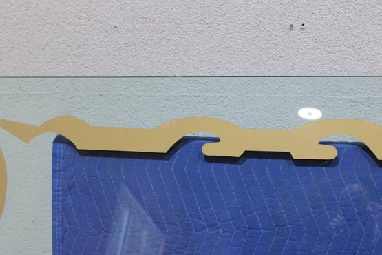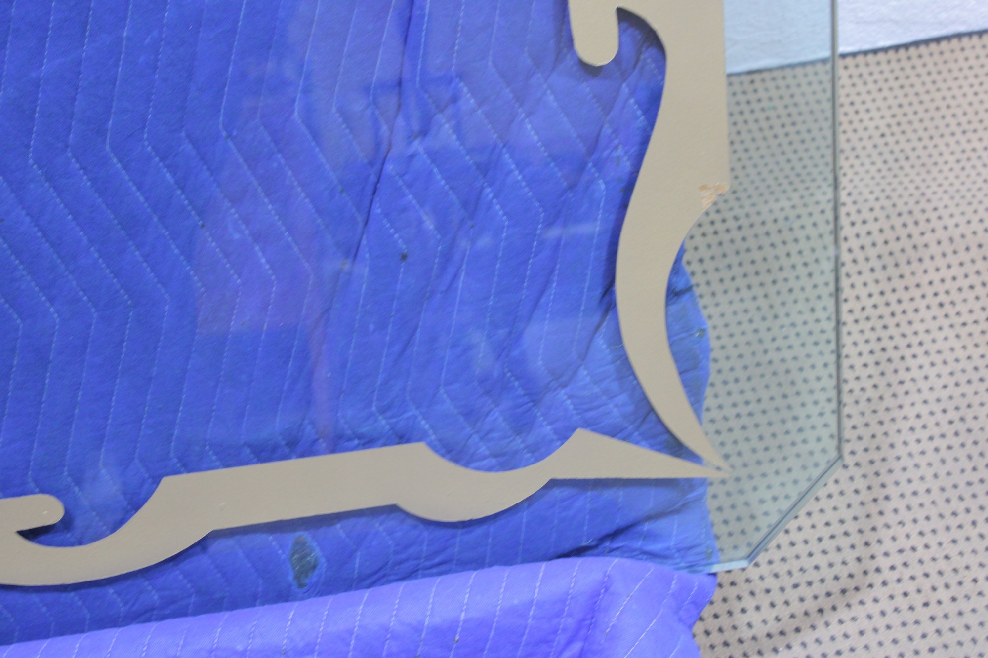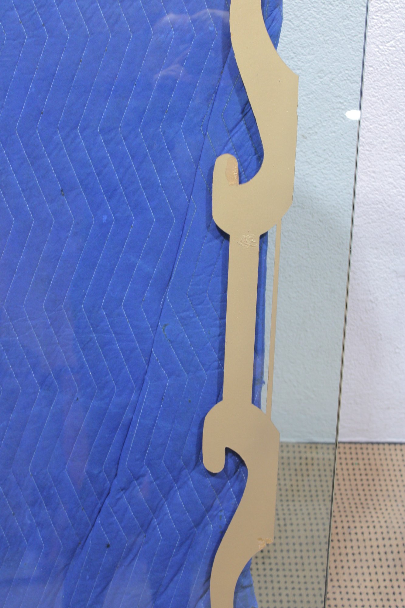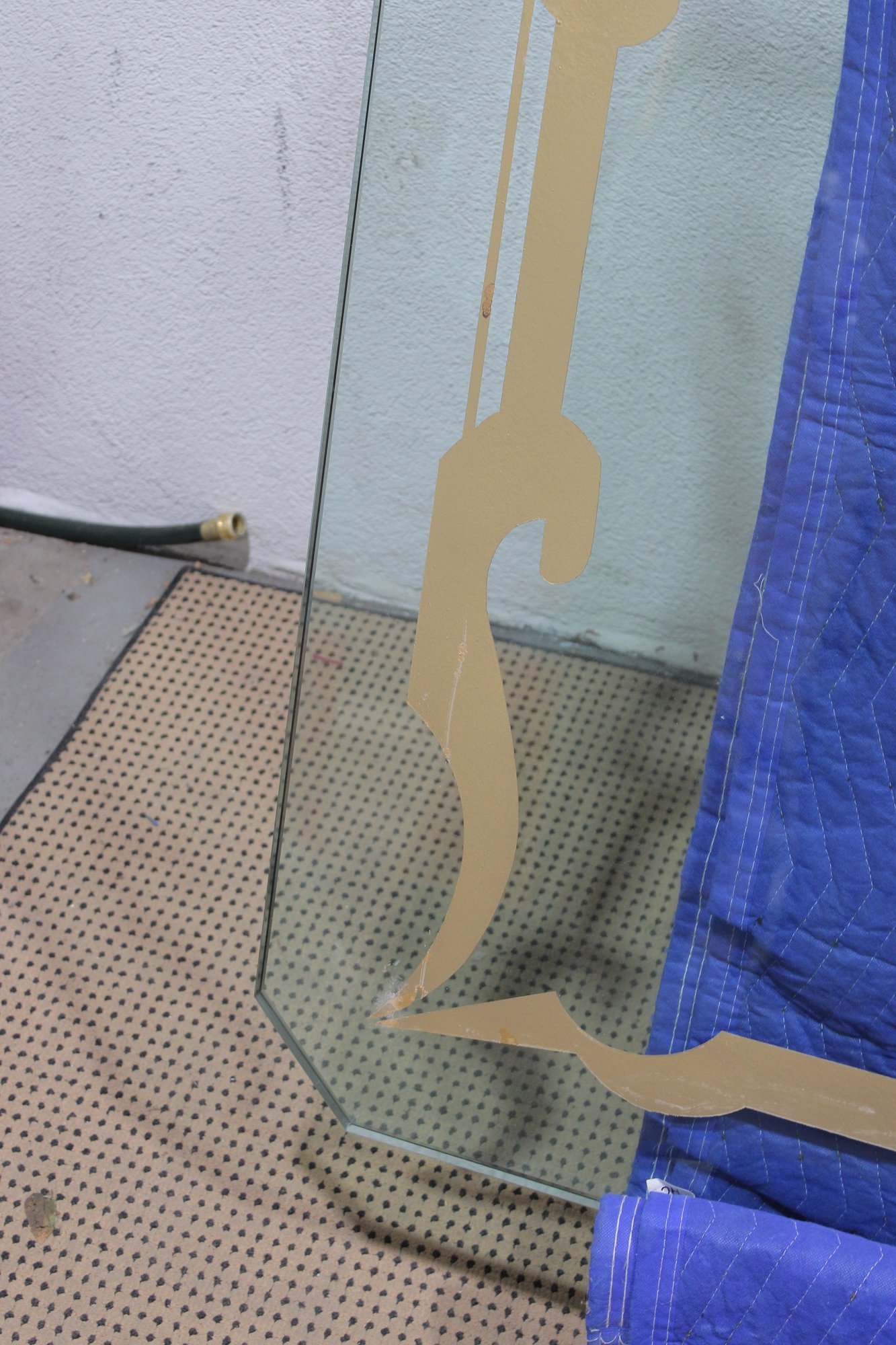 This impressive oversized glass top is both functional and decorative, featuring a bold etched border design that adds elegance and visual interest. Crafted from substantial 1-inch-thick glass, this piece has excellent weight and presence, making it ideal for a custom table base, console, or architectural display.