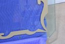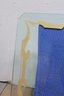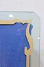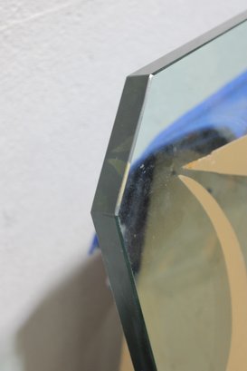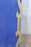 The rectangular form measures approximately 48.5 inches high by 54 inches wide and showcases a frosted, stylized border motif around the perimeter. The corners are softly clipped, giving it a refined, finished look. The painted detailing provides a striking contrast against the clear center, making it suitable for both modern and classic interiors.