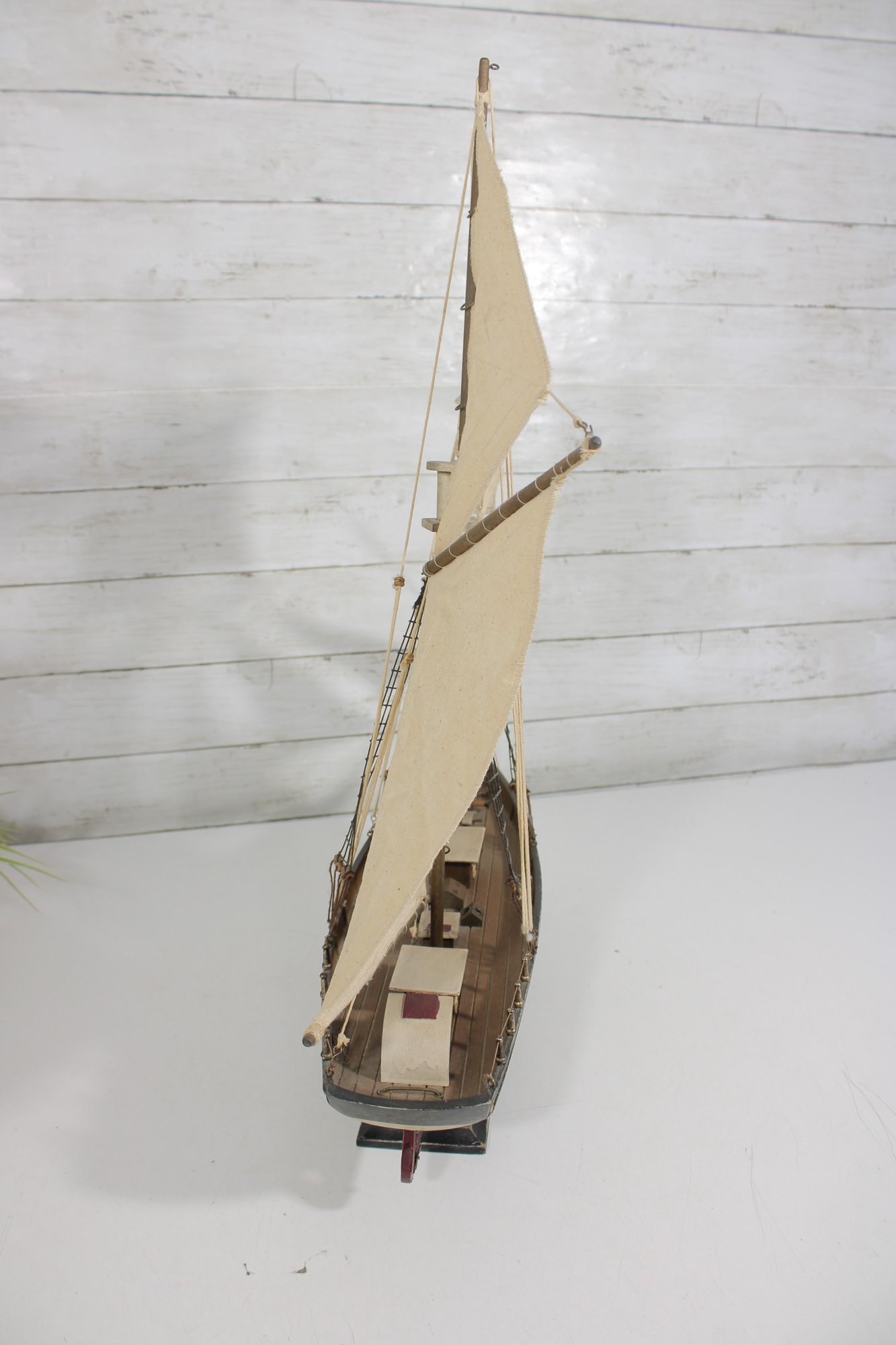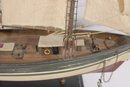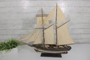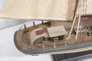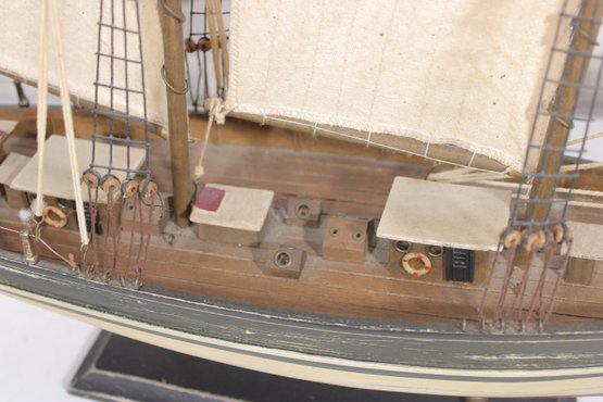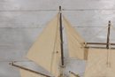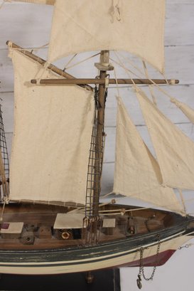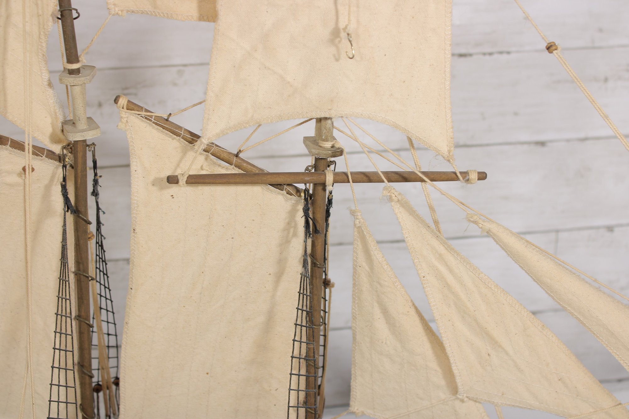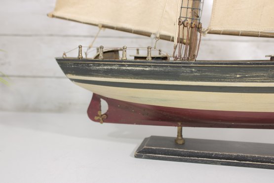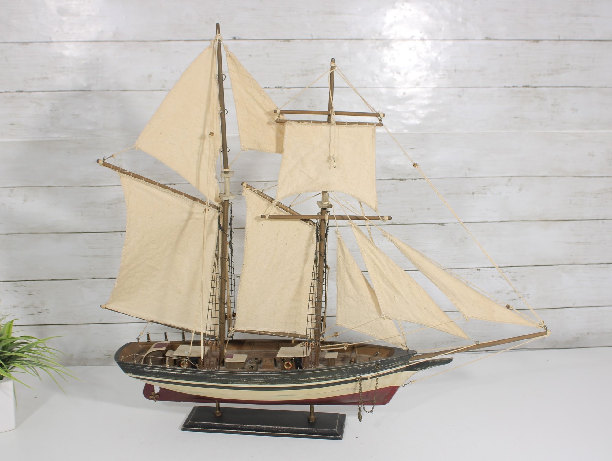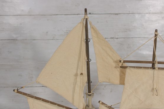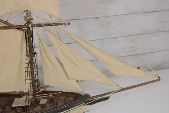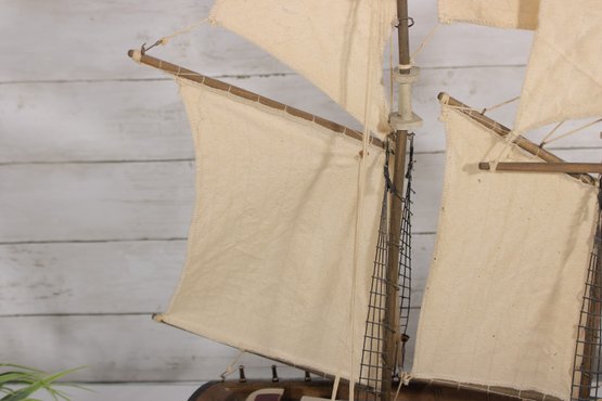 Set sail with this impressive large-scale decorative model sailing ship, beautifully crafted with intricate detailing throughout. This classic tall ship model features multiple masts, rigging lines, and cream-colored cloth sails that give it an authentic maritime look.