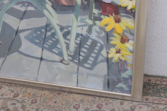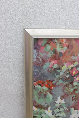 The print appears to be signed in the lower right corner (see photos), adding to its decorative appeal. Its substantial size makes it an eye-catching statement piece, perfect for brightening a living room, sunroom, or dining area.