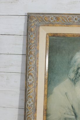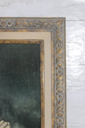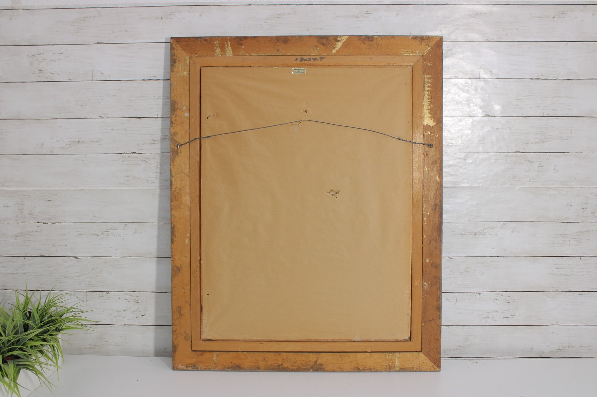 The artwork is set within an ornate, decorative frame featuring raised patterning and gold accents, complemented by a wide mat and inner gold border that enhance the dramatic composition. Ready to hang with wire on the back.