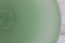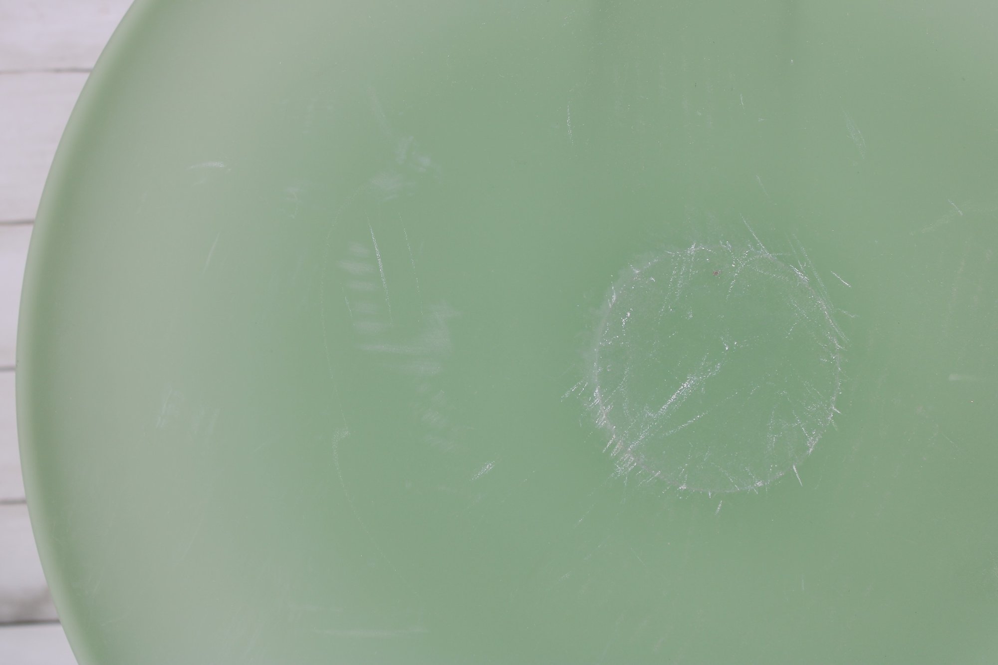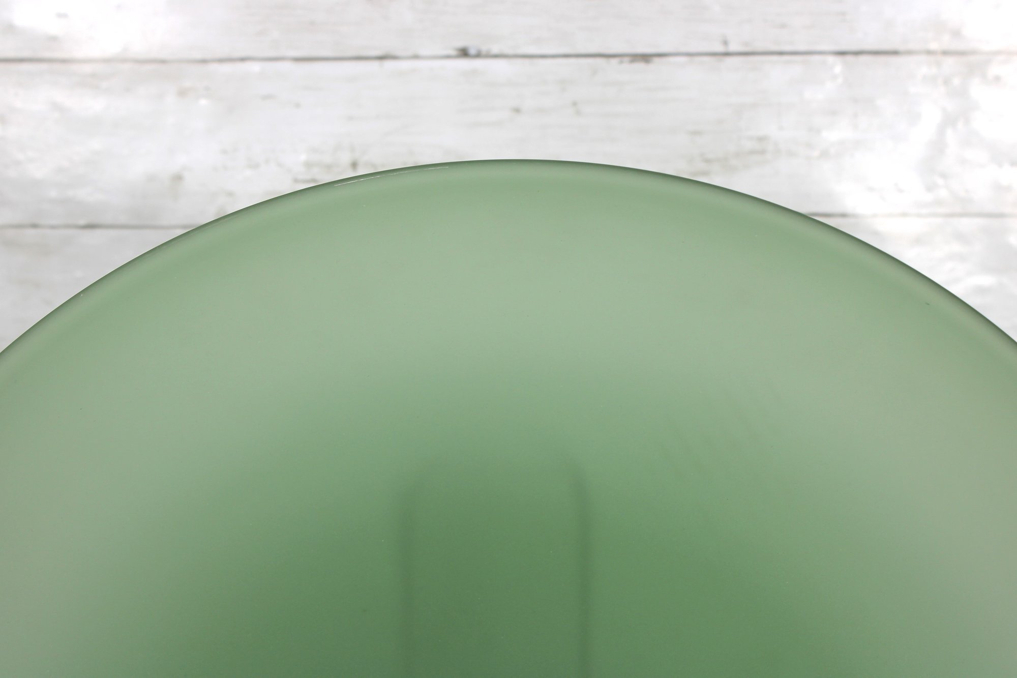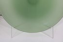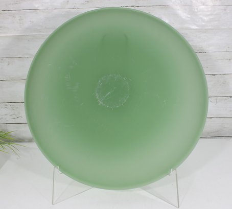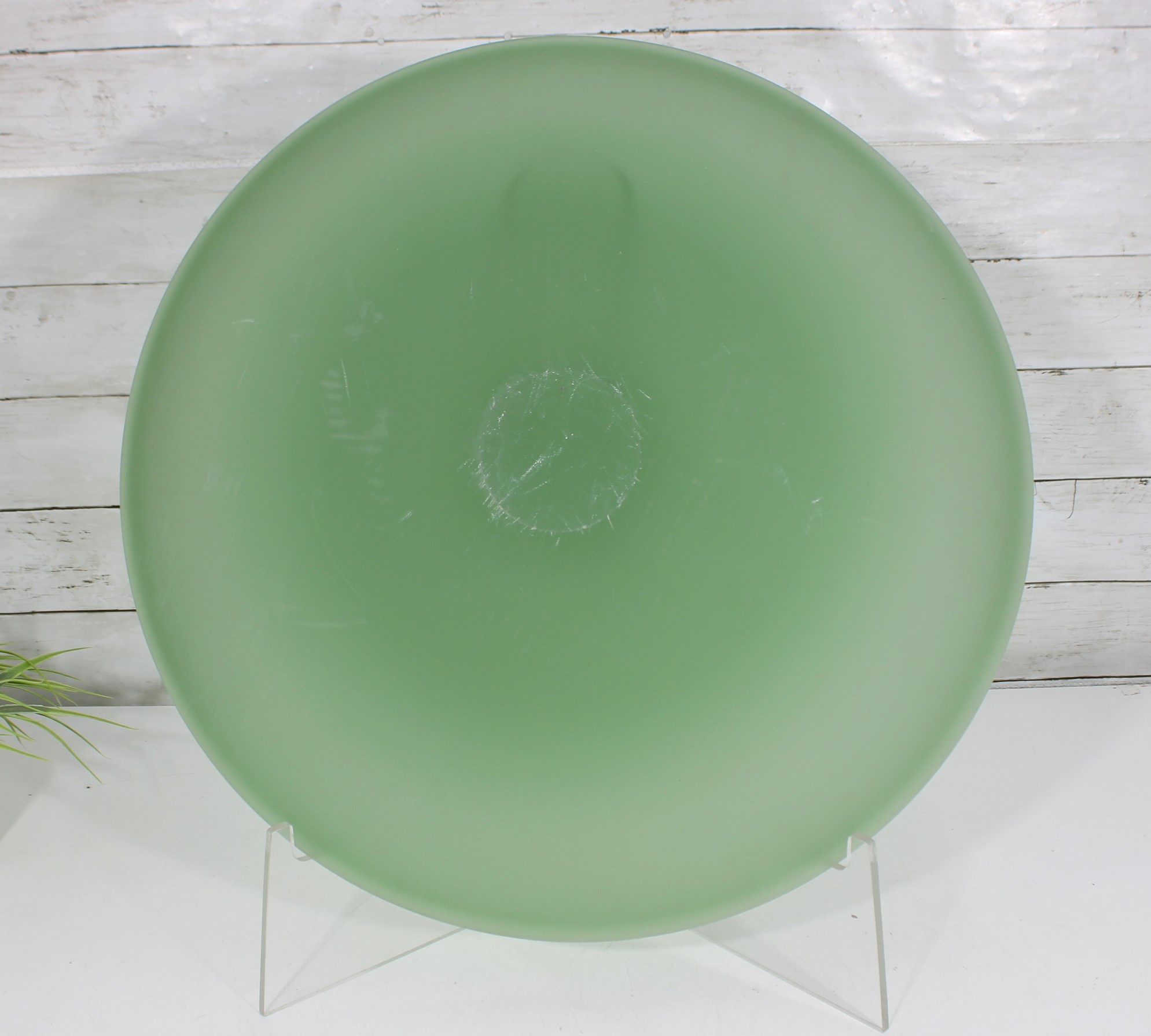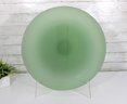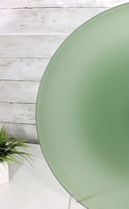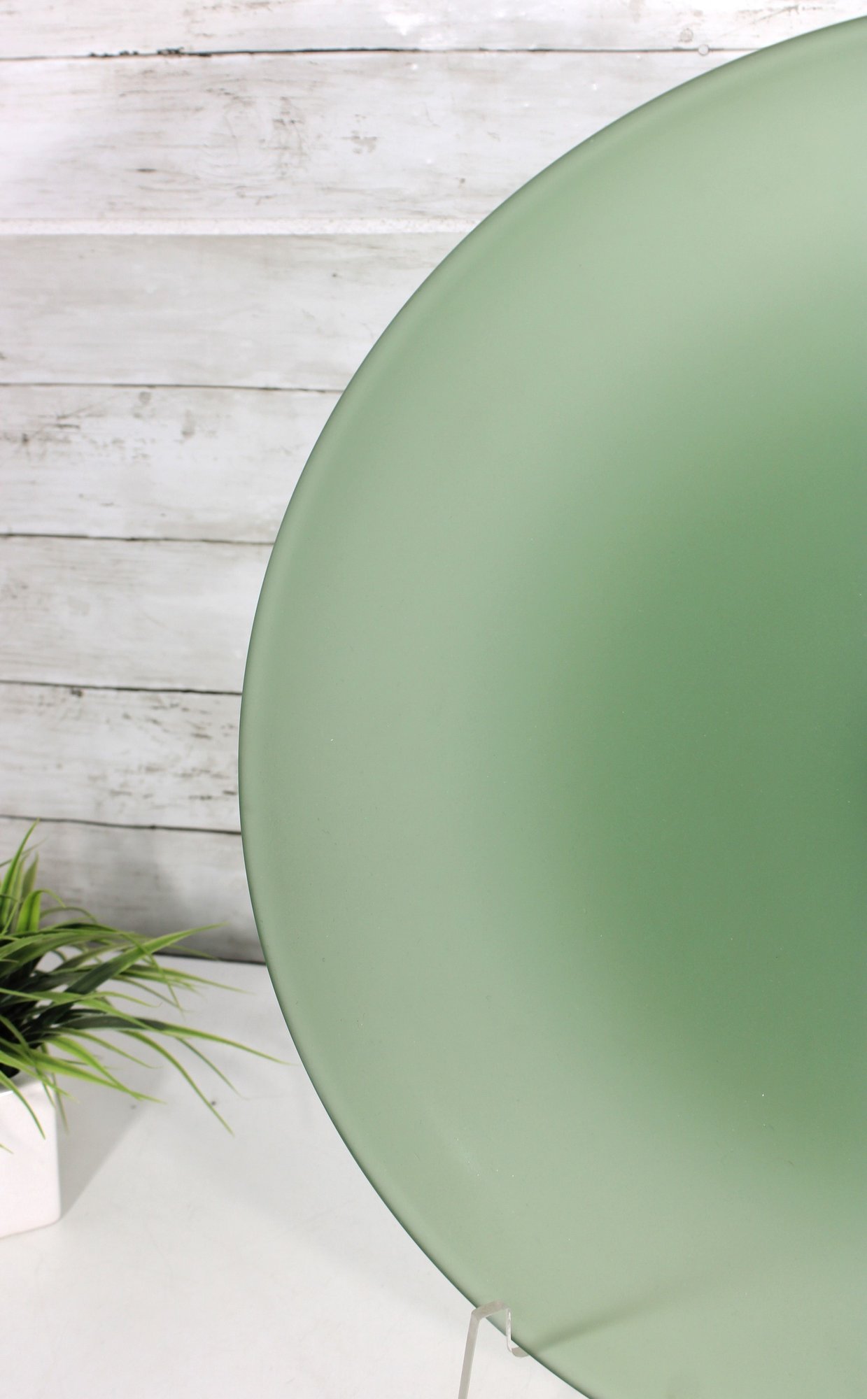 large frosted glass charger plate featuring a soft green hue with a smooth matte finish. This oversized decorative platter offers a clean, modern aesthetic, perfect for use as a centerpiece, wall décor, or display piece.