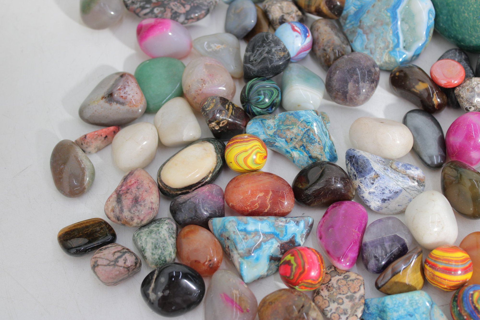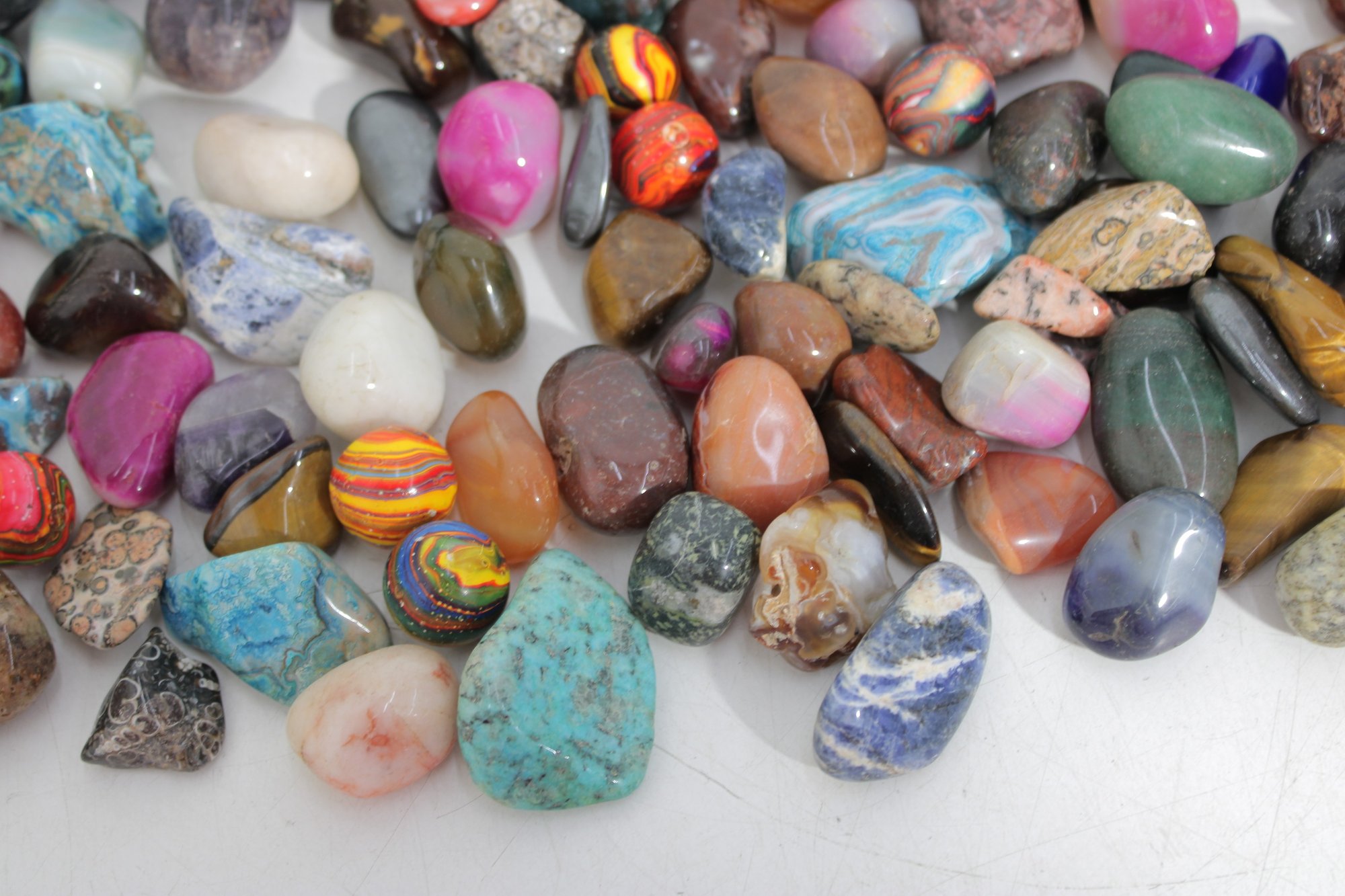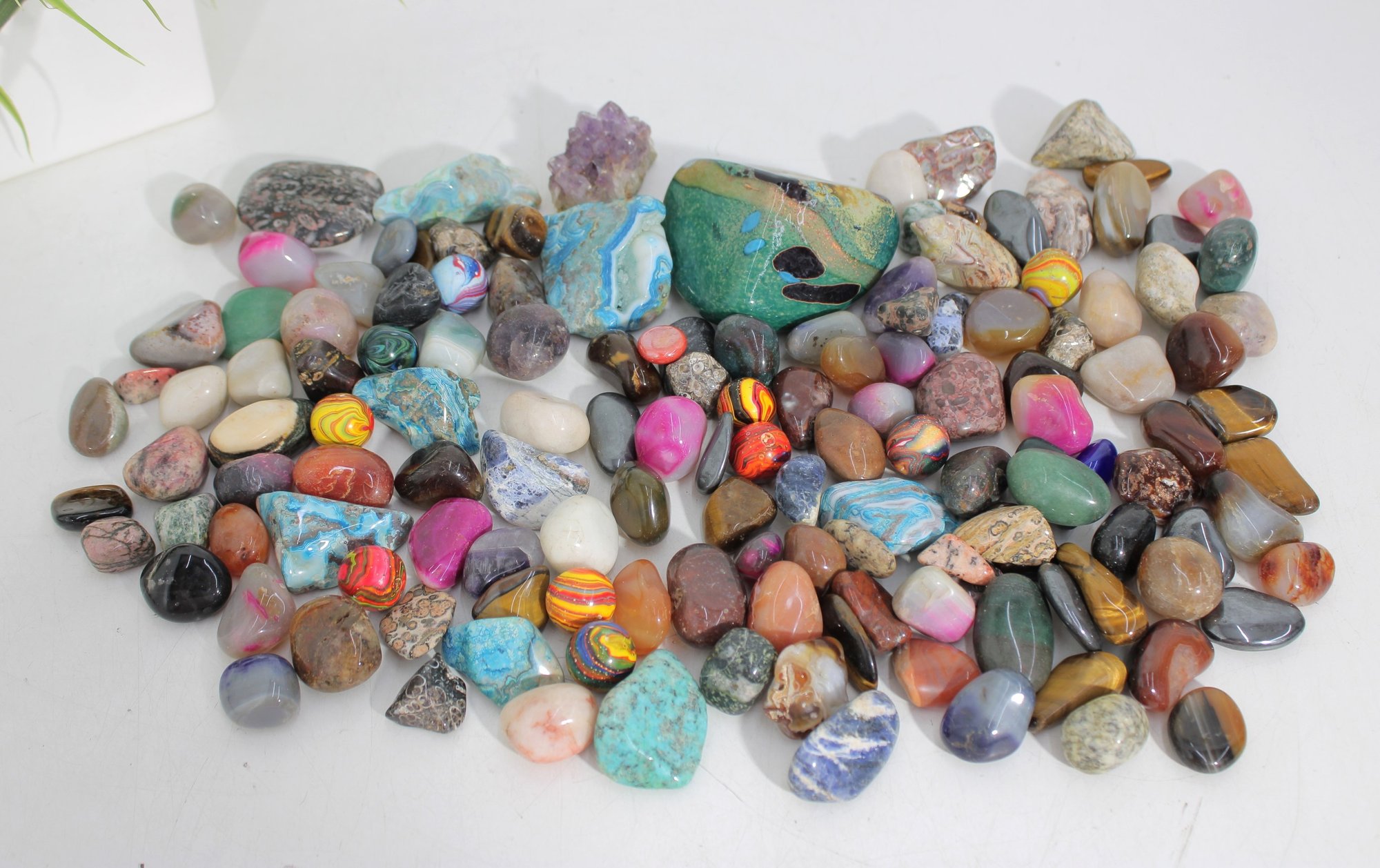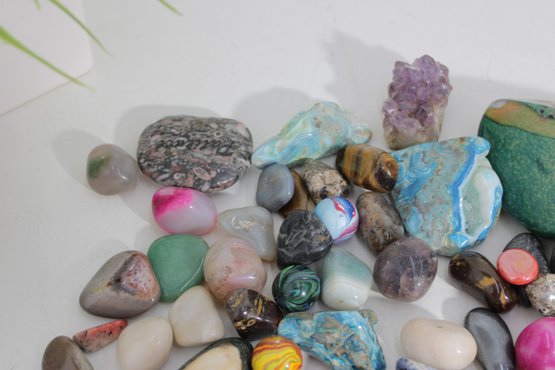 Large Lot Of Polished Gemstones & Tumbled Stones Agate, Quartz, Jasper, Amethyst & More