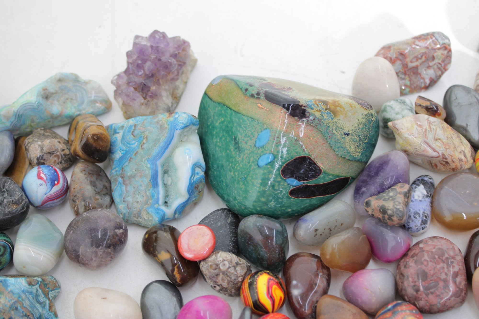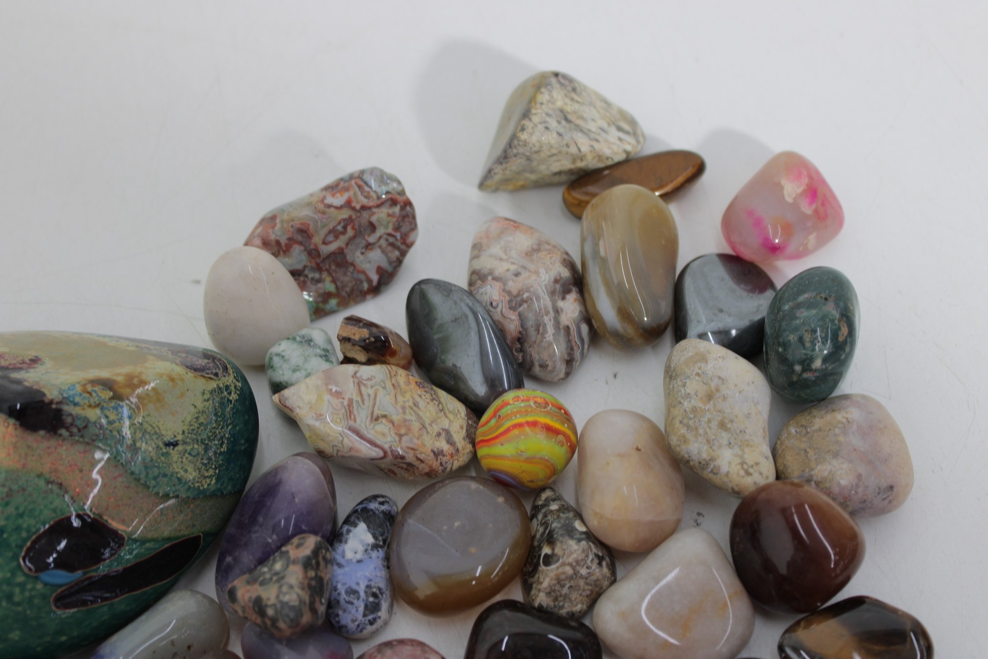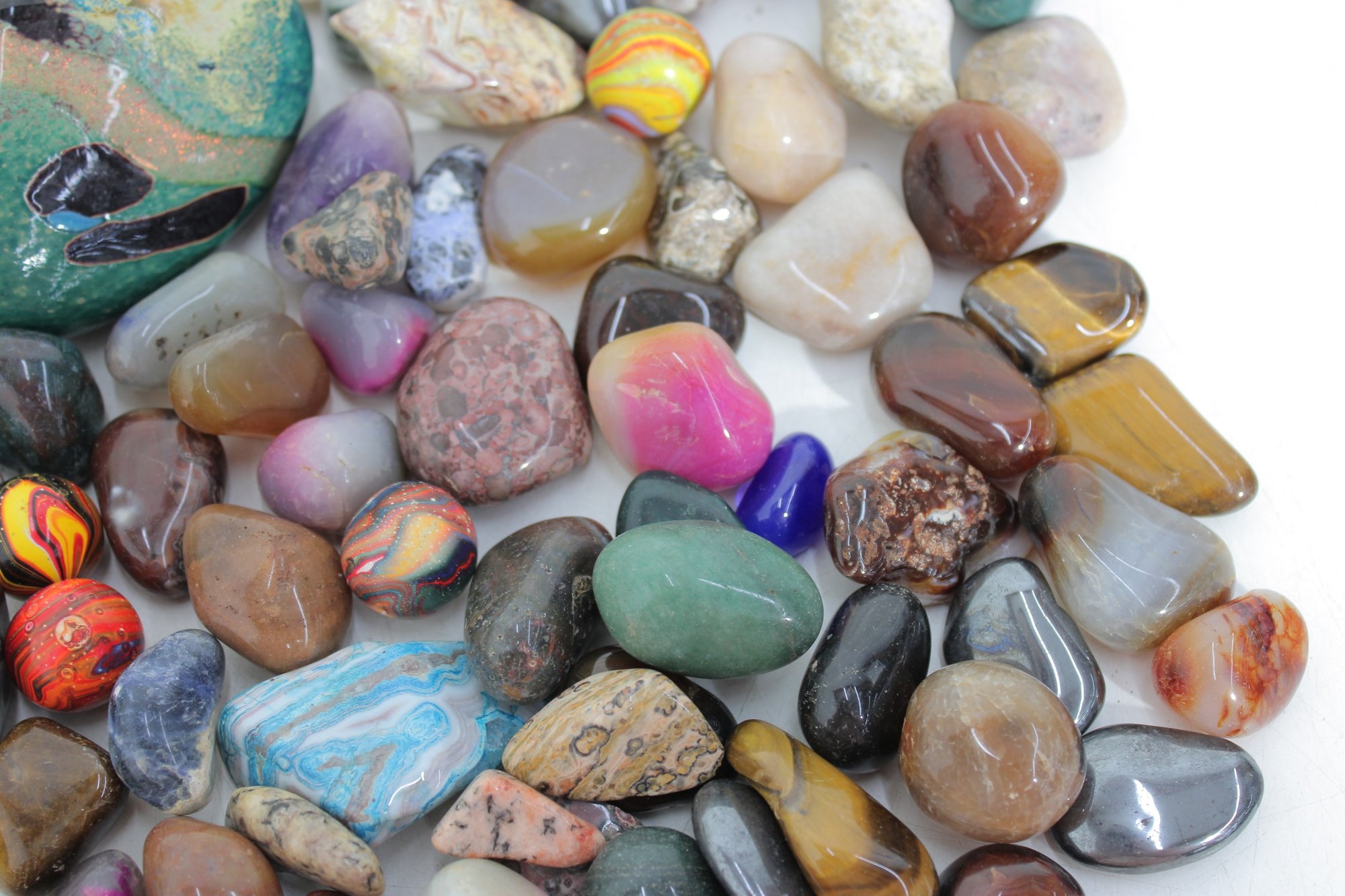 Large Lot Of Polished Gemstones & Tumbled Stones Agate, Quartz, Jasper, Amethyst & More