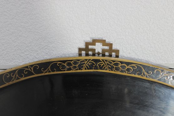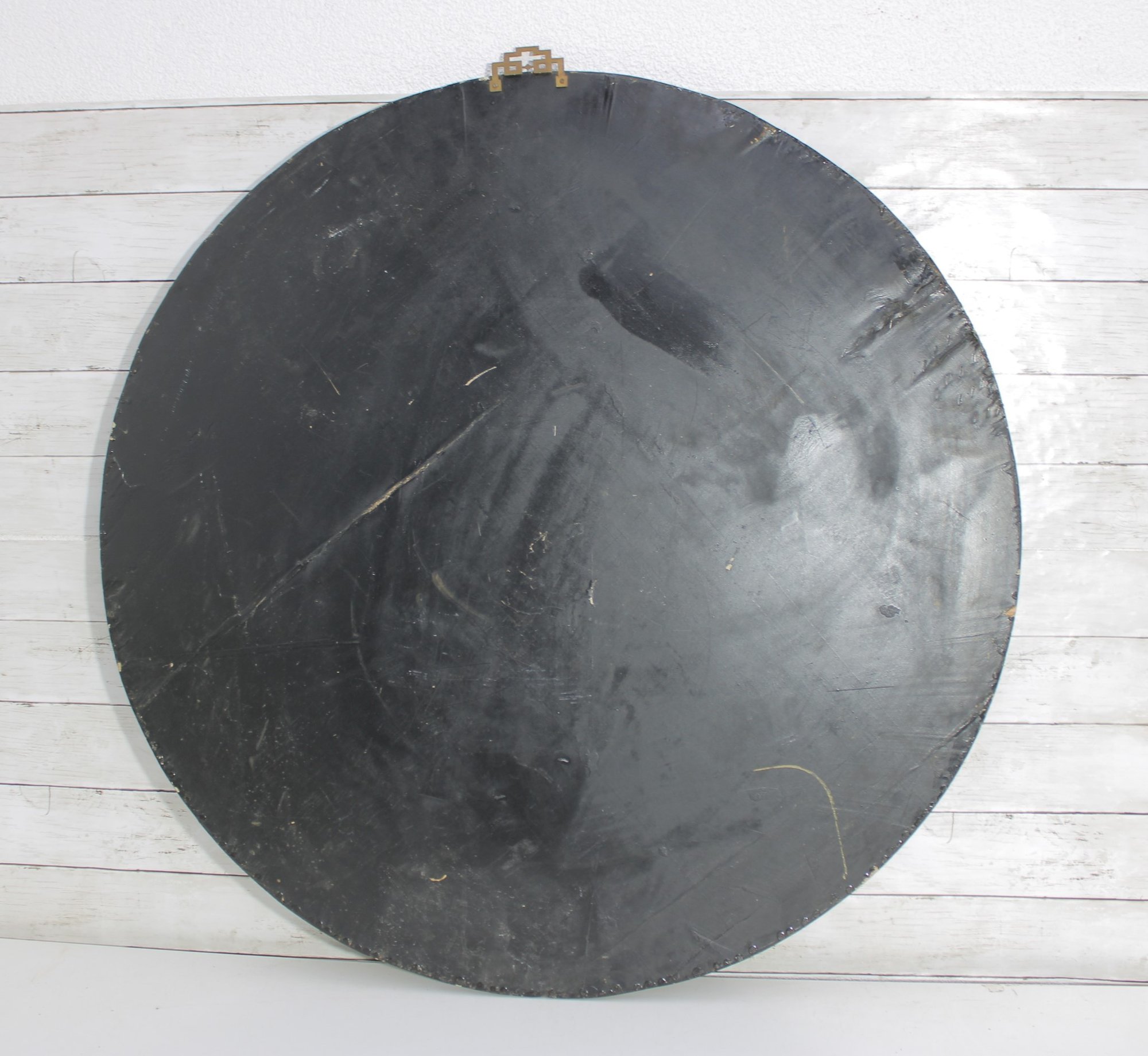 The panel is finished with a decorative pierced hanger at the top and a detailed gold-tone border, making it ideal for traditional, Hollywood Regency, or Chinoiserie-style interiors. Its generous 35.5" diameter gives it strong visual presence — perfect as a focal point above a console, sofa, or entryway wall.