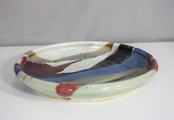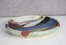 Add a bold artistic statement to your collection with this striking hand-thrown studio pottery platter, showcasing a flowing abstract glaze design in rich earth tones, cobalt blue, deep burgundy, and cream. Measuring 15.5" in diameter and 2.5" high, this piece is a perfect fusion of function and fine art.