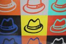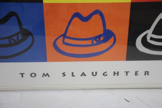 Add a bold and vibrant statement to your collection with this large framed Tom Slaughter pop art print featuring a colorful hat motif. This eye-catching piece measures 40 inches high by 49.5 inches wide, making it a striking addition to any space.