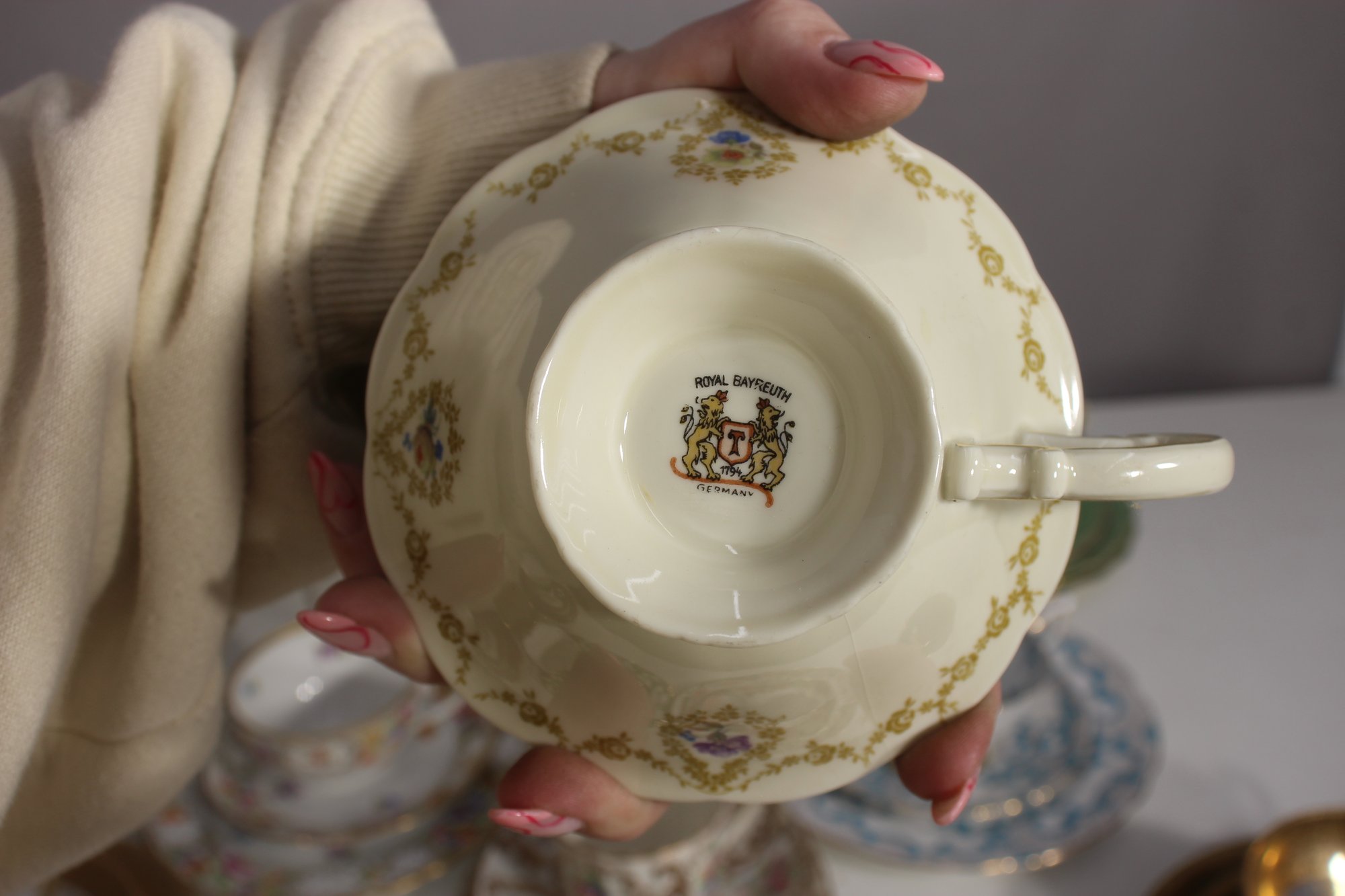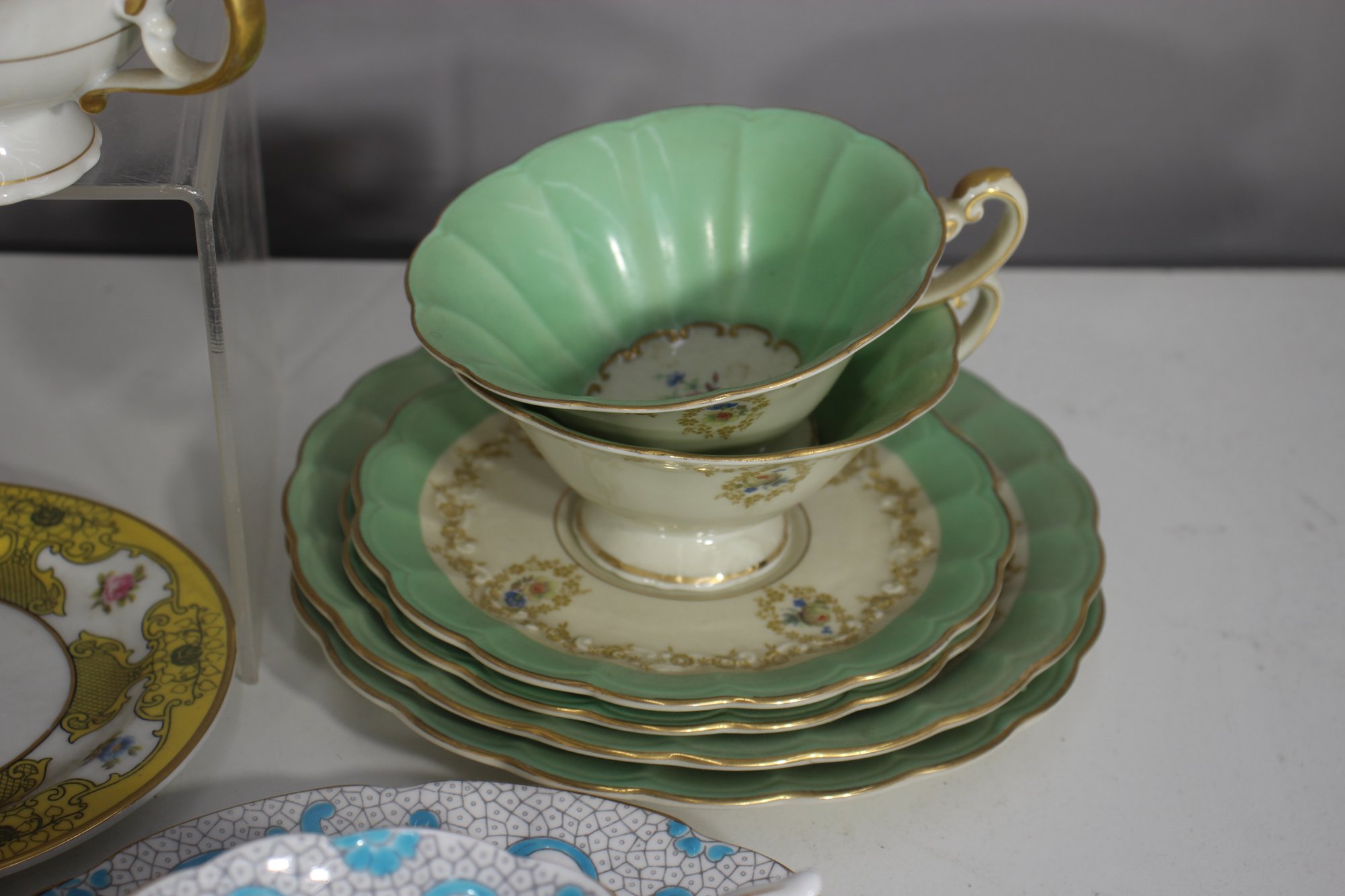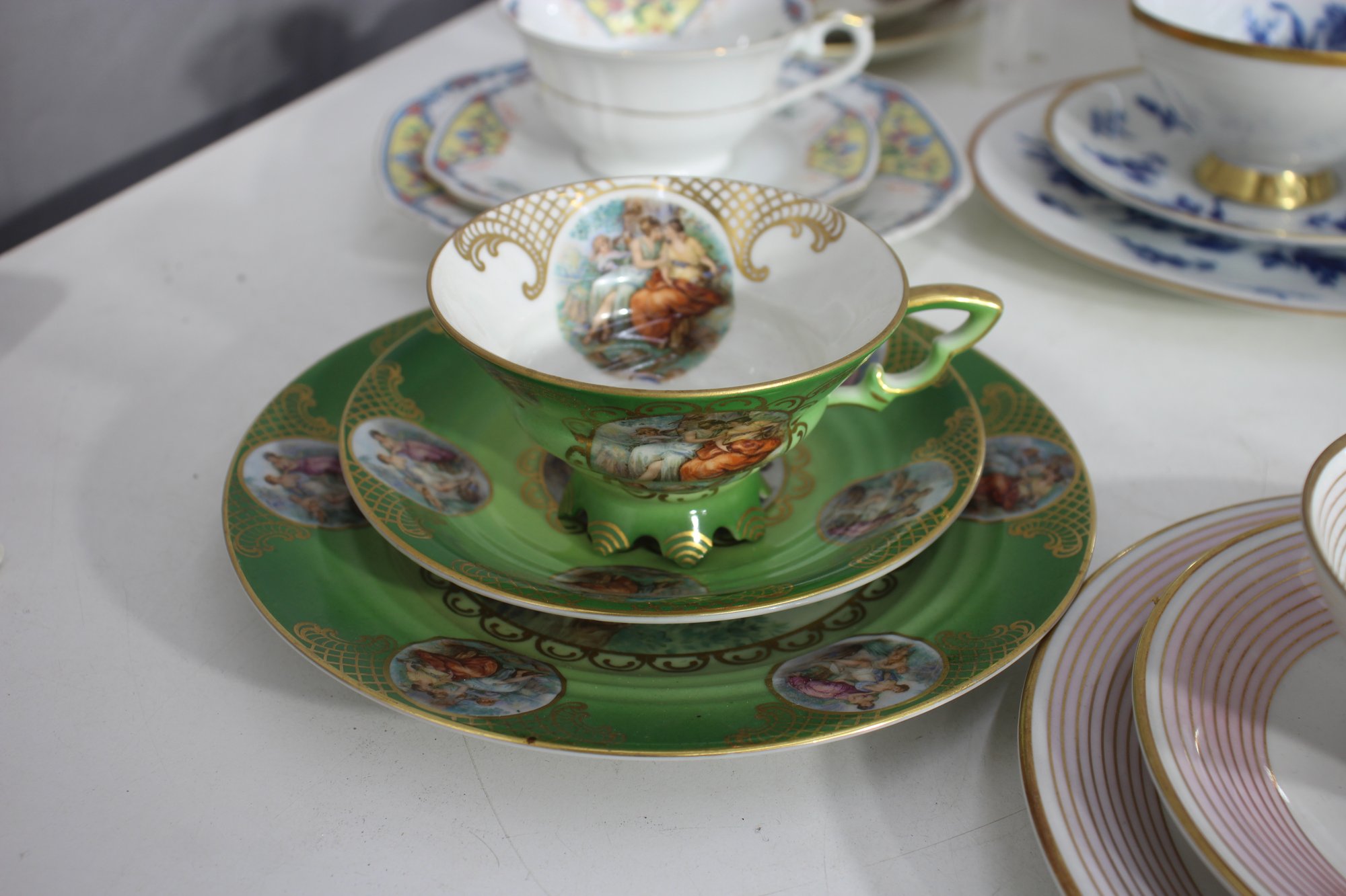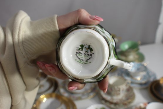 This stunning group lot features an assorted collection of vintage and antique teacups and saucers, each with its own unique design, pattern, and color palette. A perfect addition for collectors, tea enthusiasts, or elegant display settings.