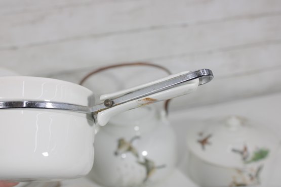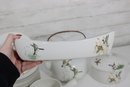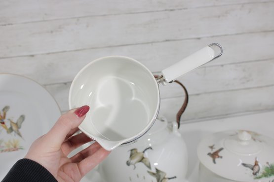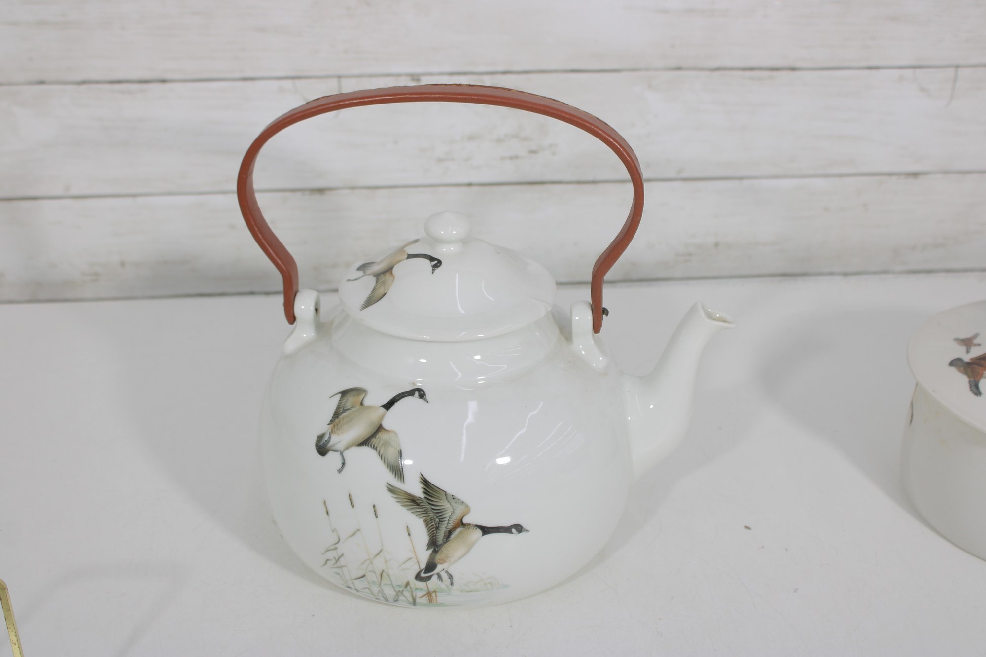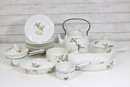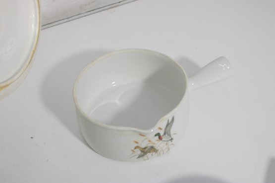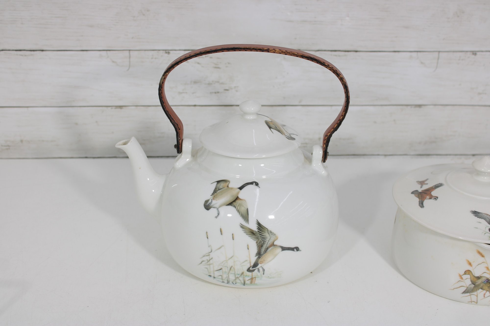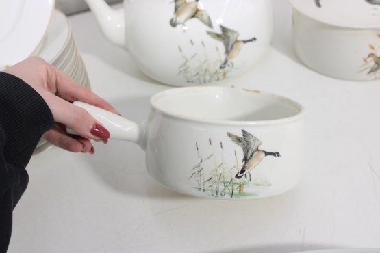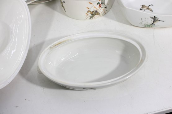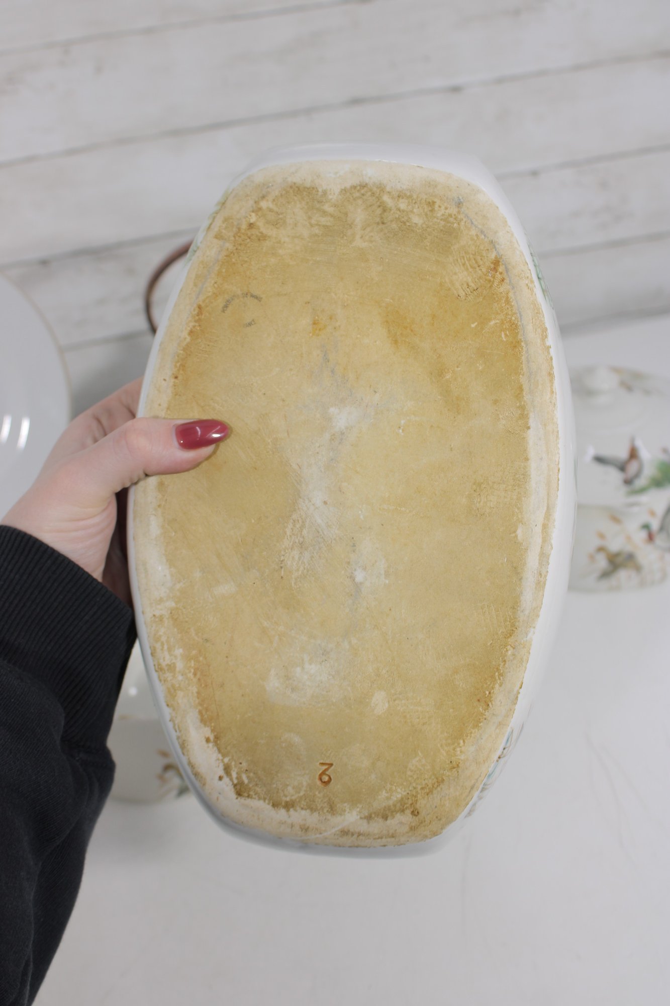 This impressive collection includes a variety of dinner plates and serving pieces, making it ideal for display, entertaining, or expanding a vintage porcelain collection. The artwork depicts pheasants and other birds in flight and in field scenes, capturing the charm of traditional European sporting tableware.