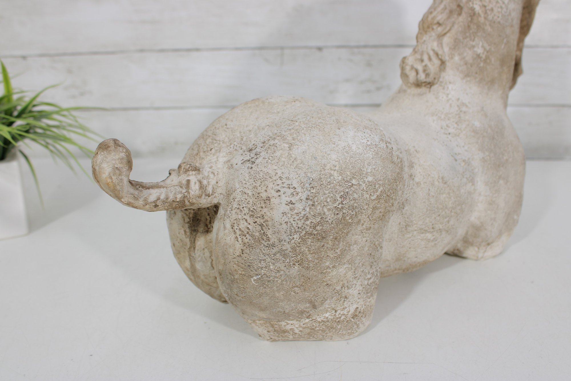 Measuring approximately 20 inches long and 12 inches tall, this substantial decorative statue makes a striking shelf, mantle, or tabletop display piece.