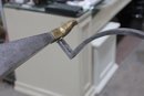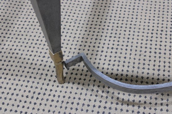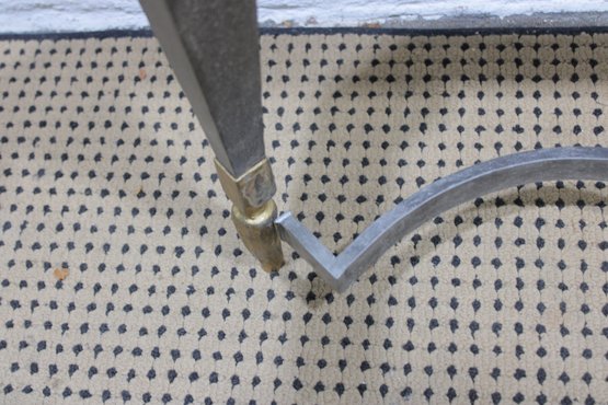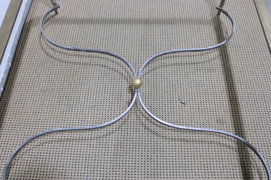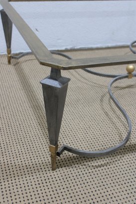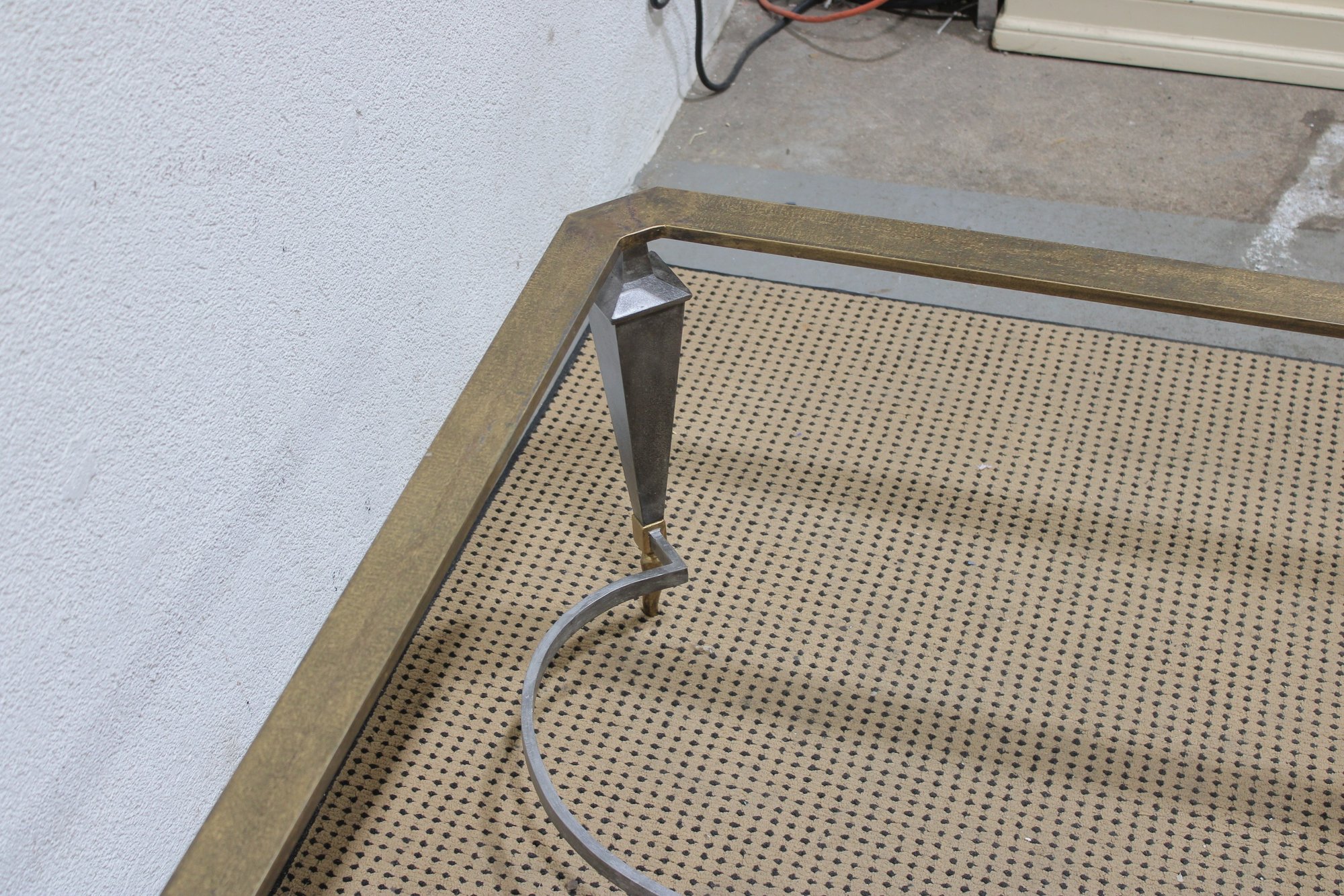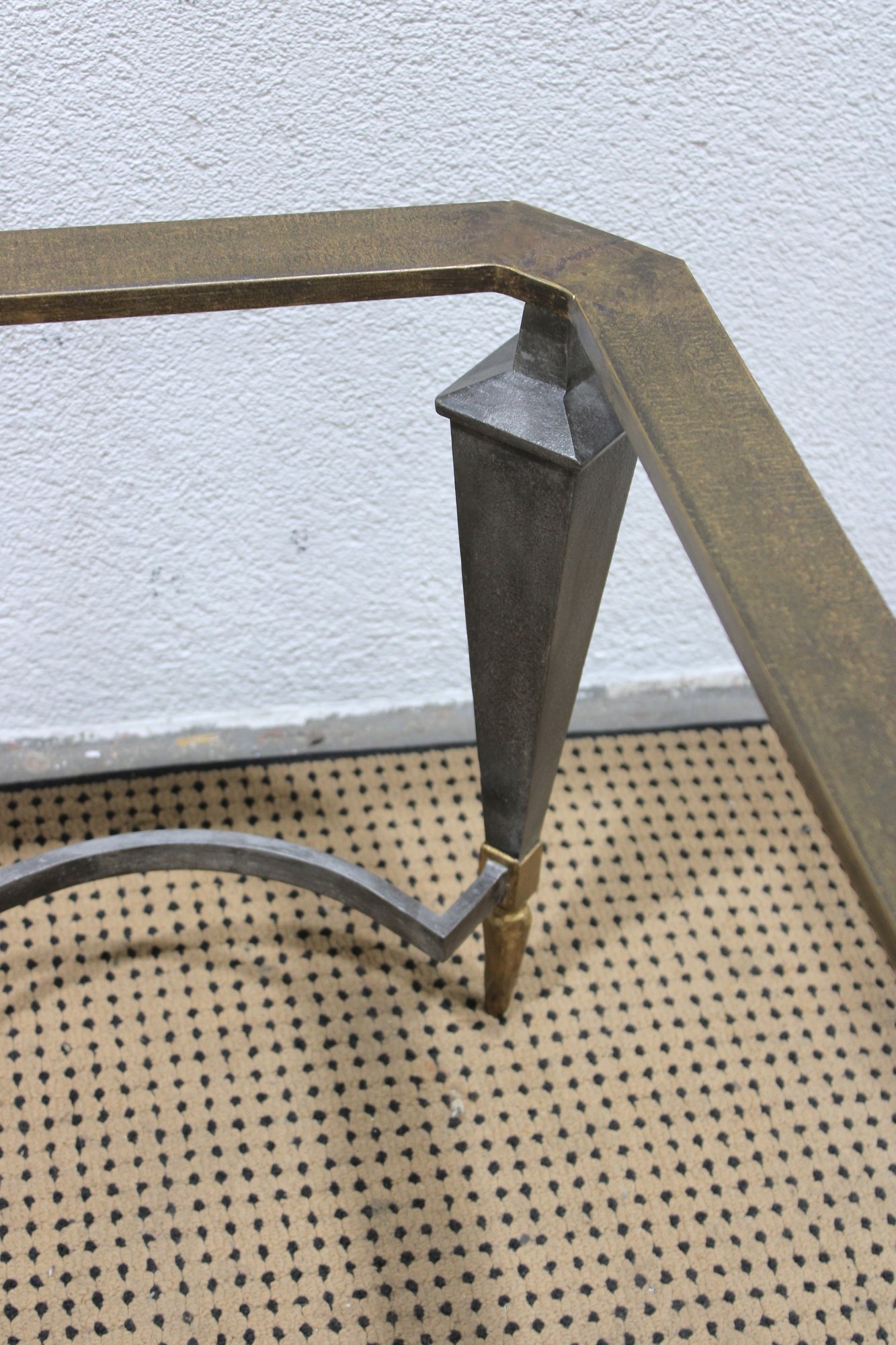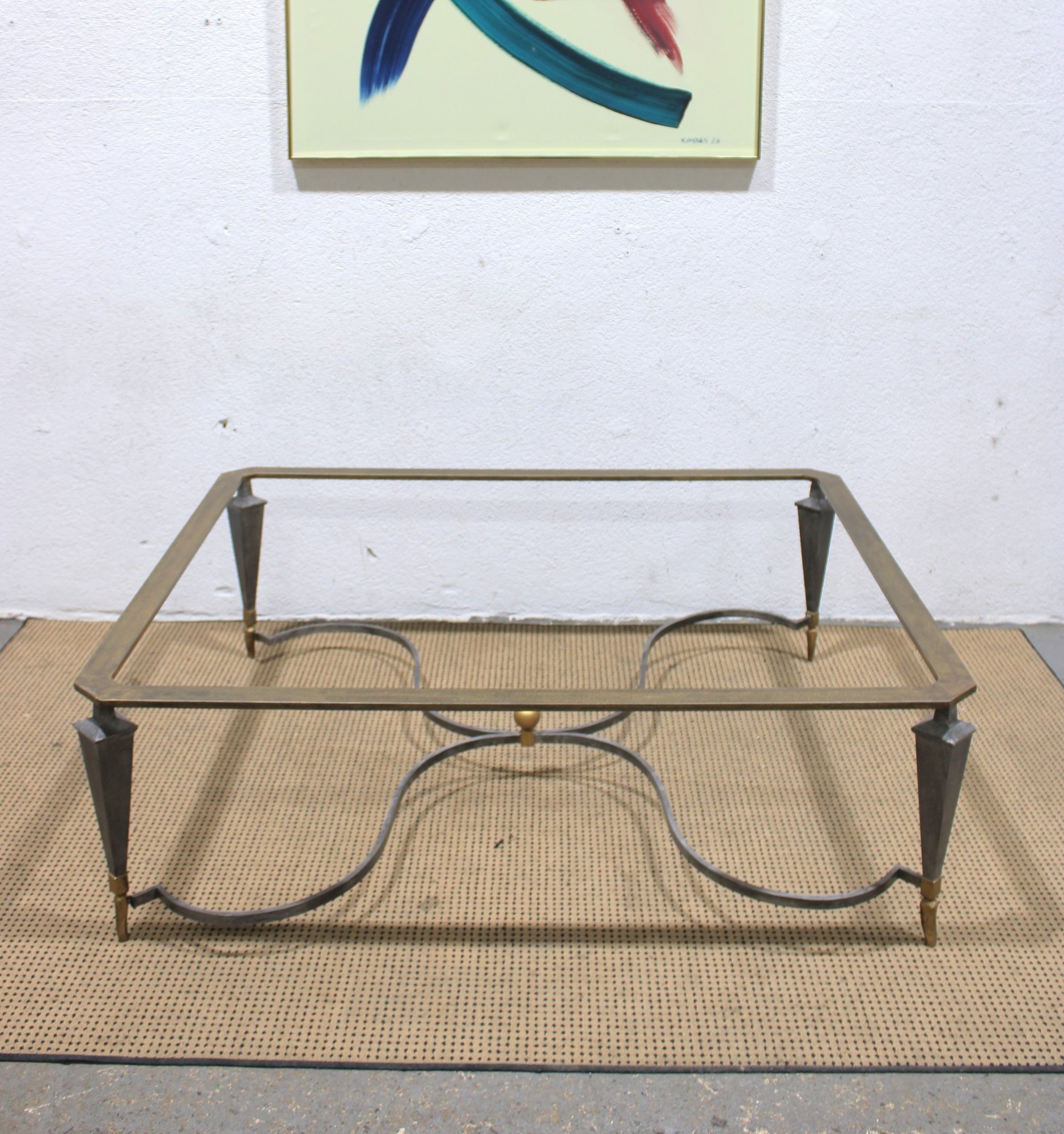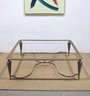 large vintage coffee table base featuring a striking sculptural metal design. Crafted with a substantial rectangular frame, tapered legs, and elegant curved stretcher supports, this piece blends industrial strength with refined detailing.