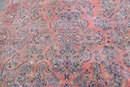 This stunning rug features an intricate all-over floral and medallion pattern in rich shades of coral, rose, navy, cream, and soft blue. The detailed border frames the central field beautifully, showcasing traditional scrolling vines, floral motifs, and classic Persian-inspired artistry.