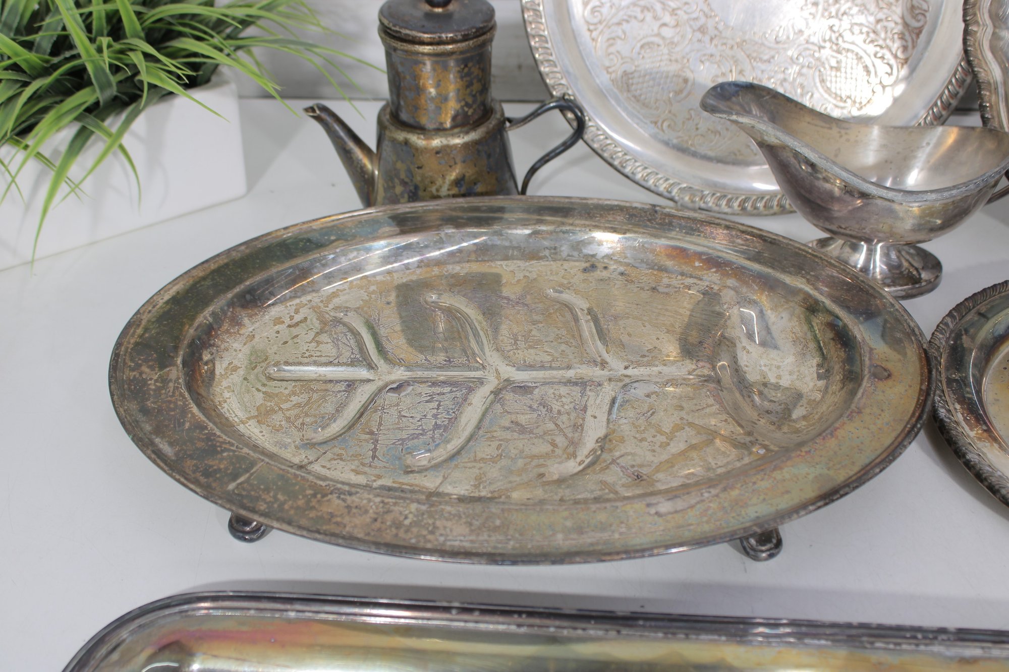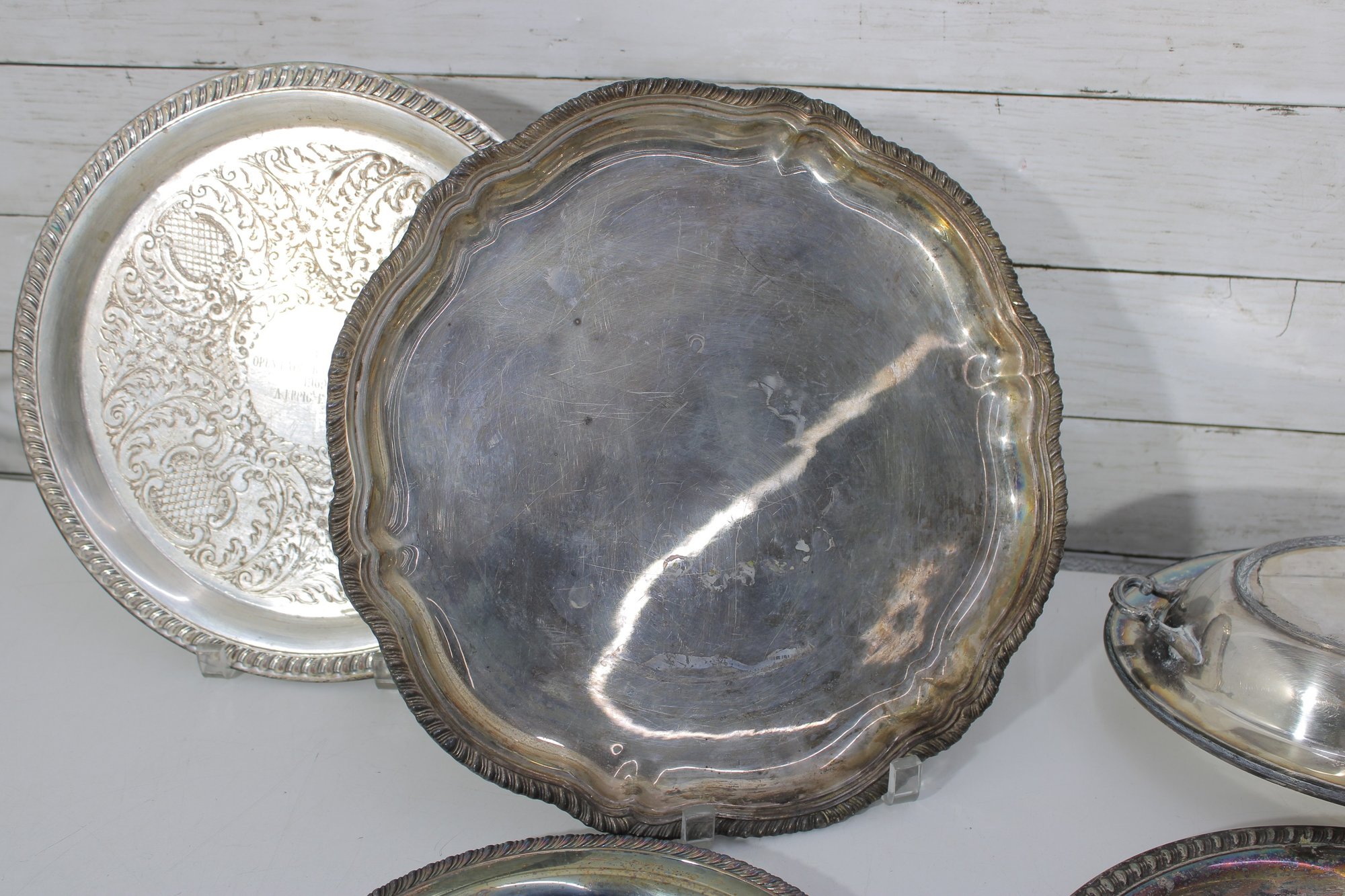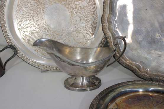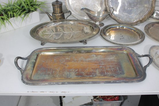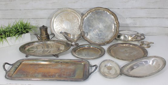 Large Vintage Silverplate Serving Ware Group Lot Trays, Platters, Bowls & More