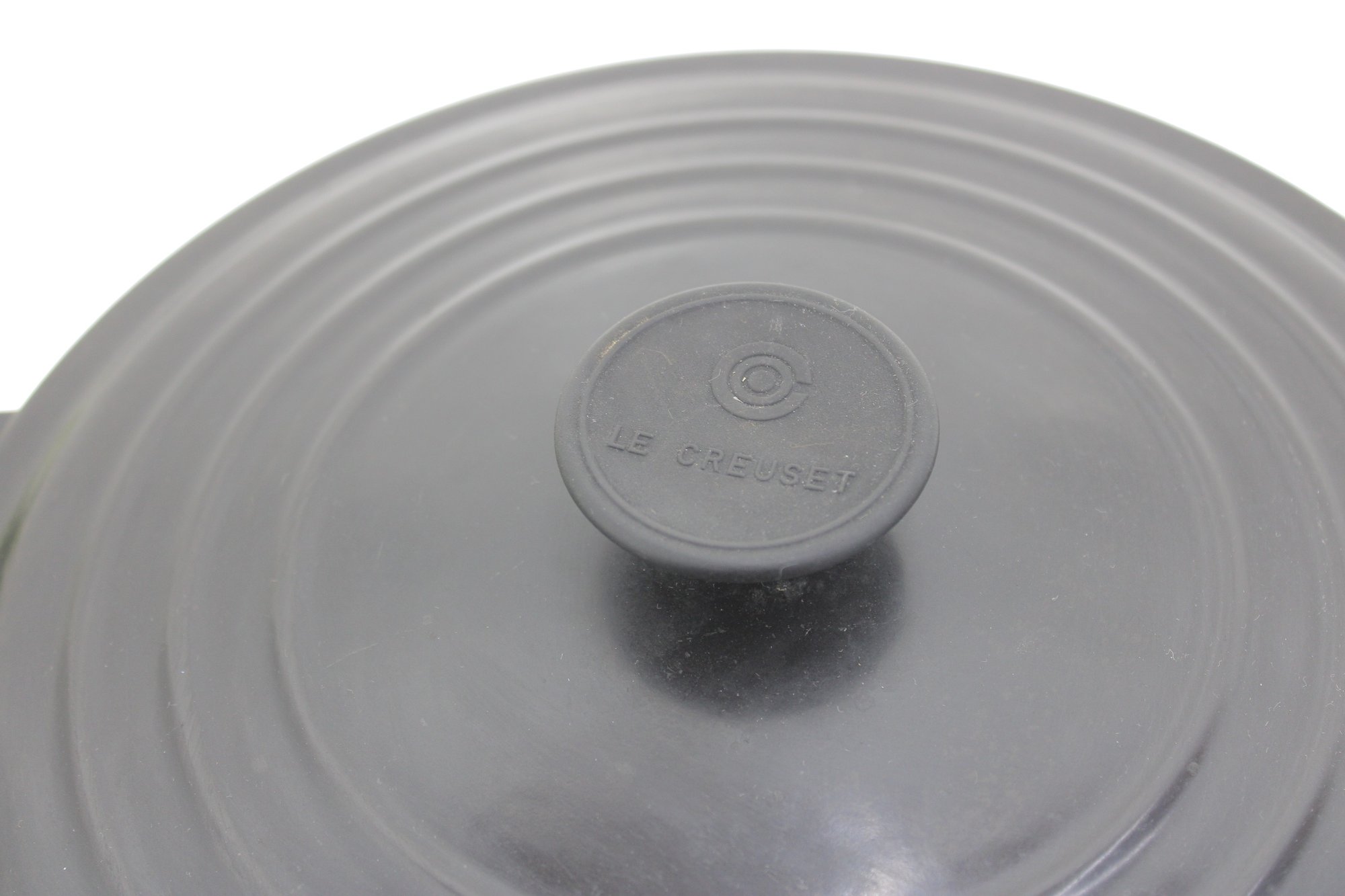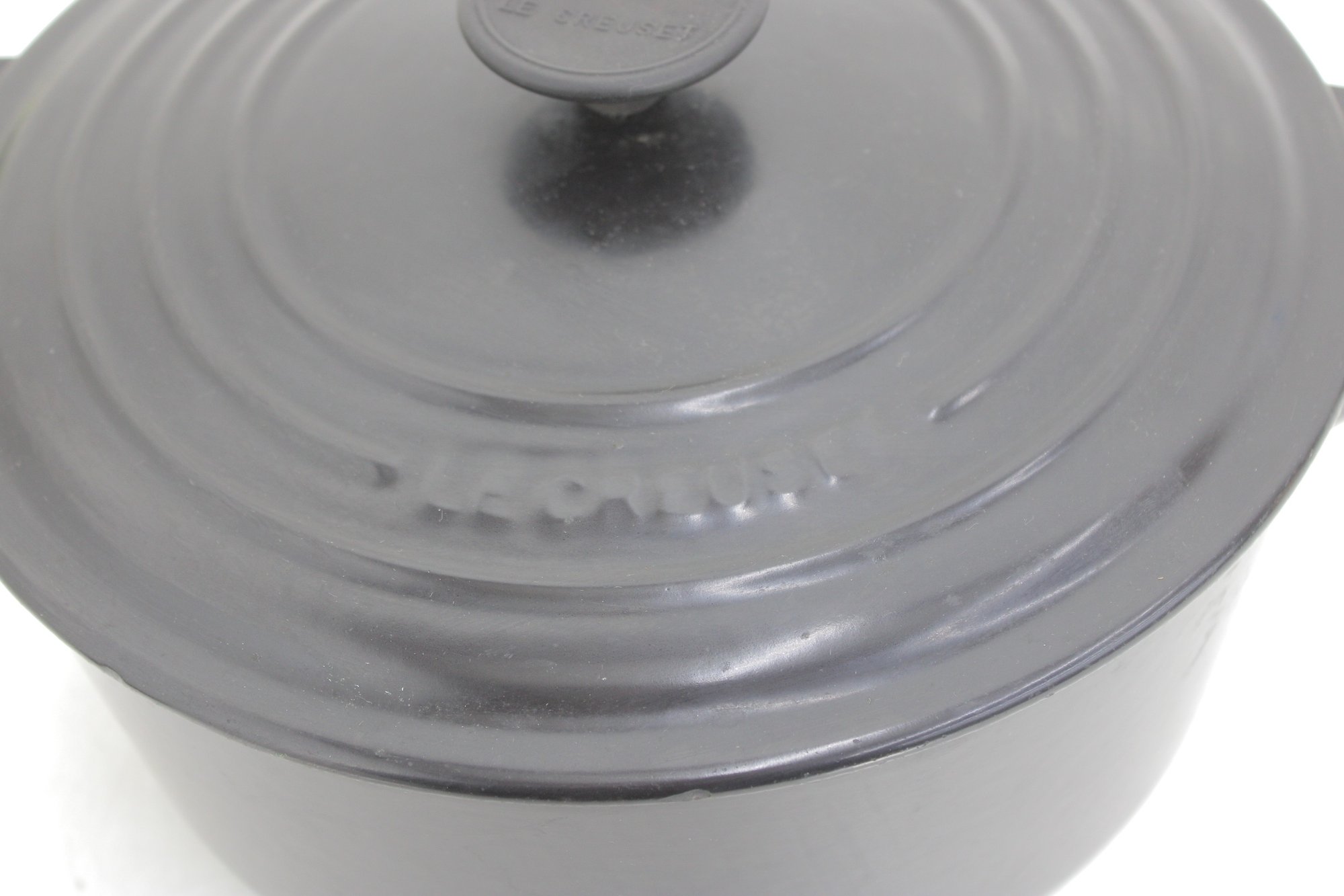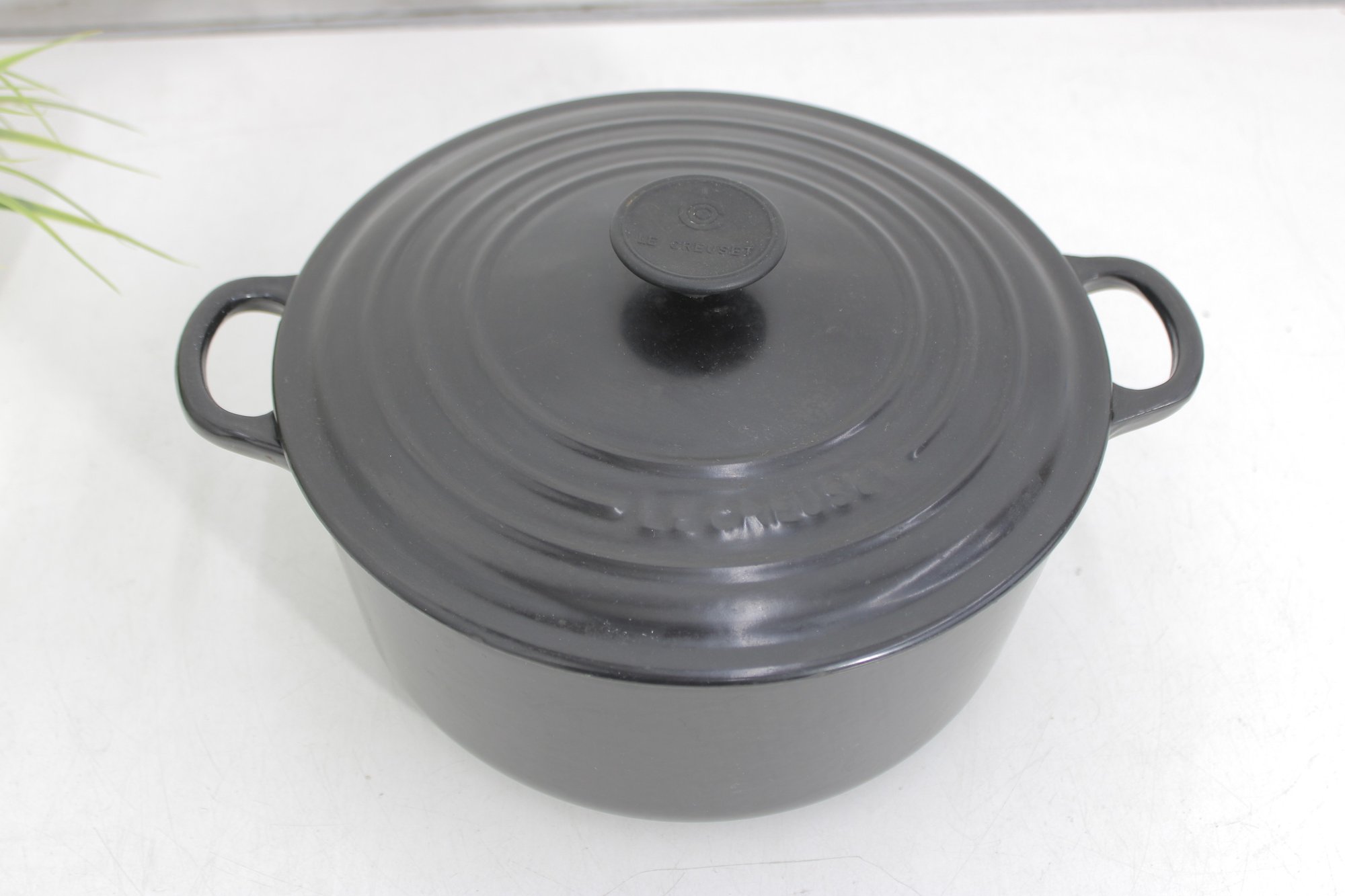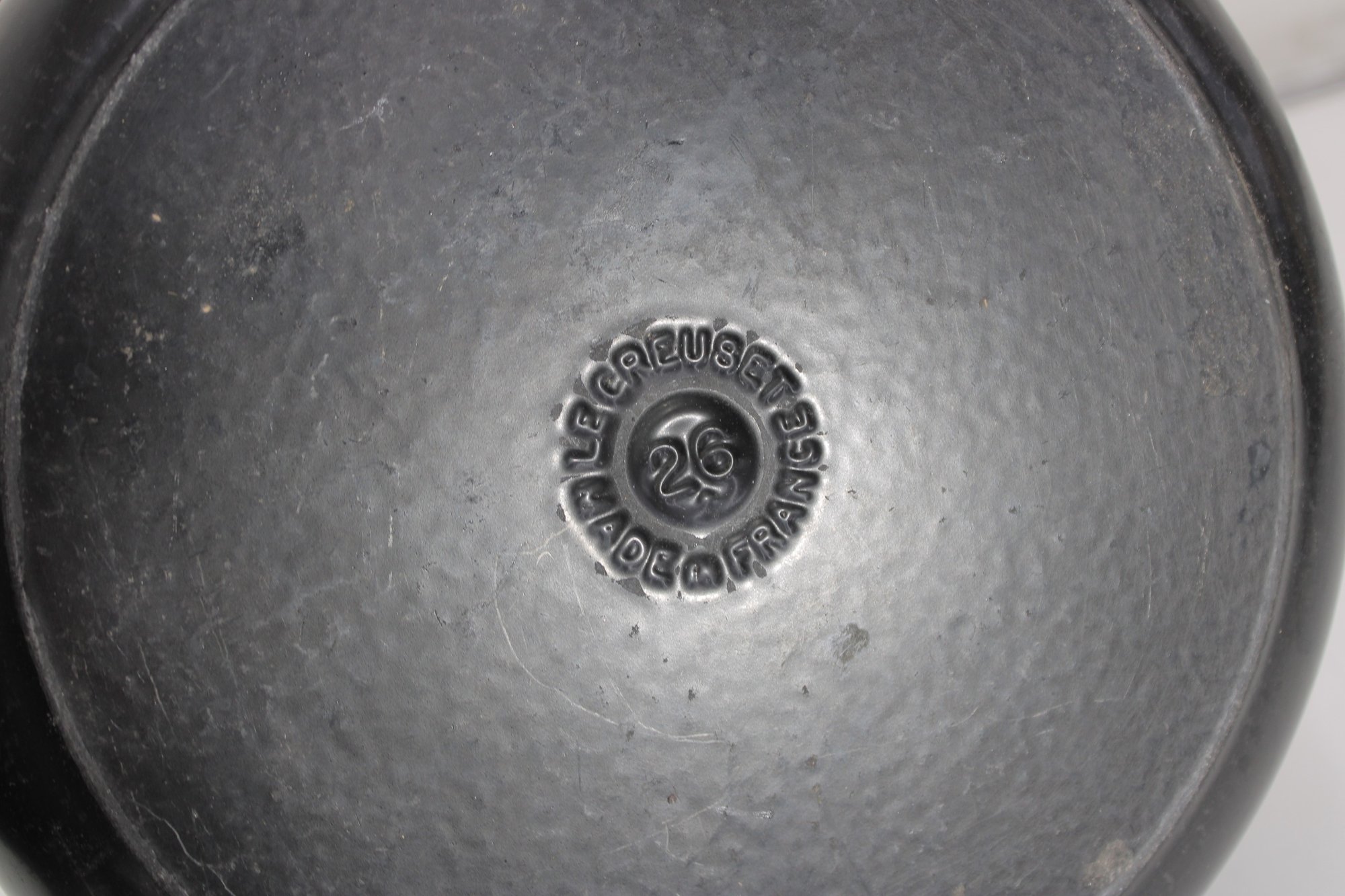 Authentic Le Creuset cast iron Dutch oven, proudly Made in France, measuring approximately 5” high x 10” round (excluding handles).