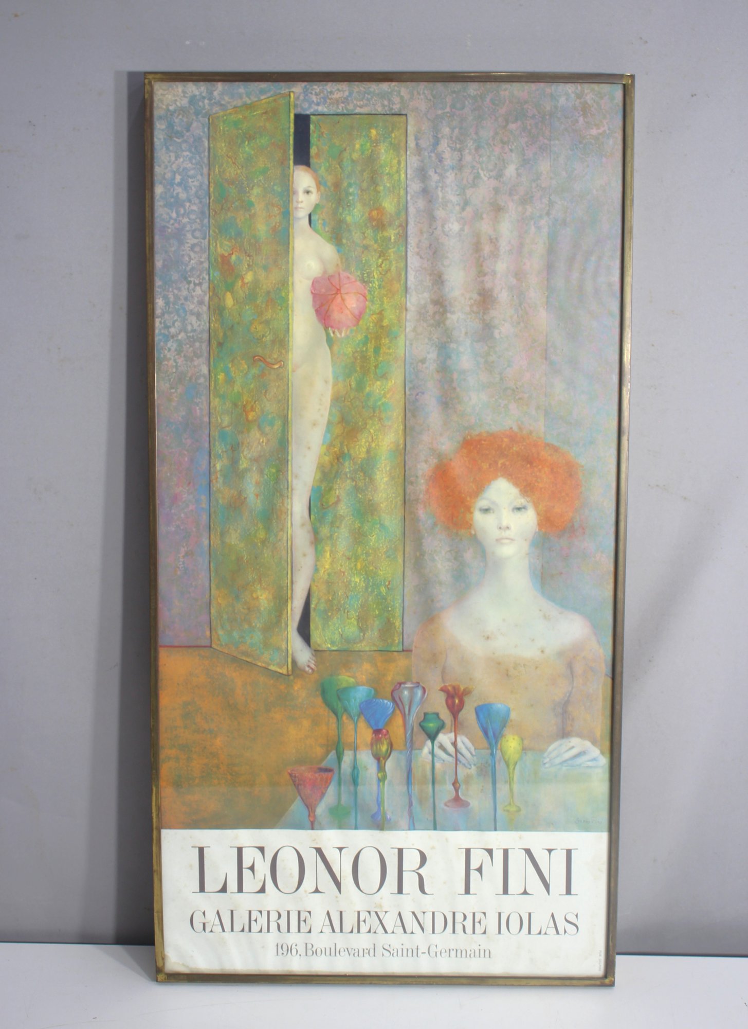 Presenting a stunning vintage exhibition poster for the renowned surrealist artist Leonor Fini, from her show at Galerie Alexandre Iolas, Paris. This captivating artwork features Fini’s signature dreamlike, ethereal figures with rich, textured details and an alluring color palette.