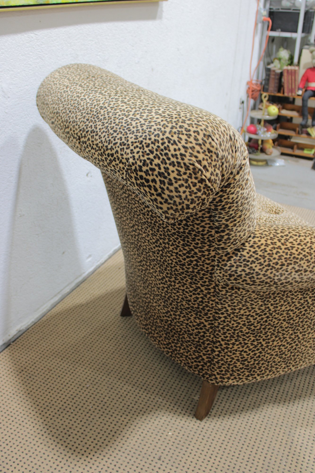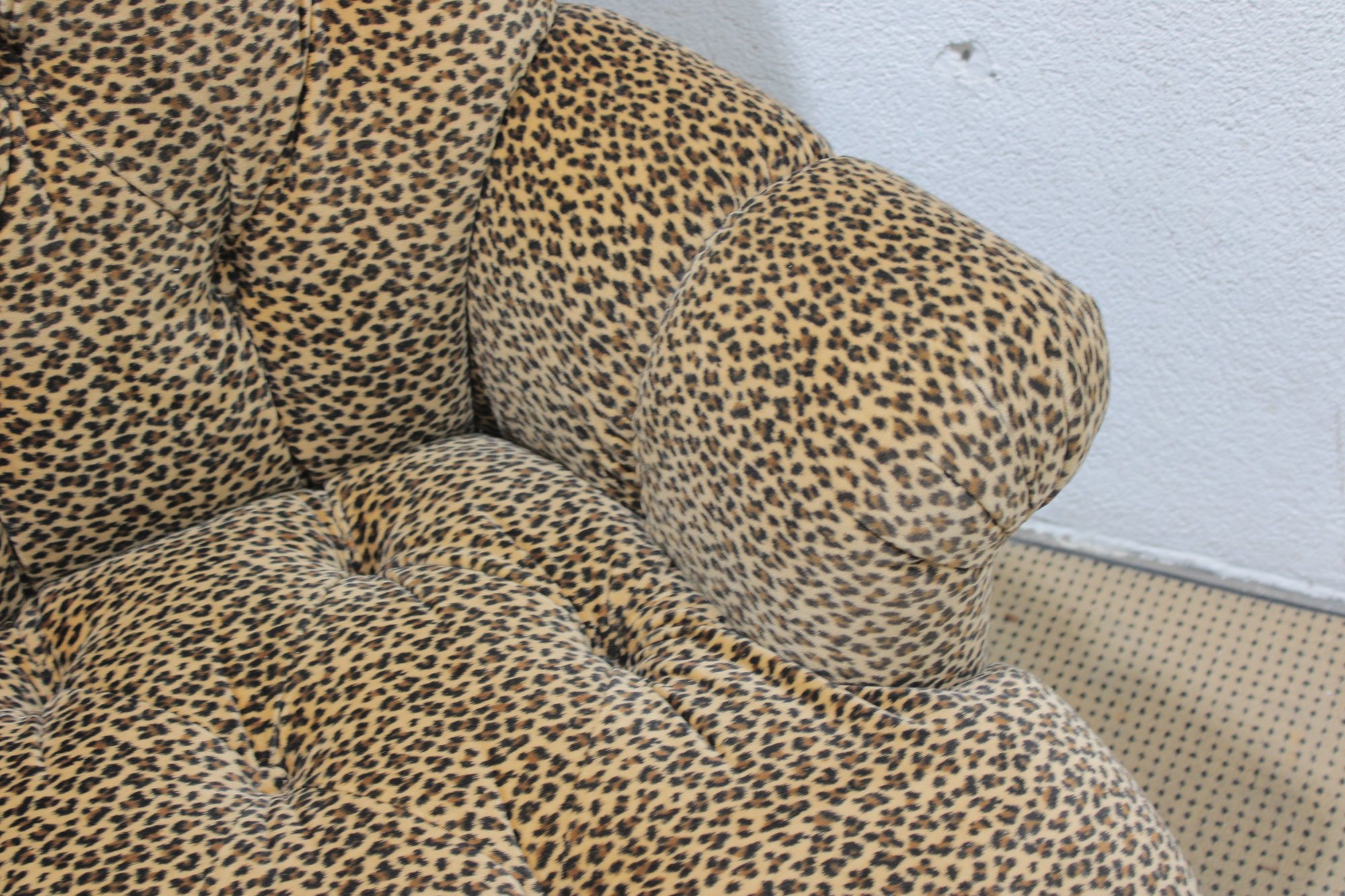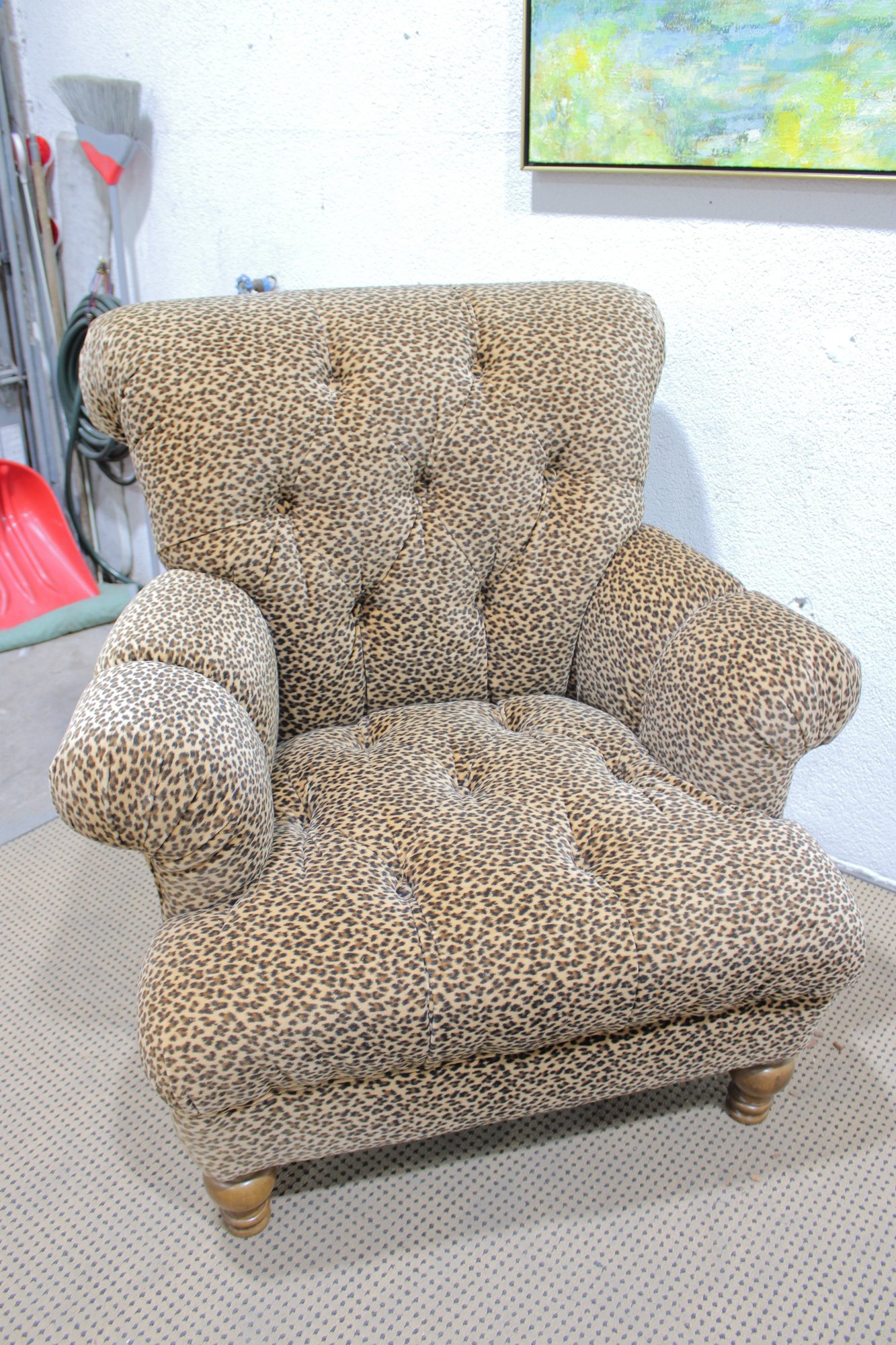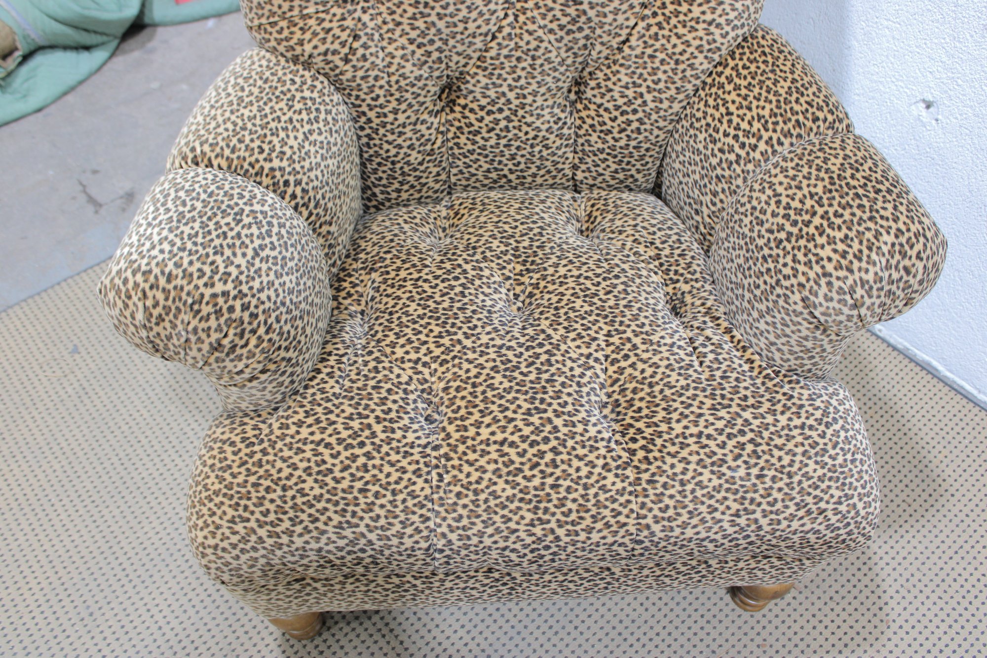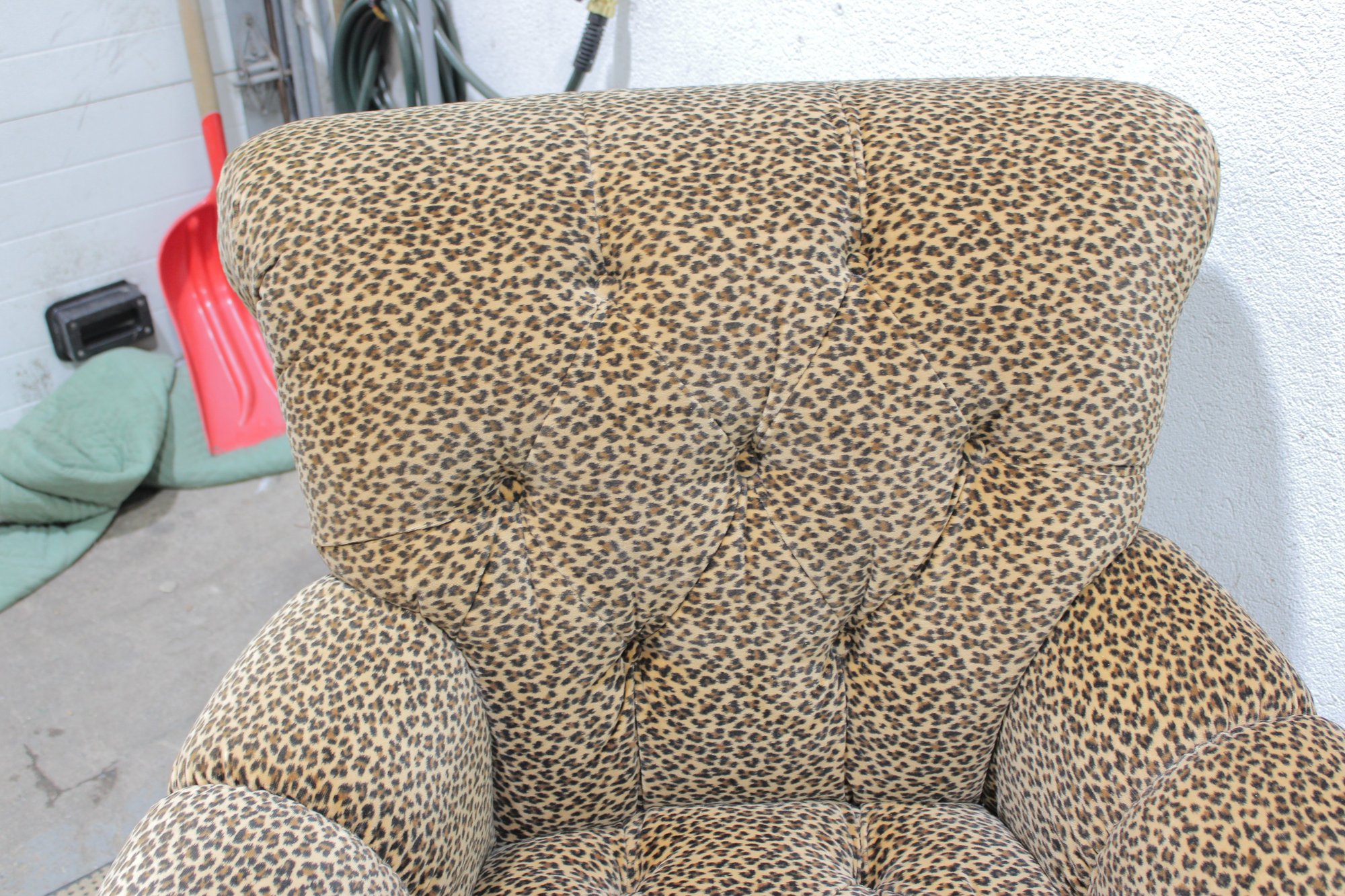 Make a bold style statement with this eye-catching leopard print armchair and matching ottoman set. Upholstered in a soft, patterned fabric with classic button tufting, this duo blends comfort with standout personality. The generously padded chair features rolled arms, a high back, and deep seating—perfect for relaxing with a book or adding a dramatic accent to any room.