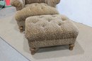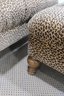 The coordinating ottoman doubles as a footrest or extra seating, making this set both functional and fashionable. Both pieces rest on sturdy turned wood legs, adding a traditional touch that balances the playful animal print.
