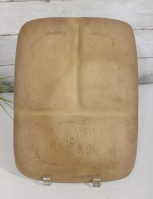 The platter has a warm beige border framing the white interior panels, creating a clean yet lively presentation—perfect for serving relishes, snacks, or appetizers. The underside is impressed with the Glidden mark and form number (300), confirming authenticity.