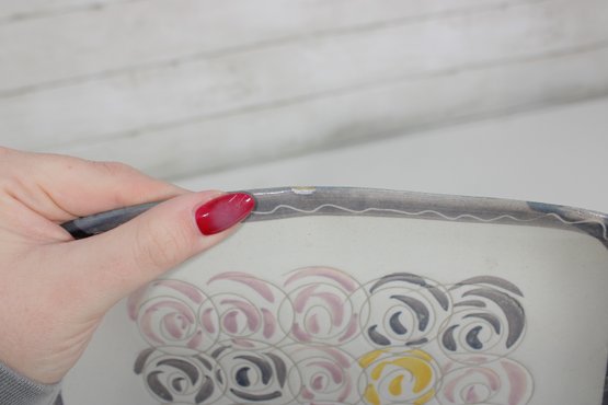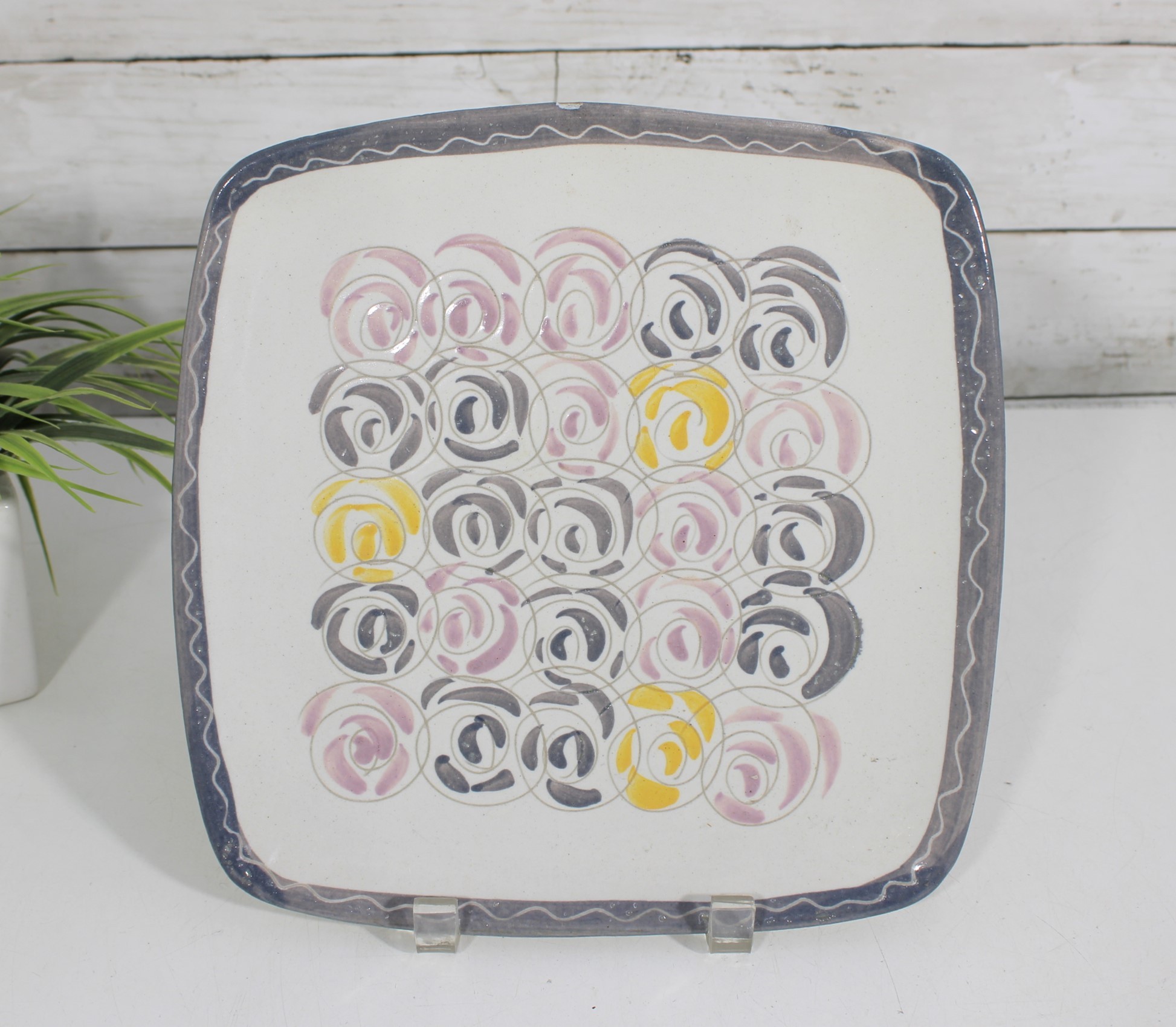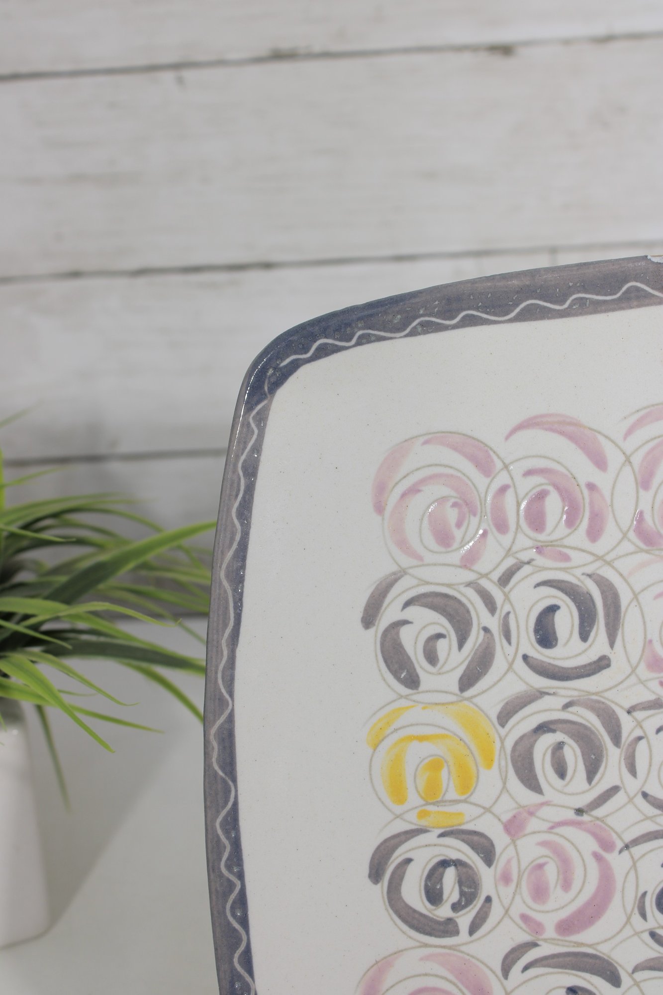 Measuring approximately 9.5” x 9.5”, this square plate is perfect as a serving piece, decorative accent, or collectible display item. The underside bears the impressed Glidden Pottery mark, confirming authenticity.