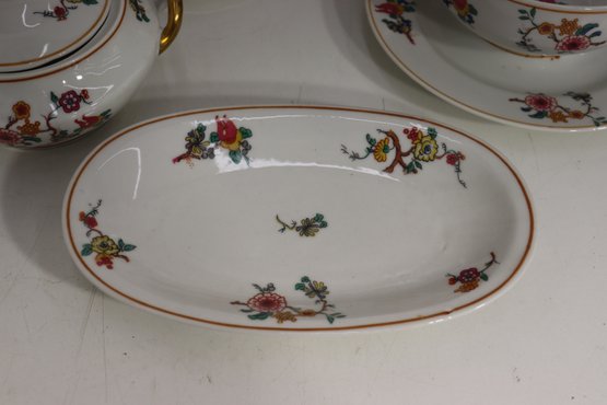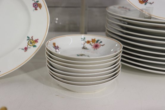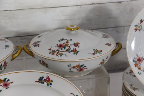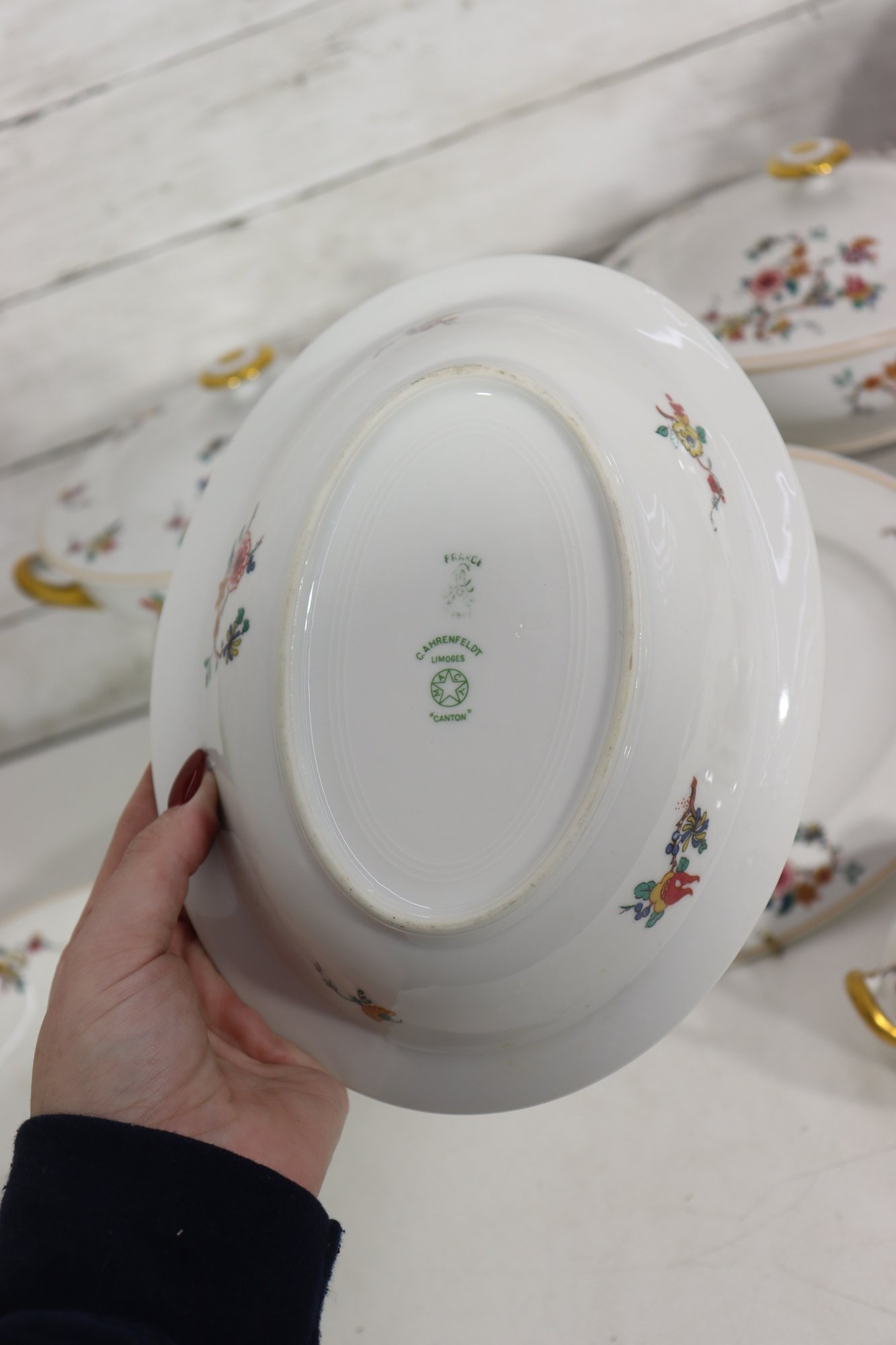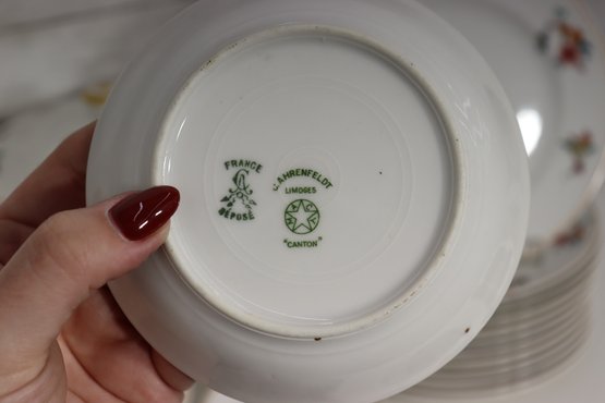 this Limoges J. Bernardaud & Co. “Canton” pattern dinnerware set showcases fine French porcelain craftsmanship with a delicate floral motif and hand-applied gold trim. Made in Limoges, France, each piece reflects the refined artistry and quality associated with one of the most respected porcelain makers in the world.