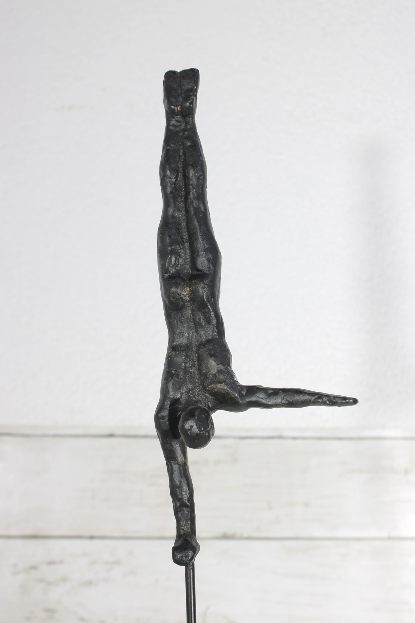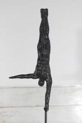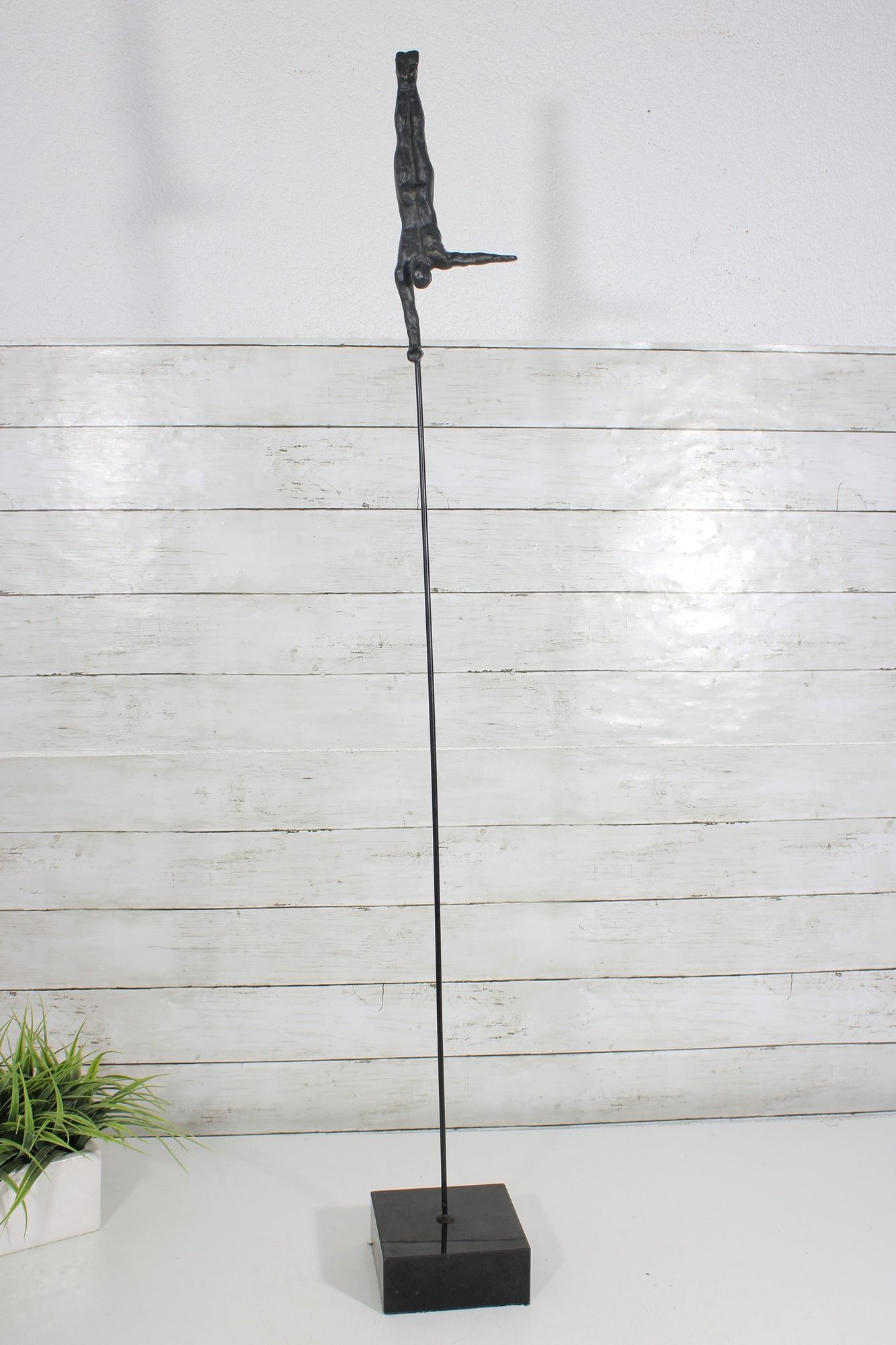 “Acrobat on One Arm” sculpture by Global Views, a contemporary decorative piece that captures strength, balance, and motion in a minimalist artistic form. This unique sculpture features a stylized acrobat figure poised in a one-arm handstand, showcasing impressive detail and expressive form.