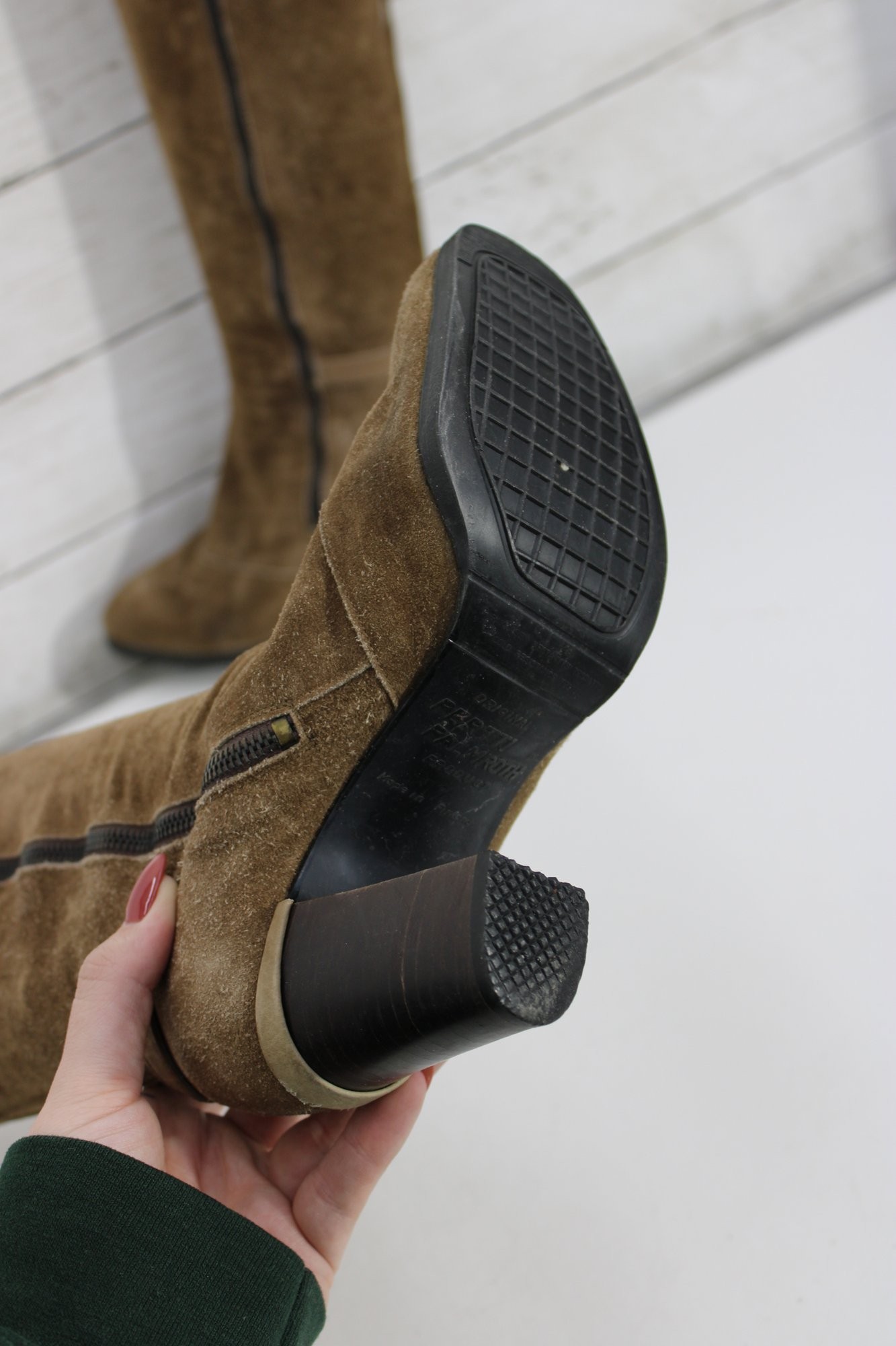 Designed with a side zipper for easy wear, these boots offer both style and practicality. A well-made vintage pair with enduring appeal.