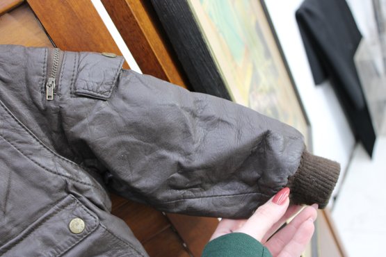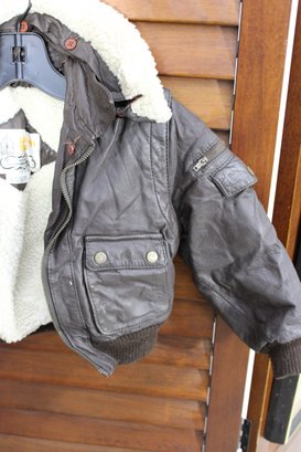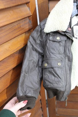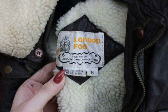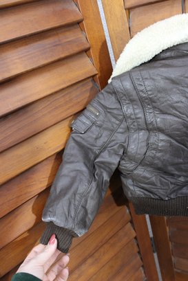 Classic and cozy, this London Fog children’s aviator-style jacket features a warm faux shearling lining and collar, giving it a timeless look inspired by traditional flight jackets. The rich brown exterior pairs perfectly with the soft cream lining, offering both style and comfort for cooler weather.