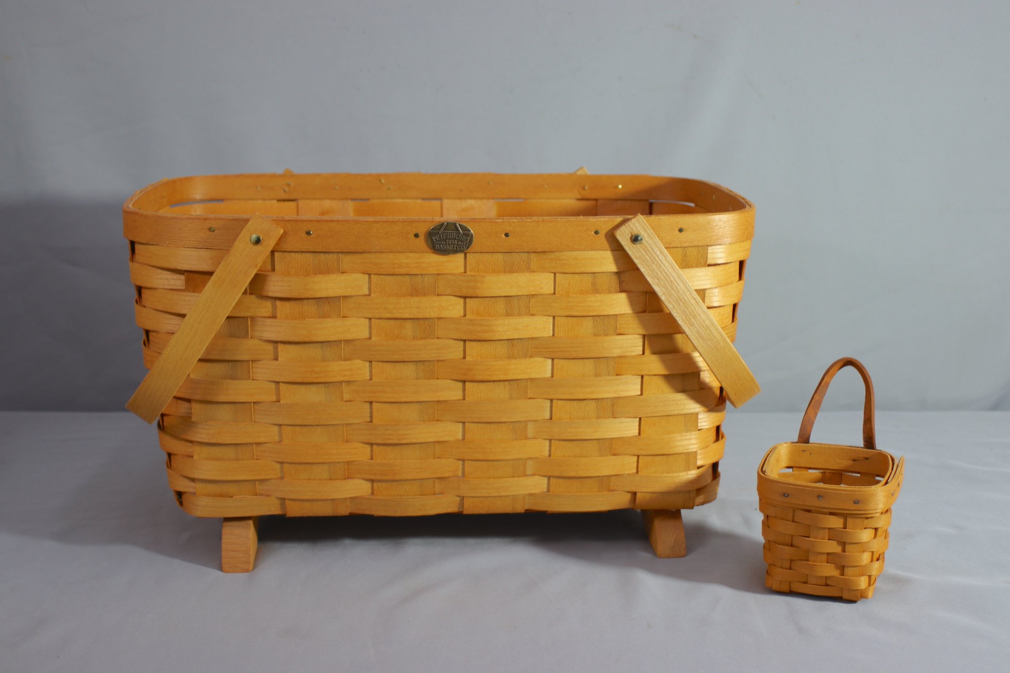note: Petersboro basket is 11.5" X 20" X 12" and small Longaberger basket is 9.5" H
