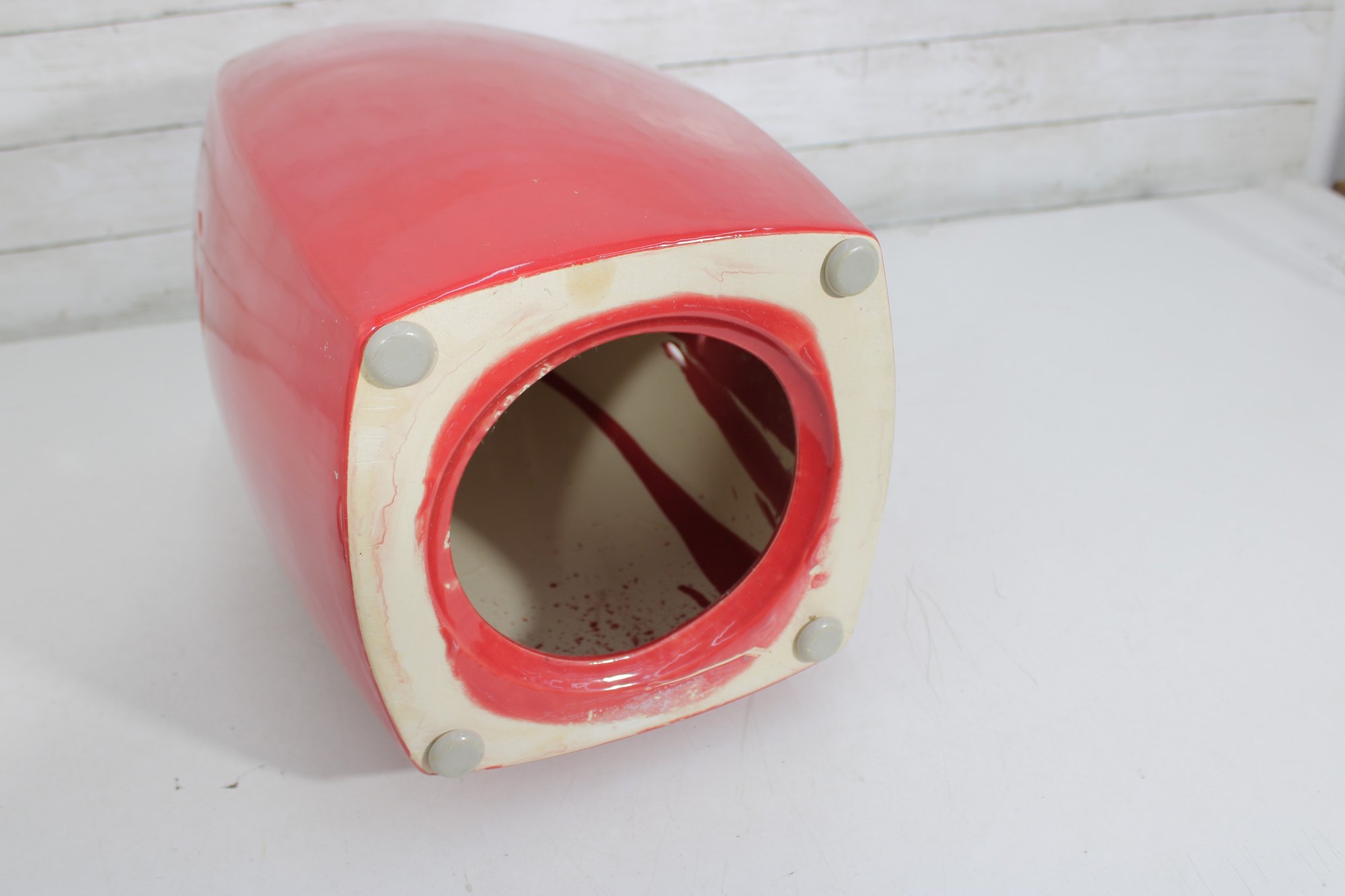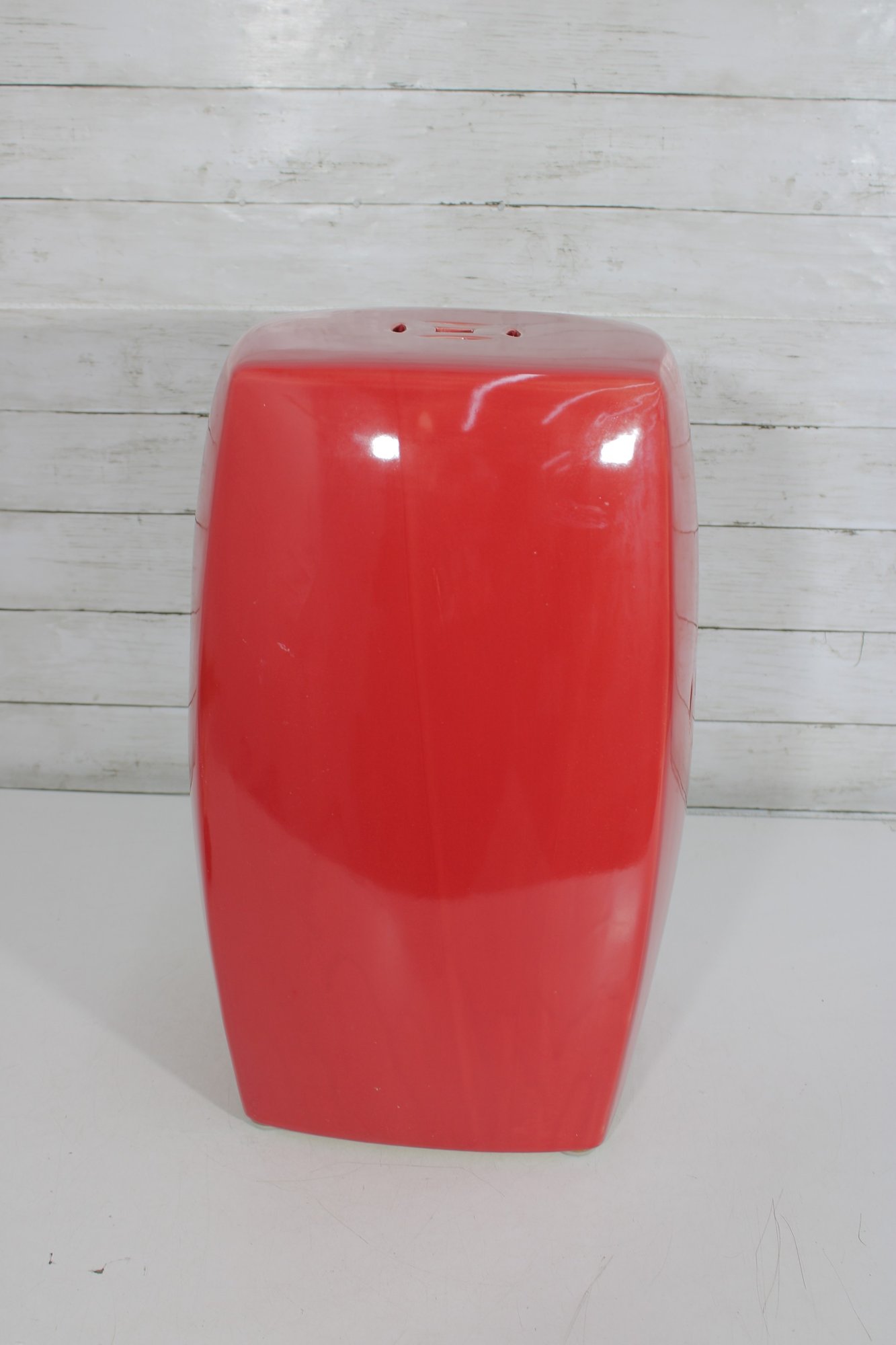 The high-gloss red glaze gives it a sleek, lacquered look that instantly energizes a space, making it both functional and a true statement accent.