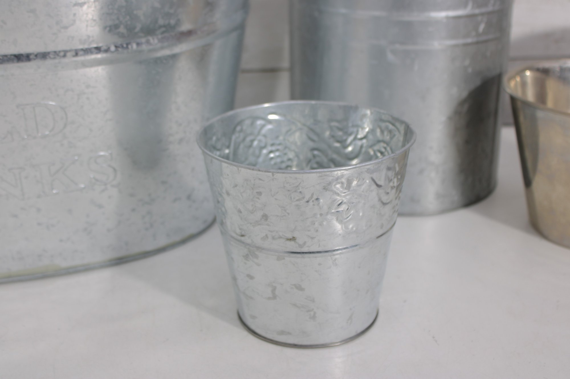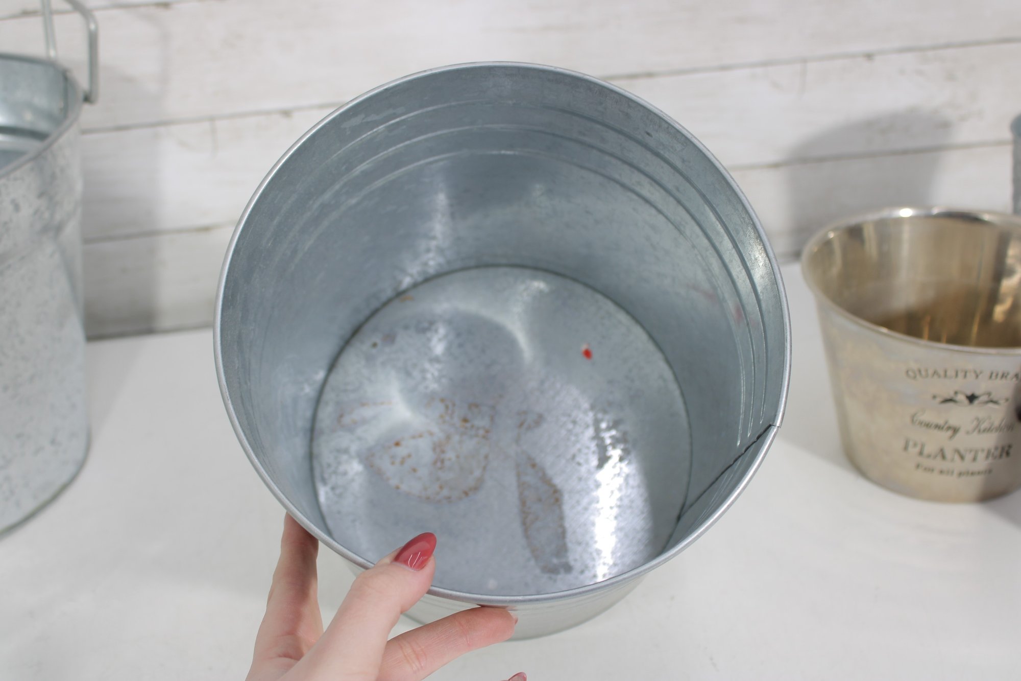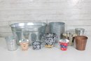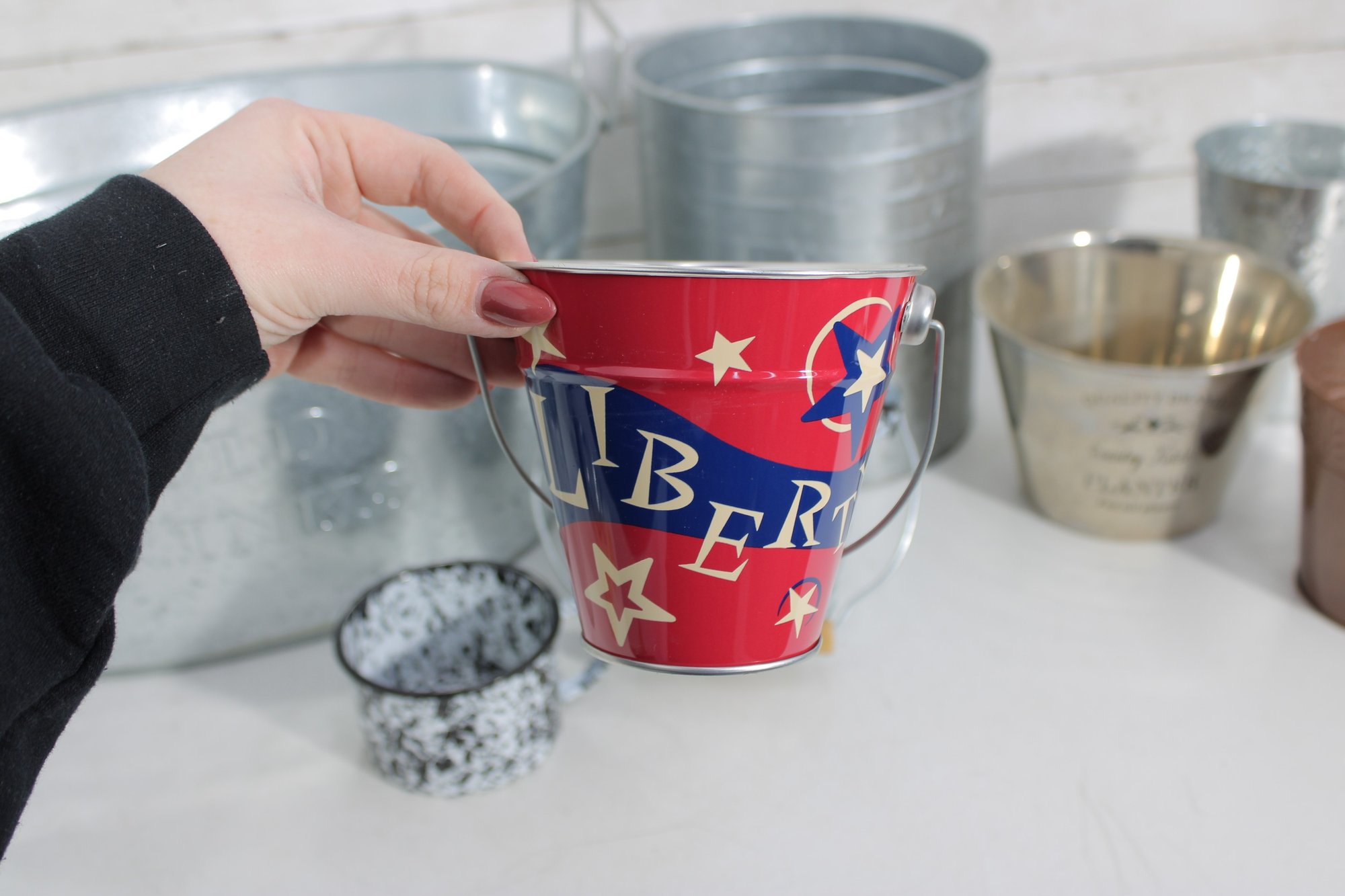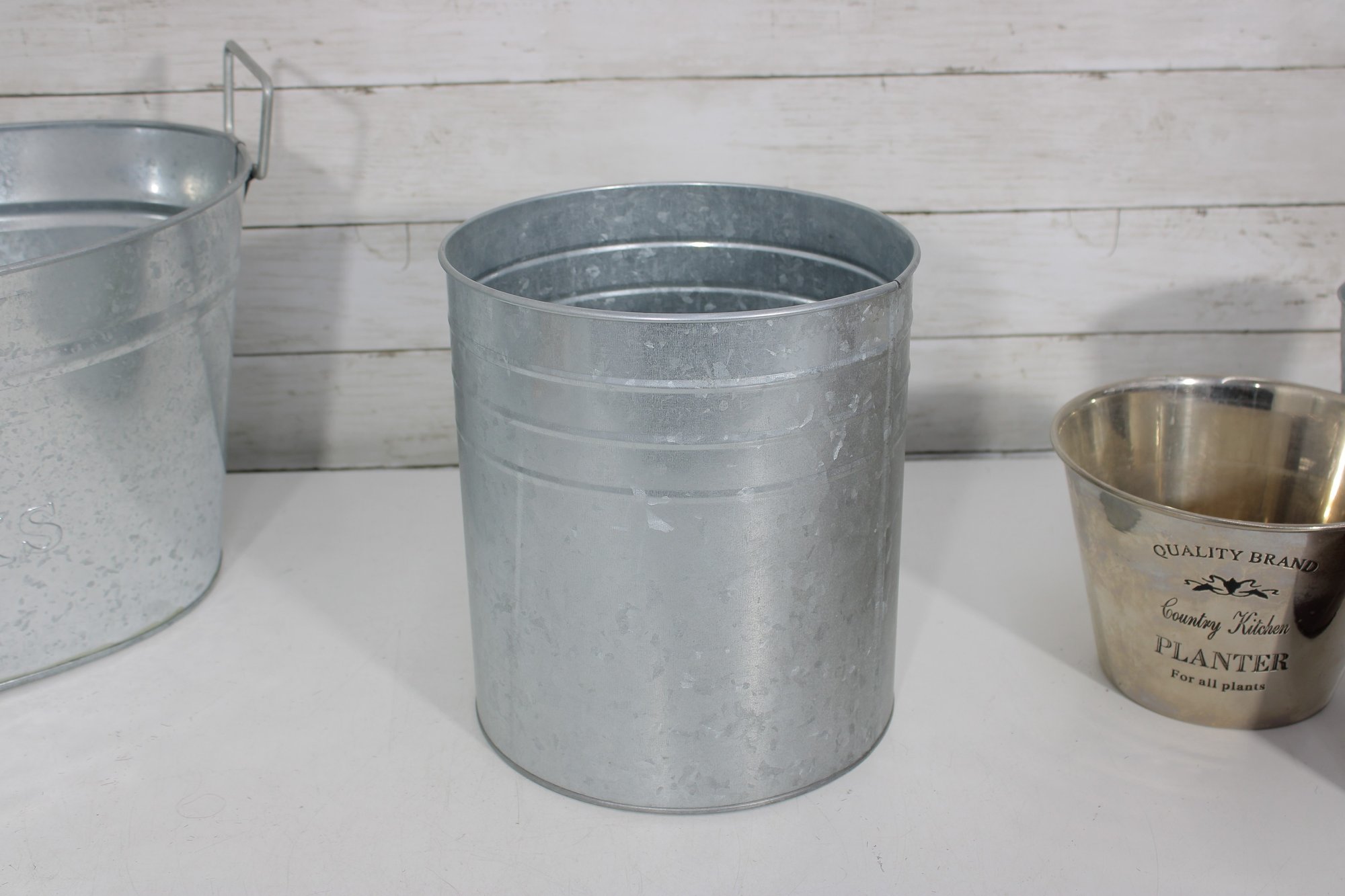 Lot Of 10 Metal Buckets & Planters - Rustic Farmhouse Style