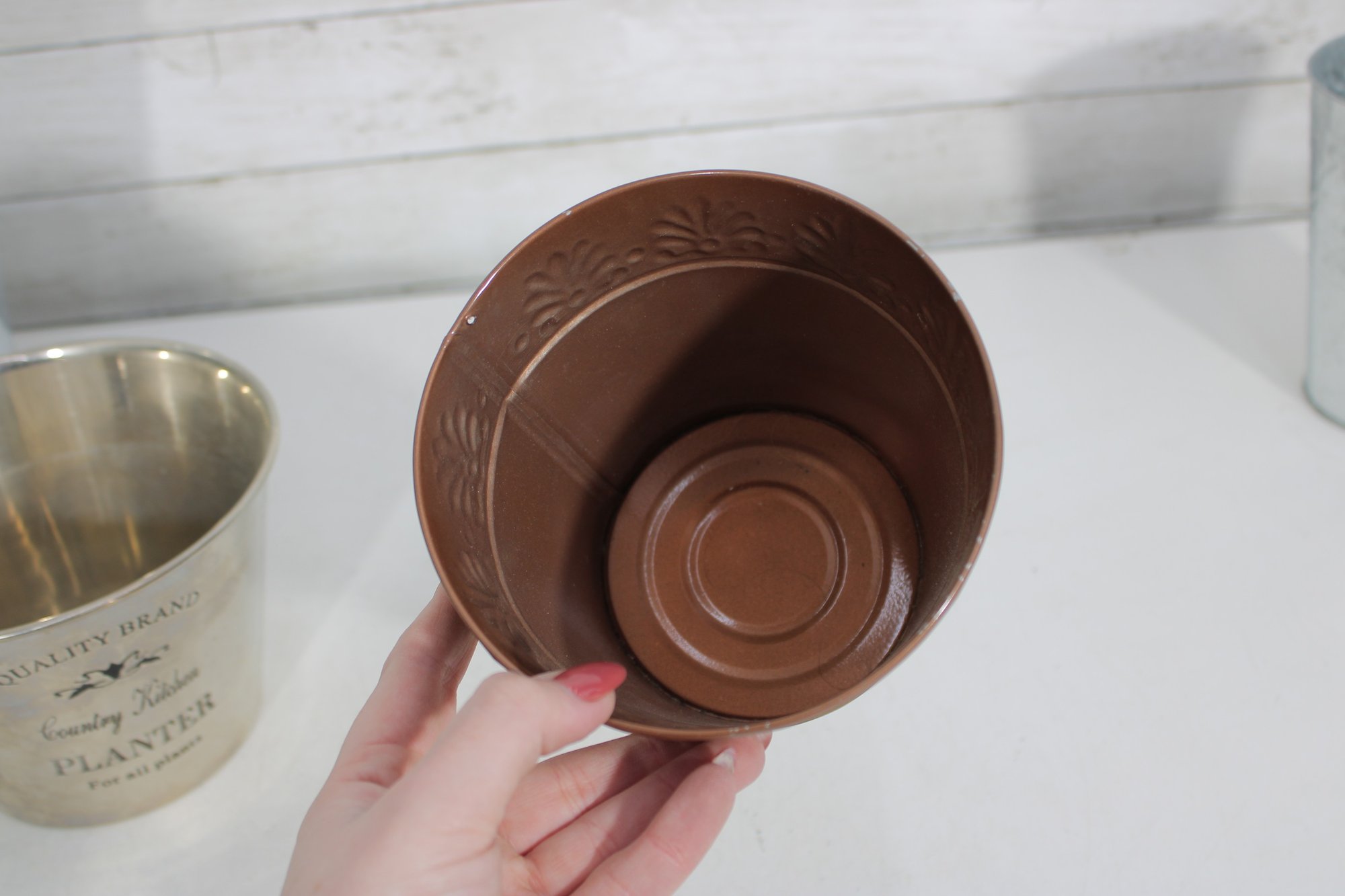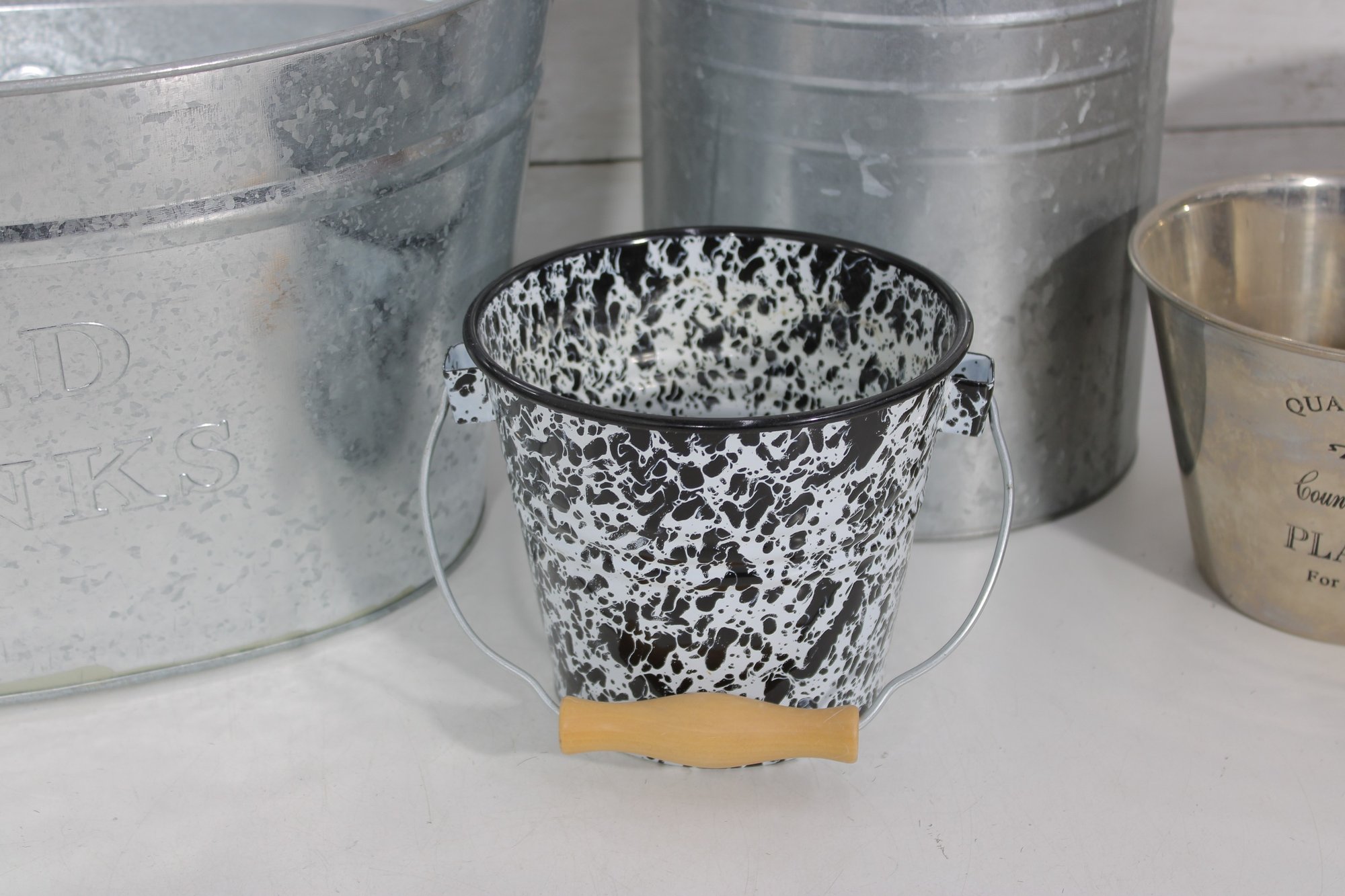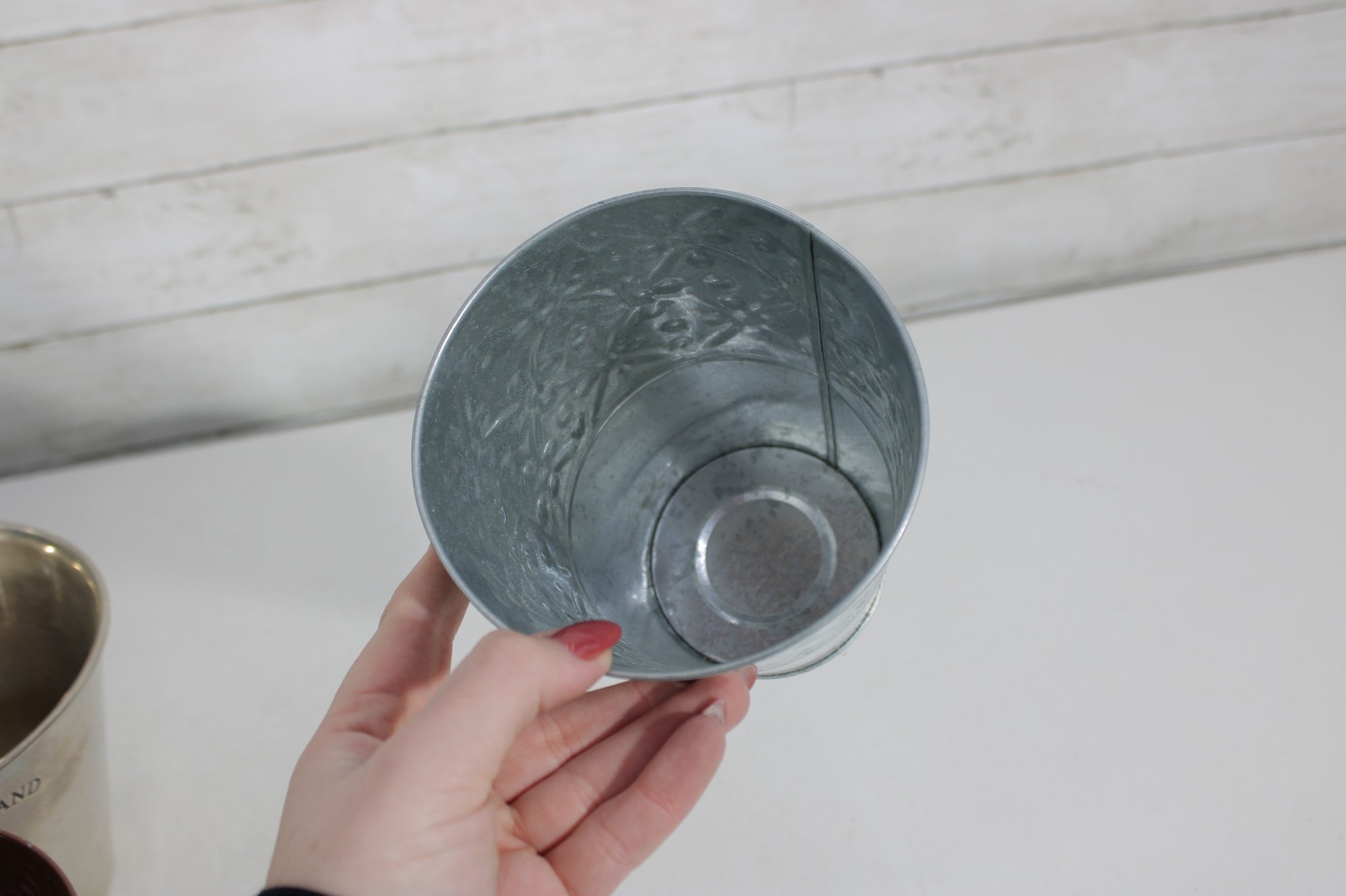 Lot Of 10 Metal Buckets & Planters - Rustic Farmhouse Style