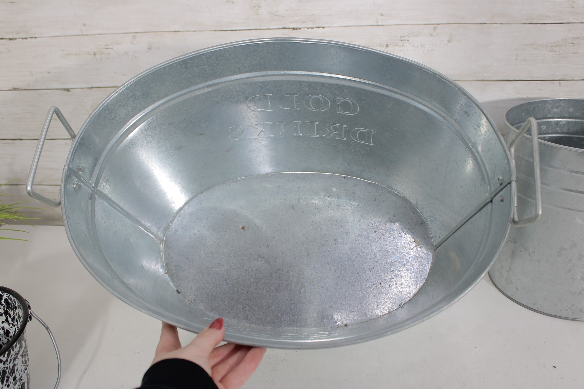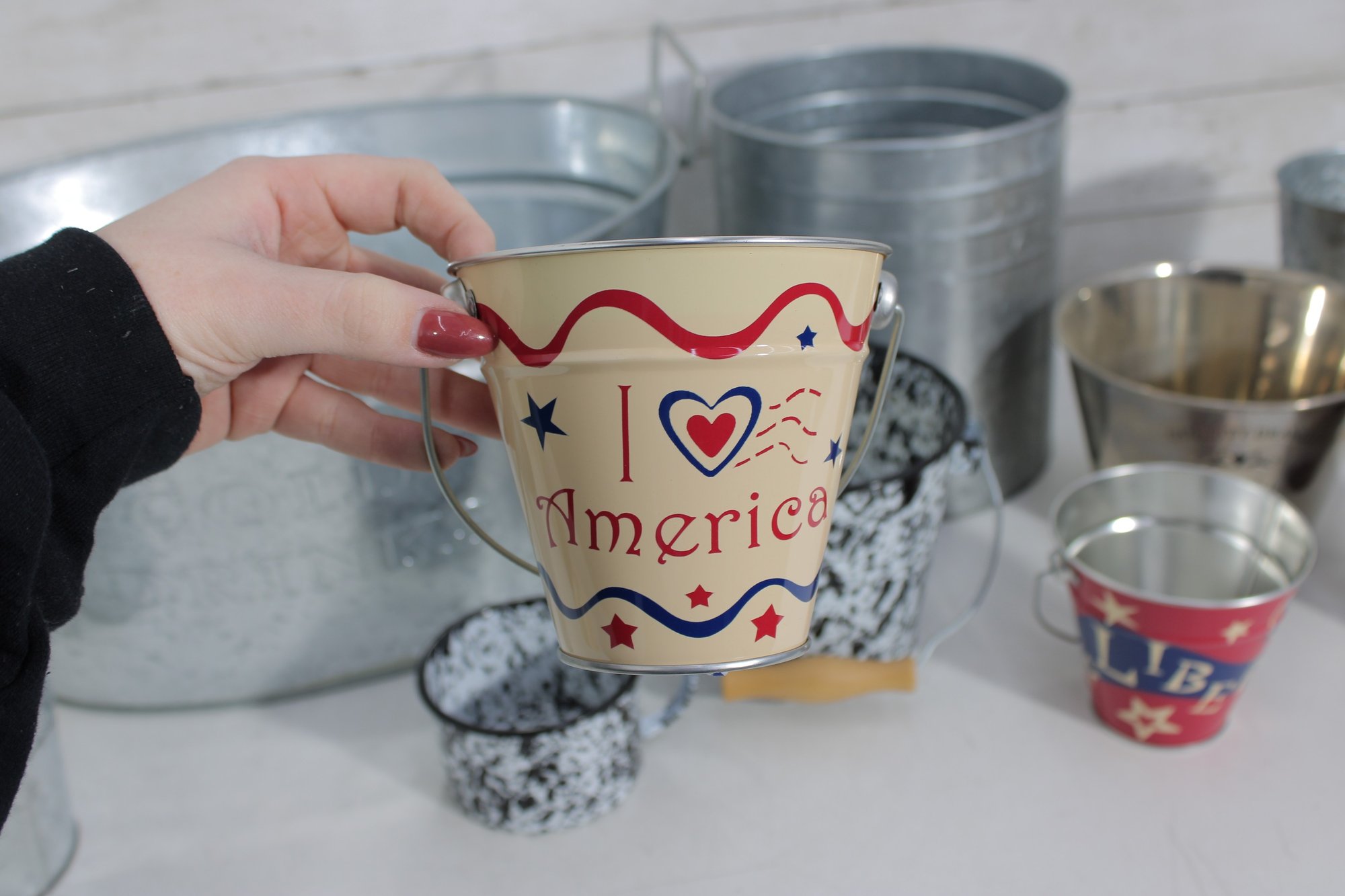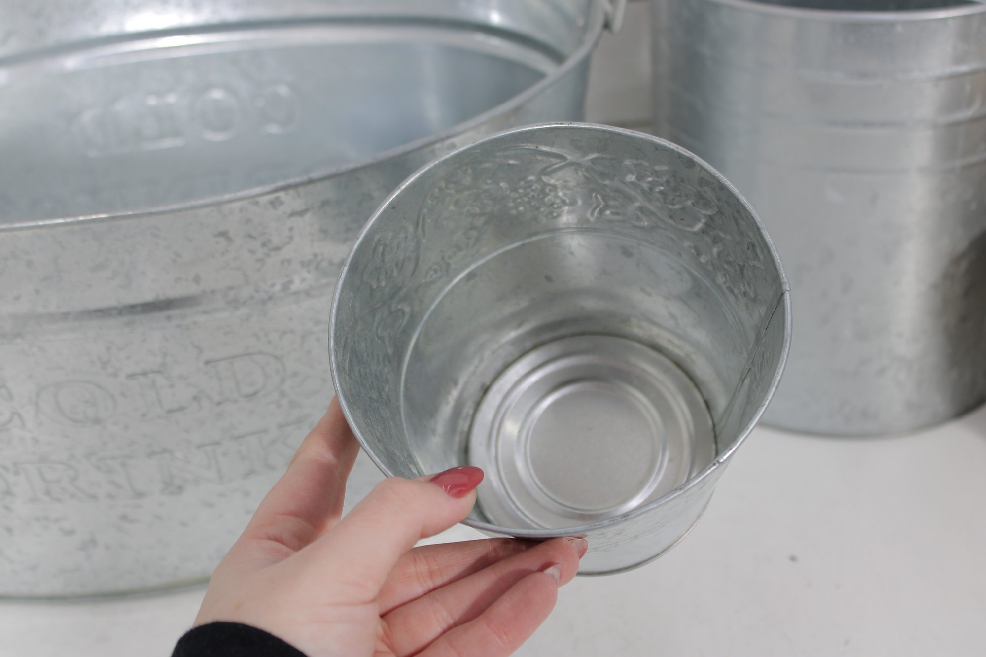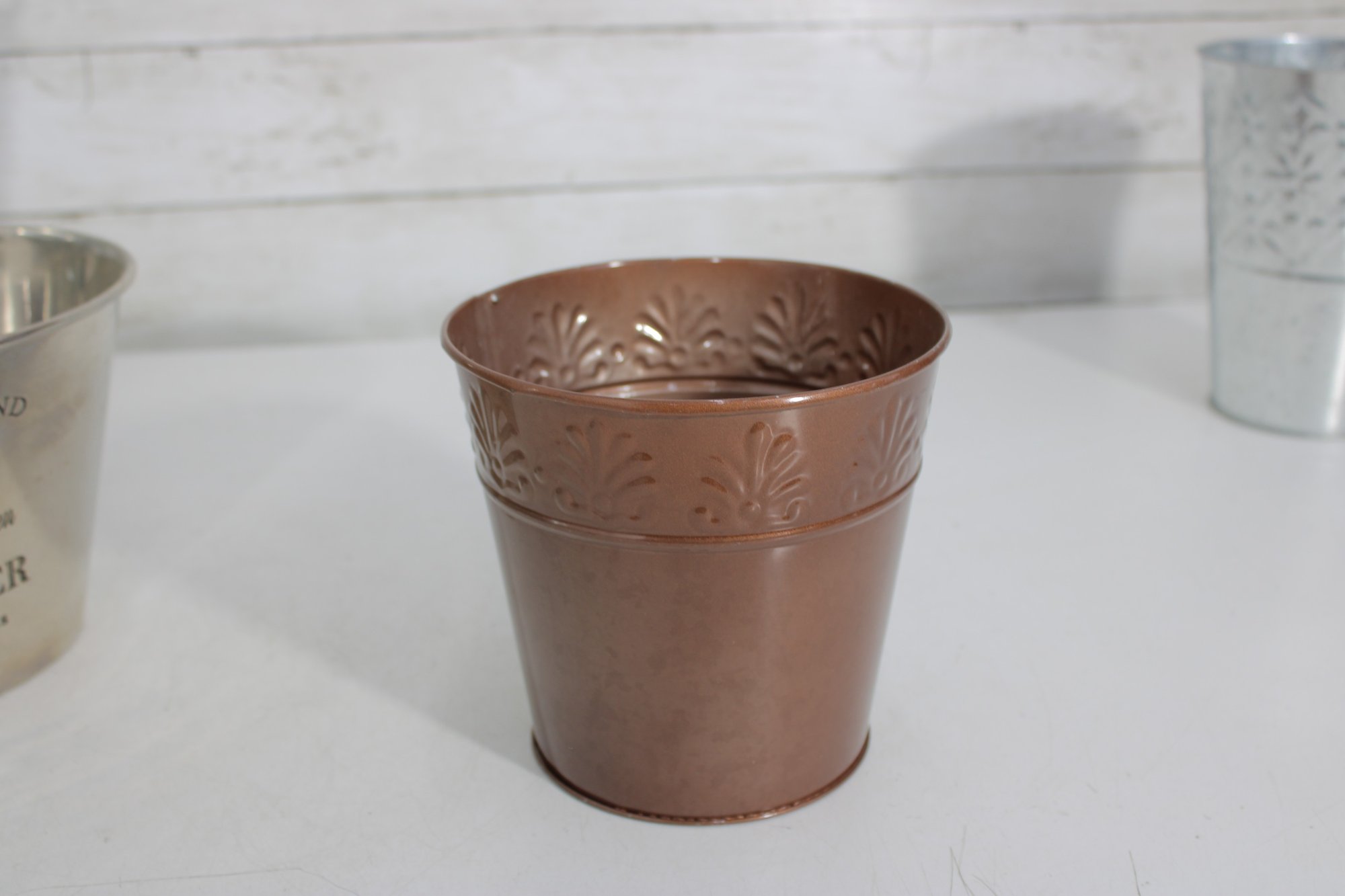 Lot Of 10 Metal Buckets & Planters - Rustic Farmhouse Style