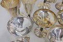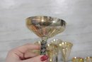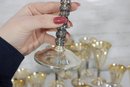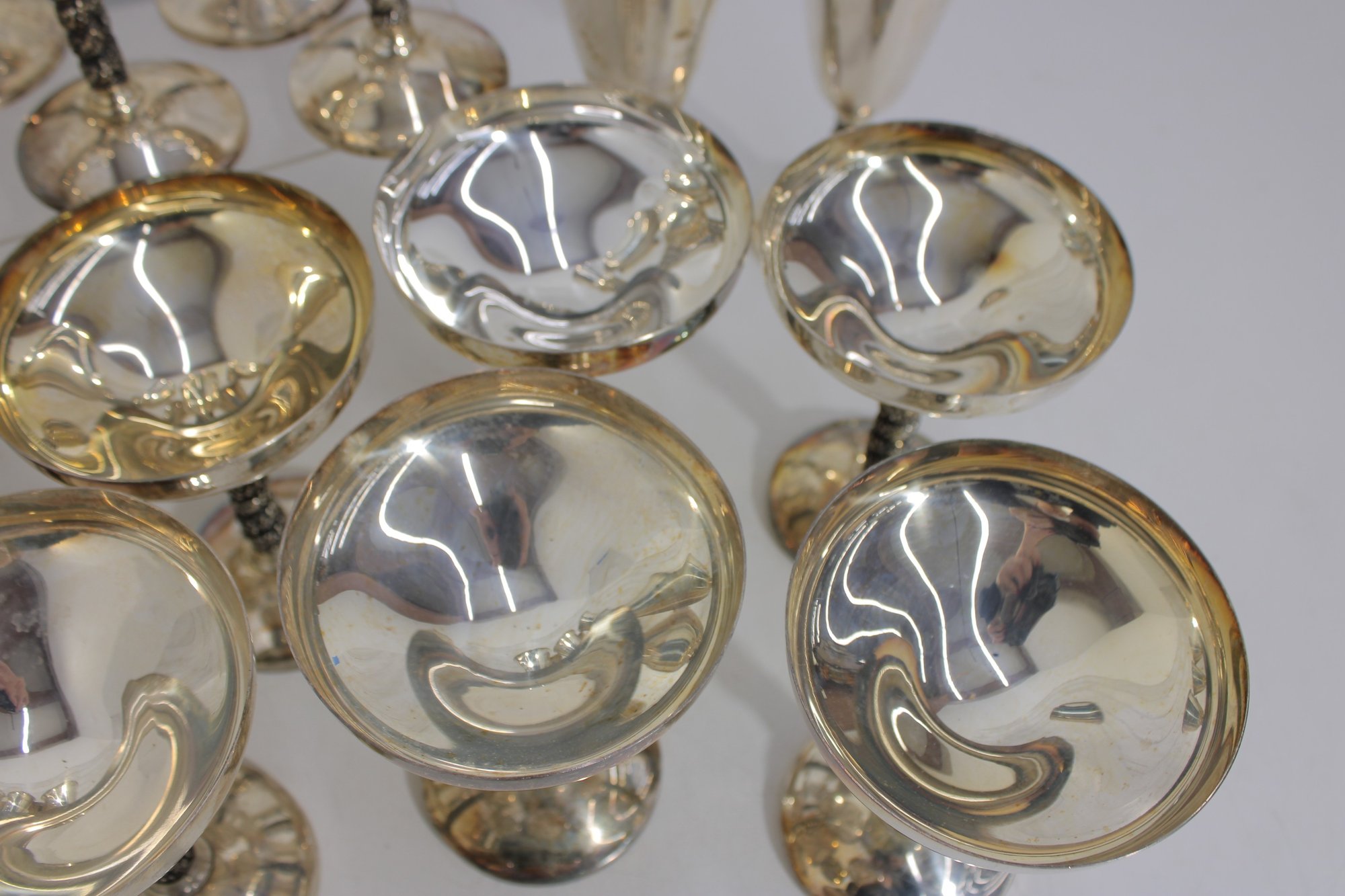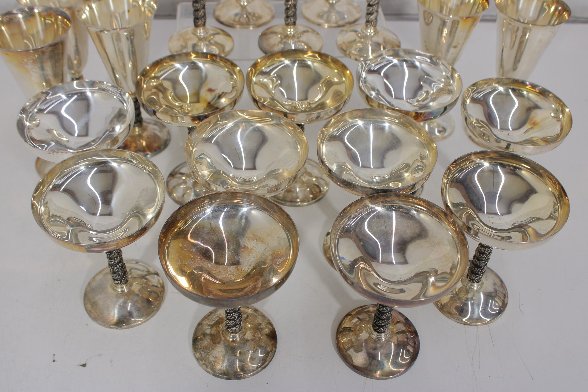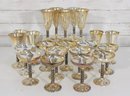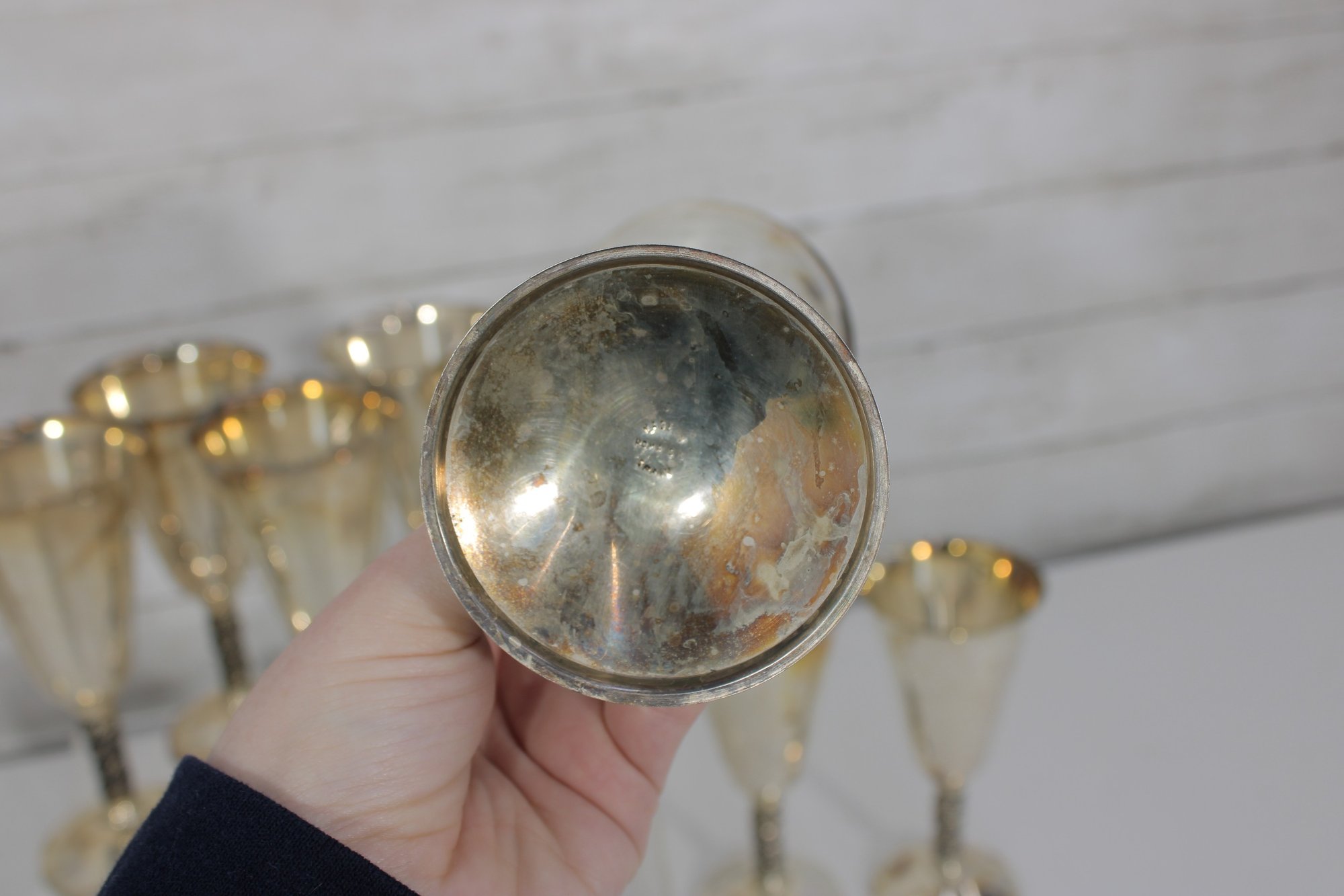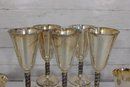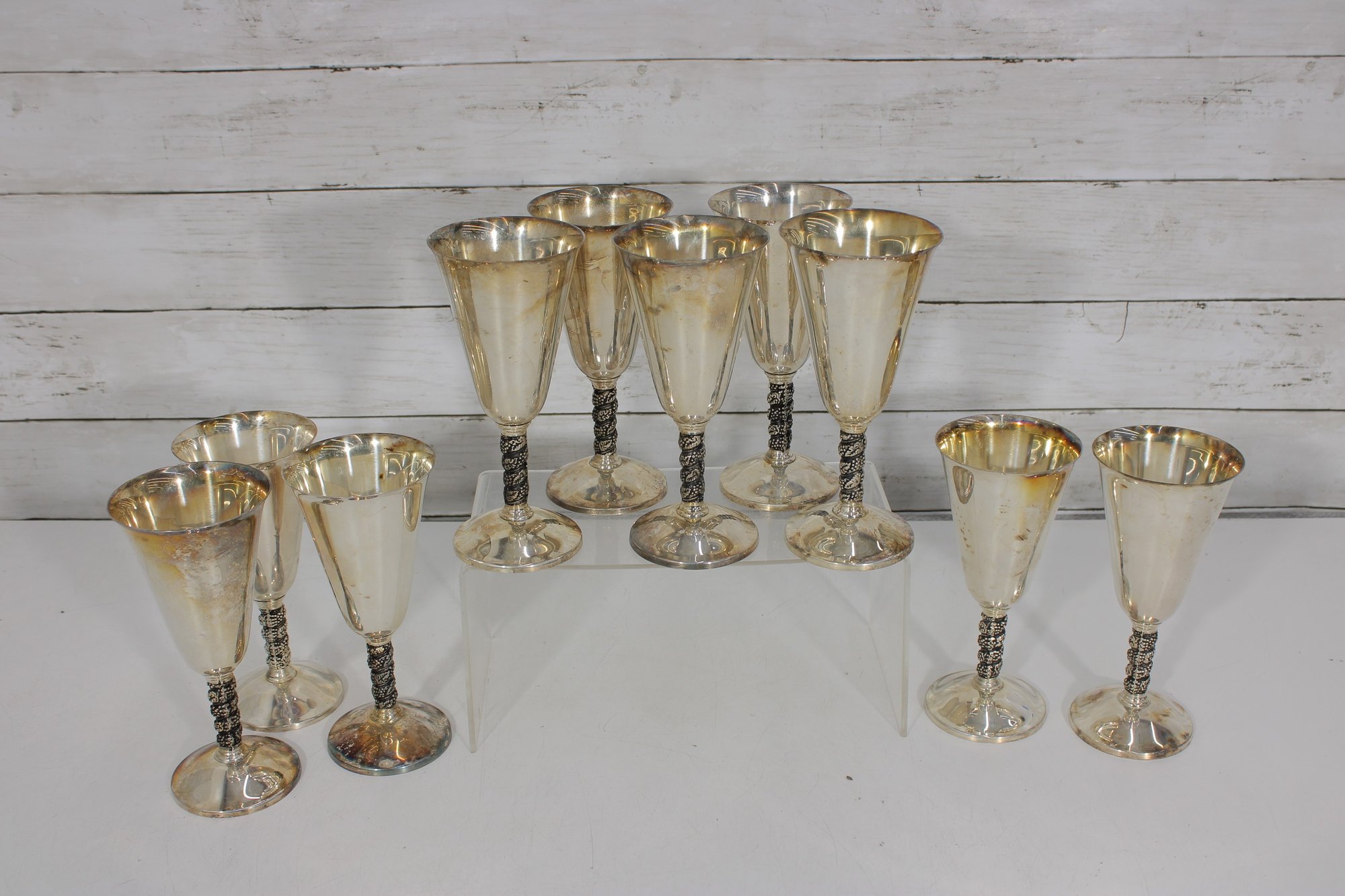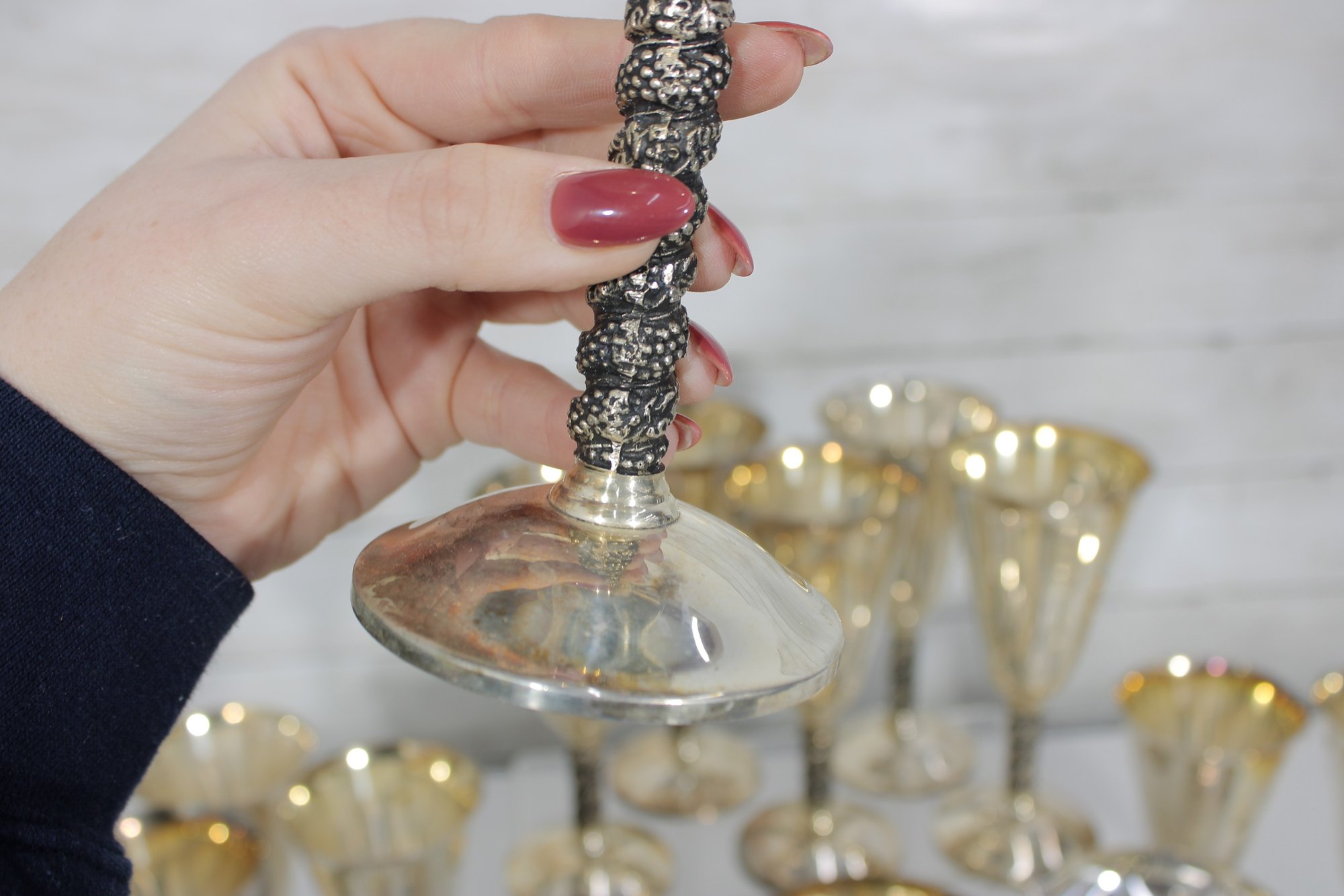The goblets showcase a classic flared bowl design with warm silver-tone finish and ornate textured stems that add visual interest and vintage charm.